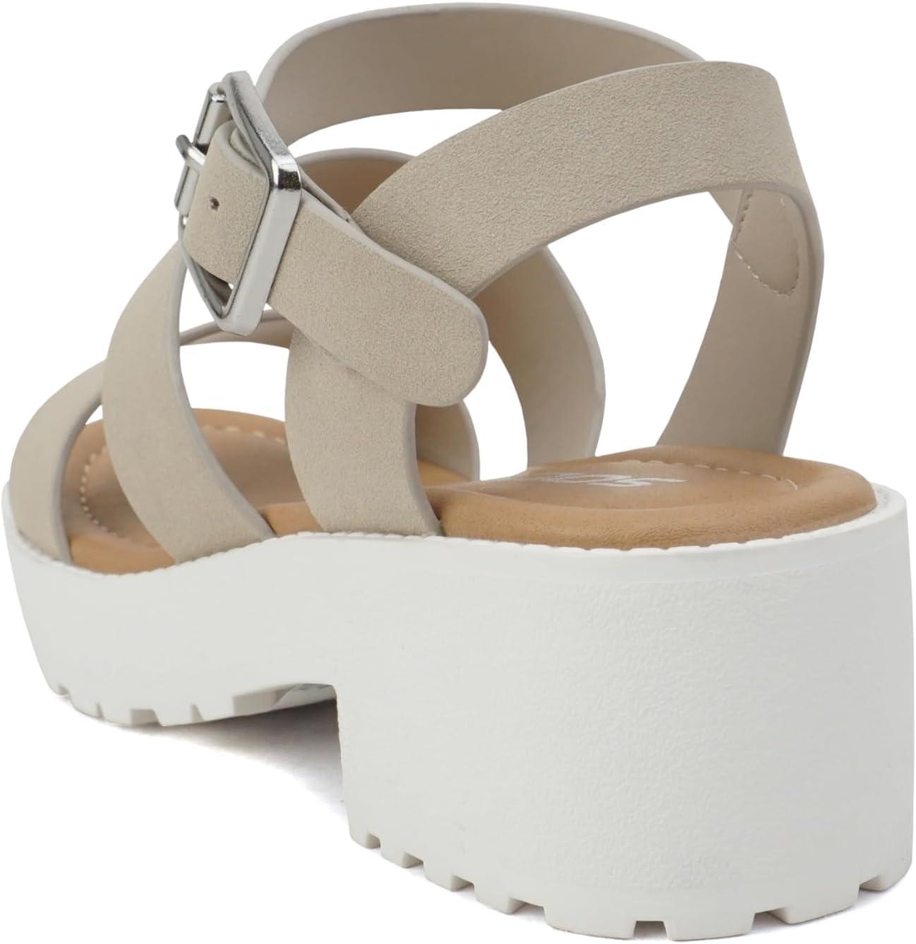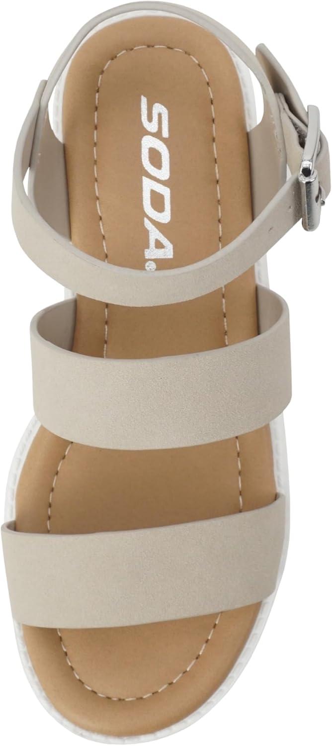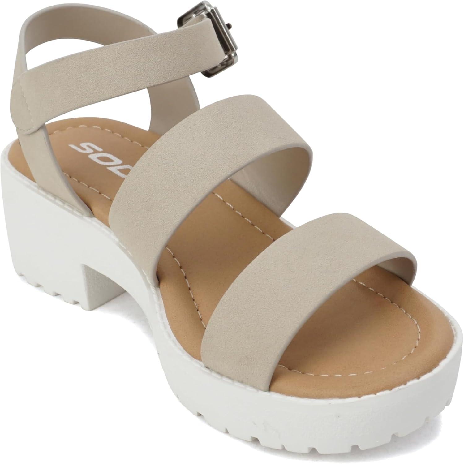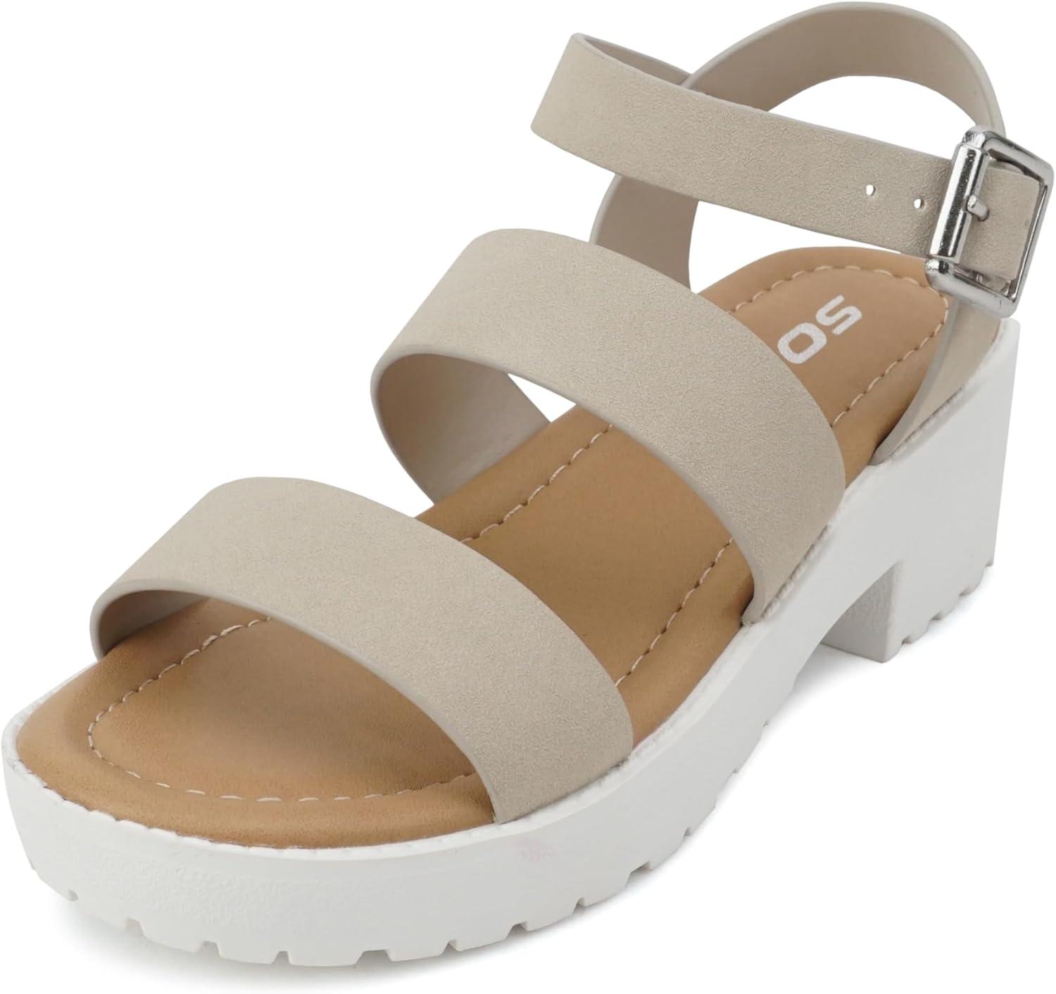 Soda ACCOUNT-2 ~ Little Kids/Children/Girls Open Toe Two Bands Lug sole Fashion Block Heel Sandals with Adjustable Ankle Strap(Sand Nbpu*)