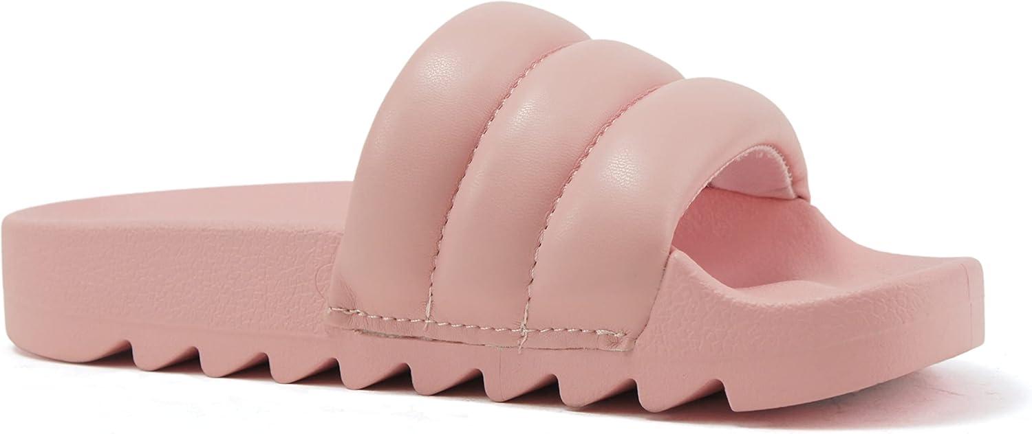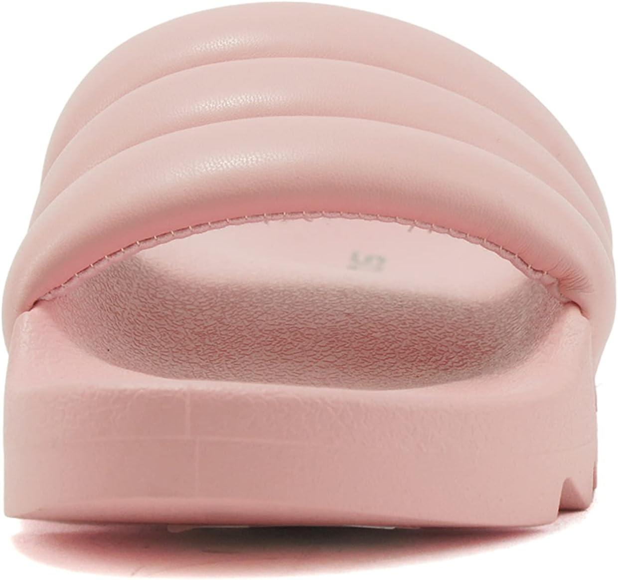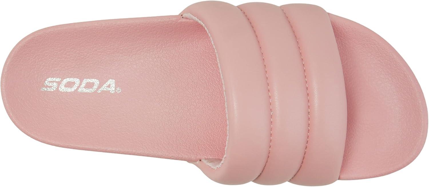 Soda BETWEEN ~ Women Flat Open Toe Single Plush Wide Strap With Fashion Footbed Slide Sandal(Pink Pu)