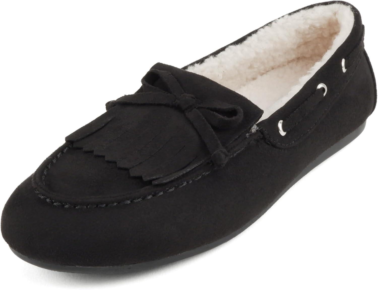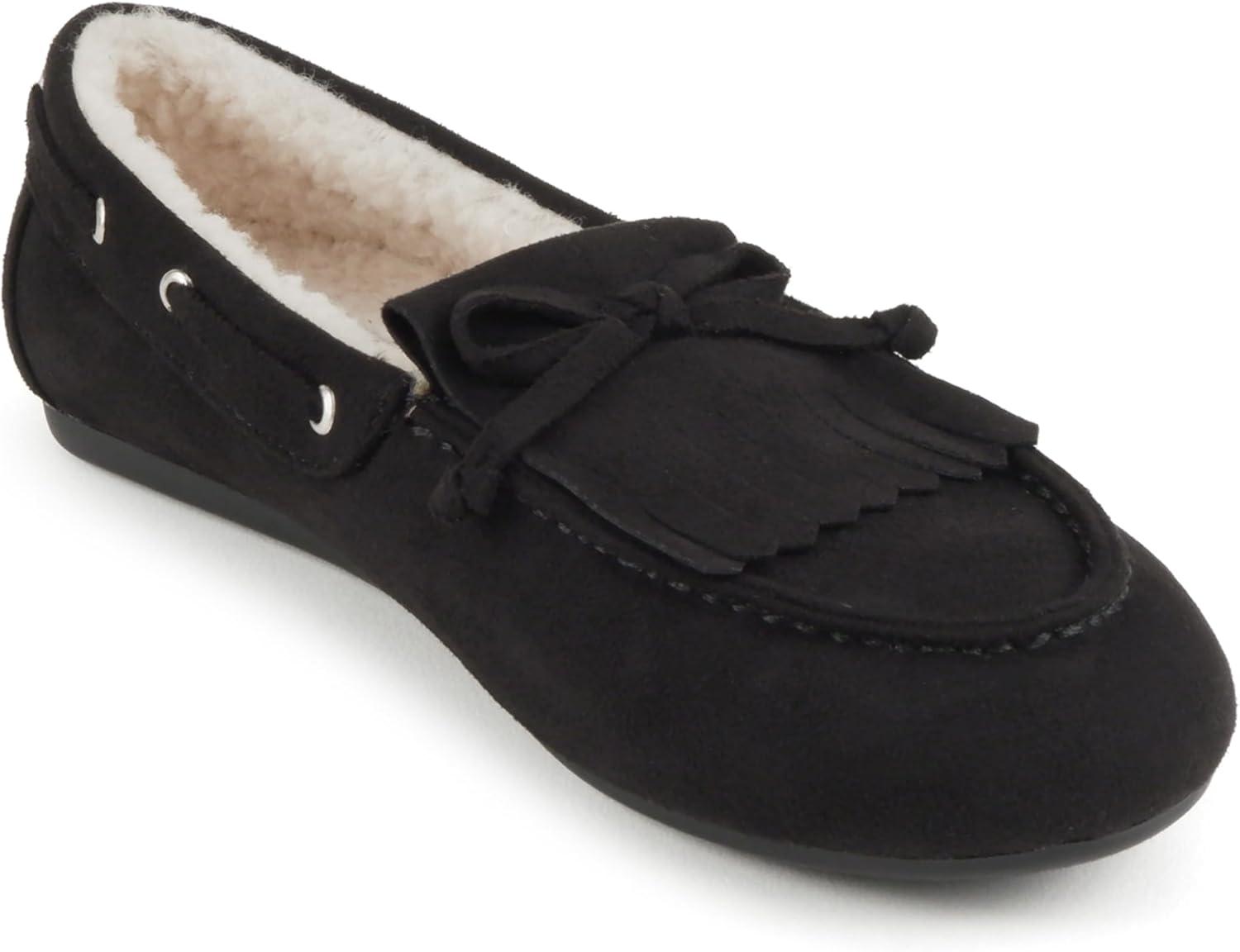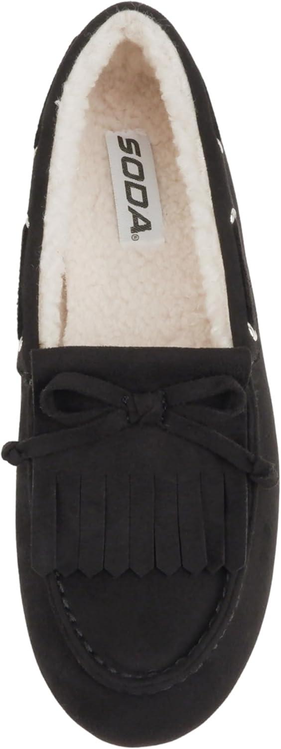 Soda Bowen ~ Women Round Toe Fleece-Lined Tassel Flat Shoe(Black Suede)
