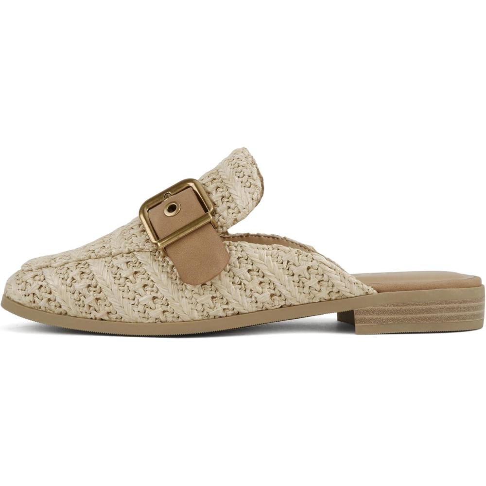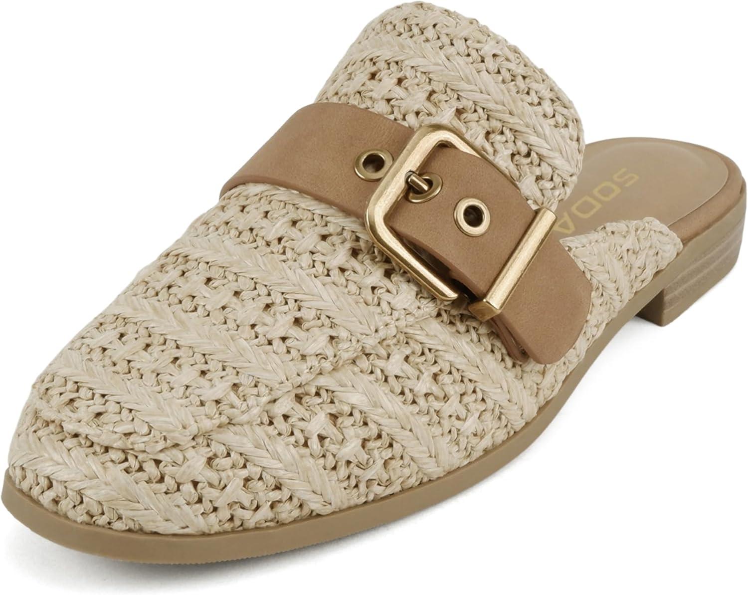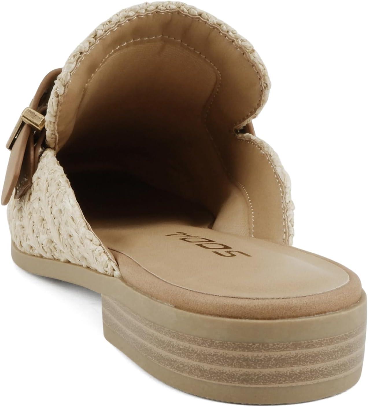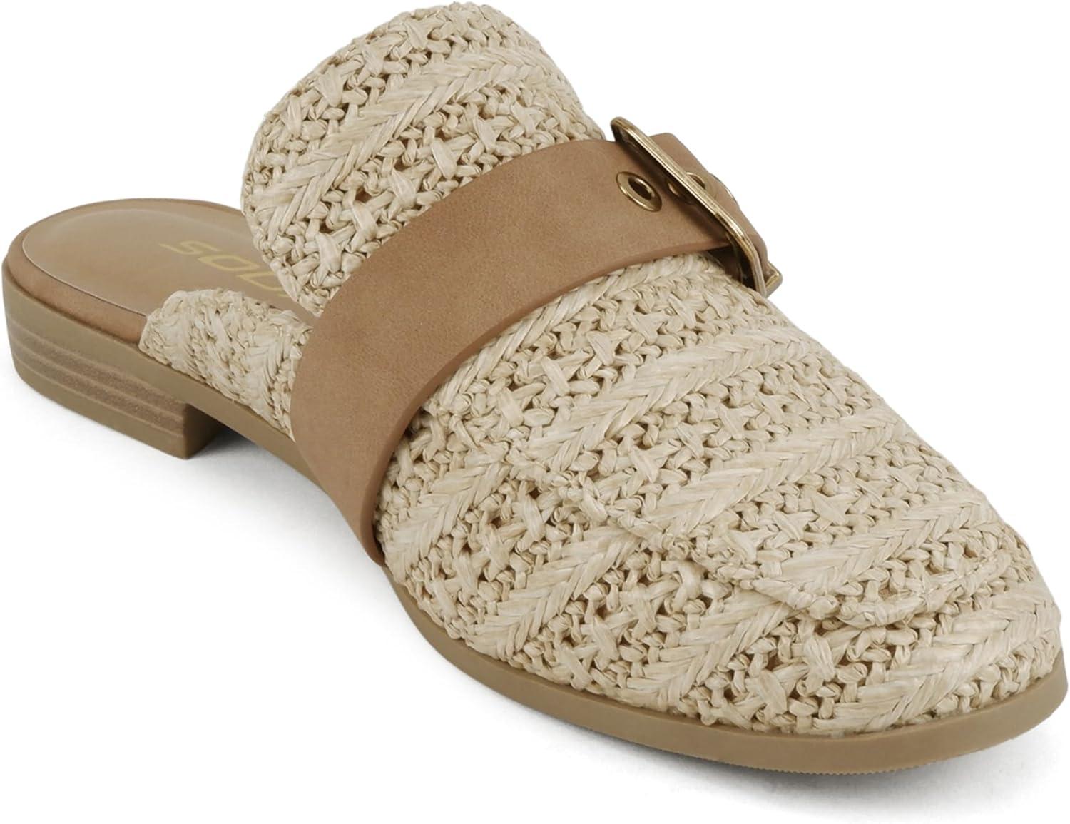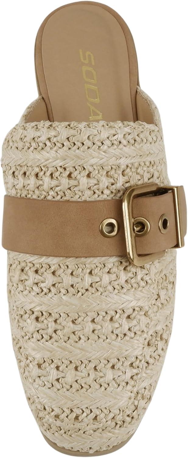Soda Chantal ~ Women Square Toe Slip-On Low Heel Mule with Buckle Strap(Natural Raffia)