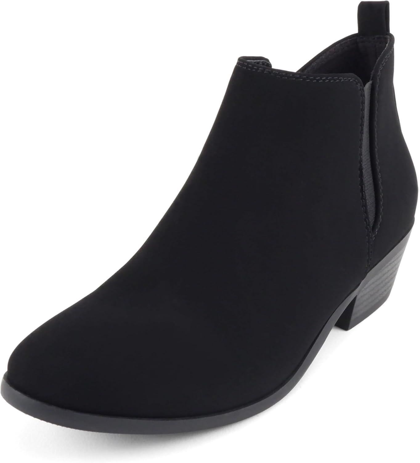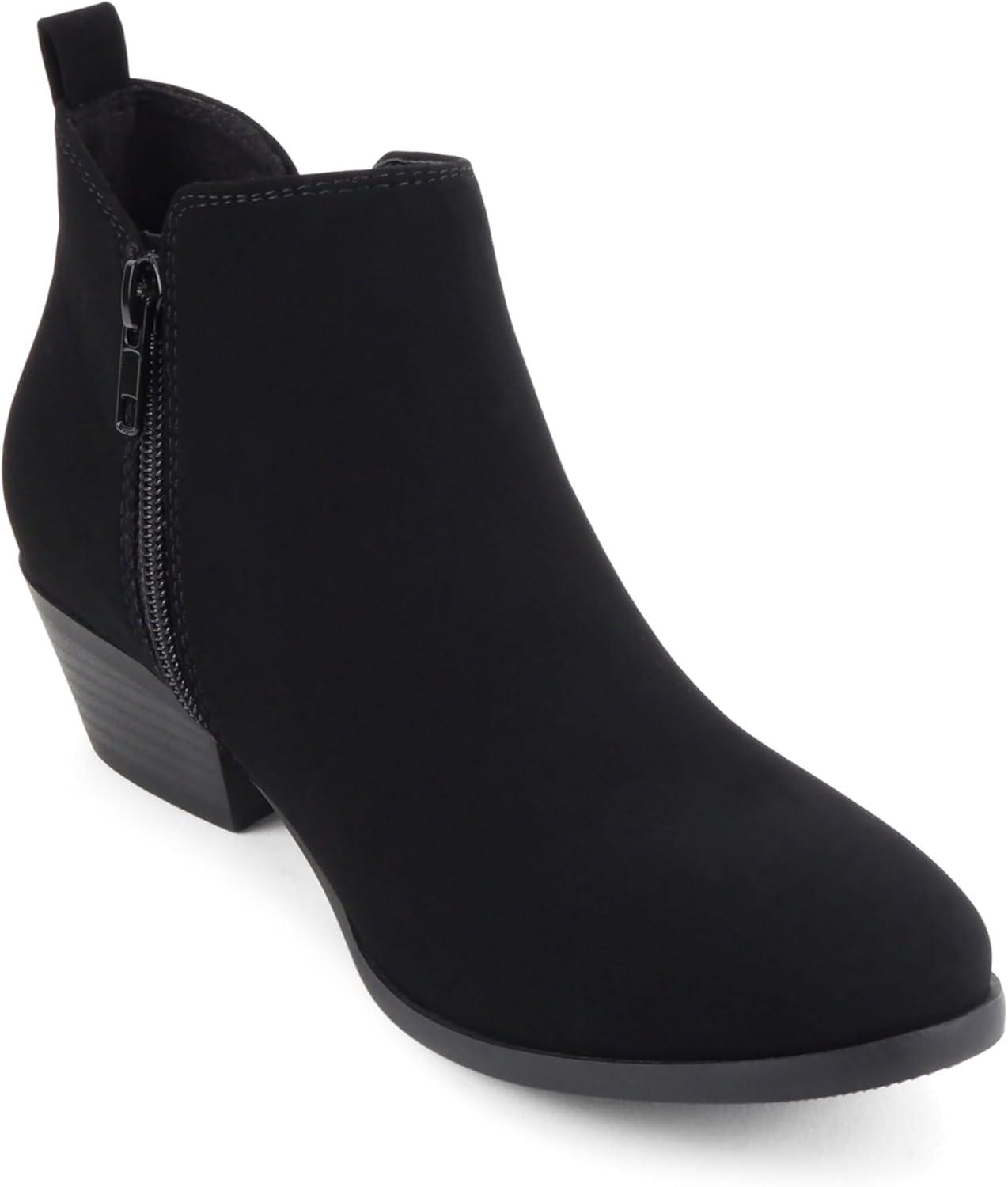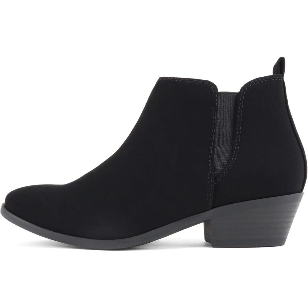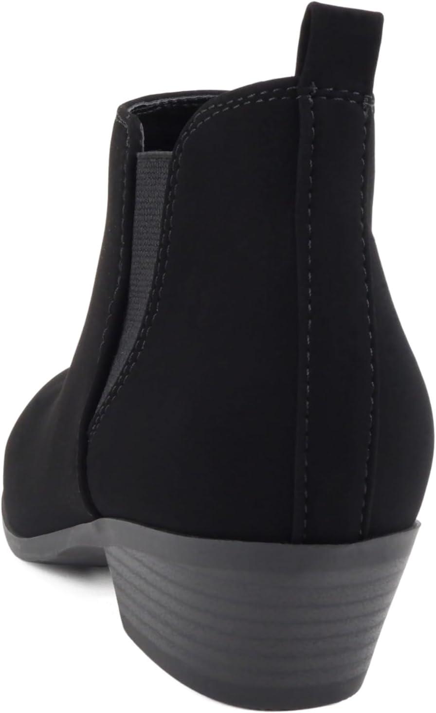Soda “CHARMER” ~ Women Pointed Toe Elastic Gore Low Heel Ankle Bootie with Zipper Closure(Black Nubuck)