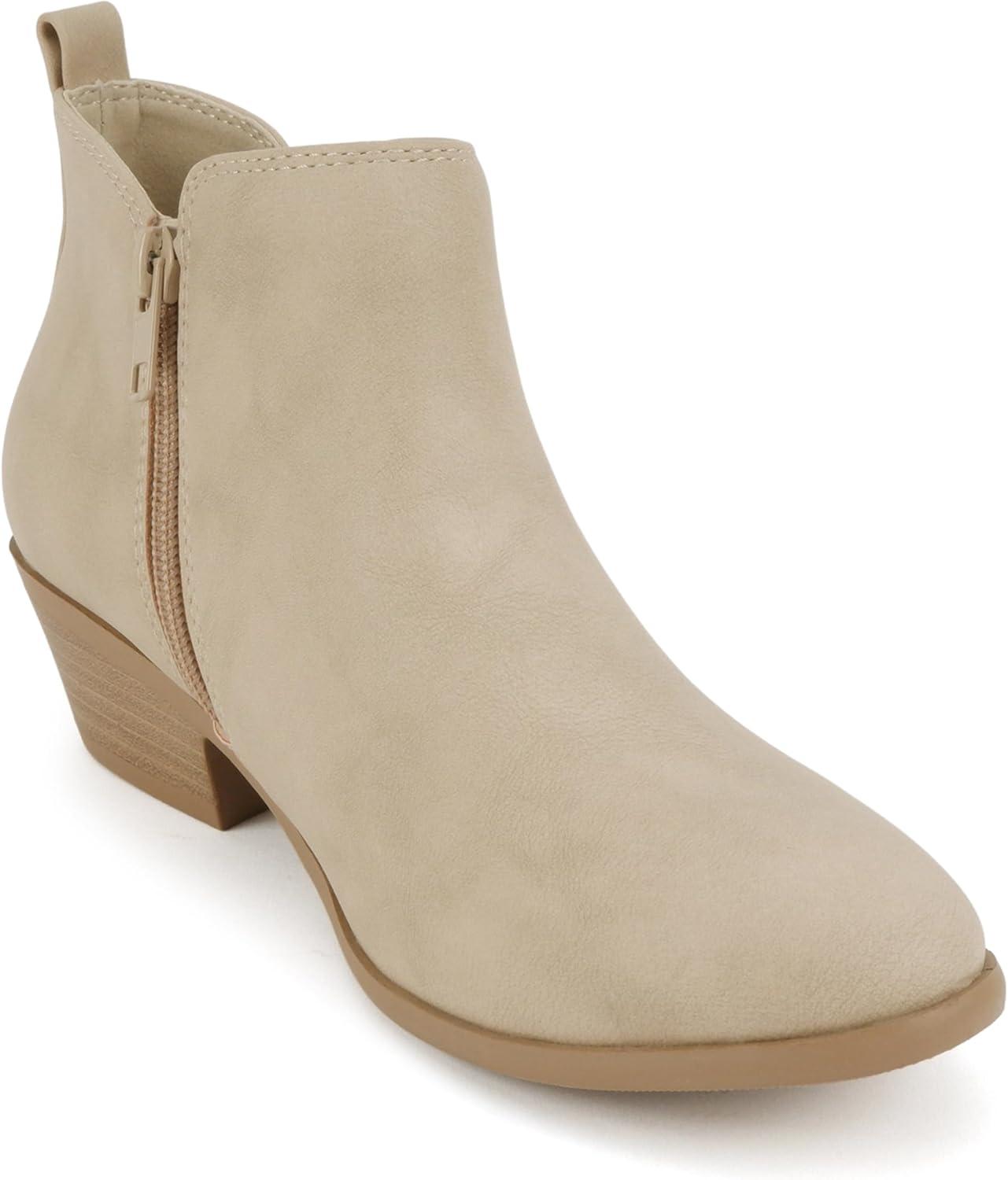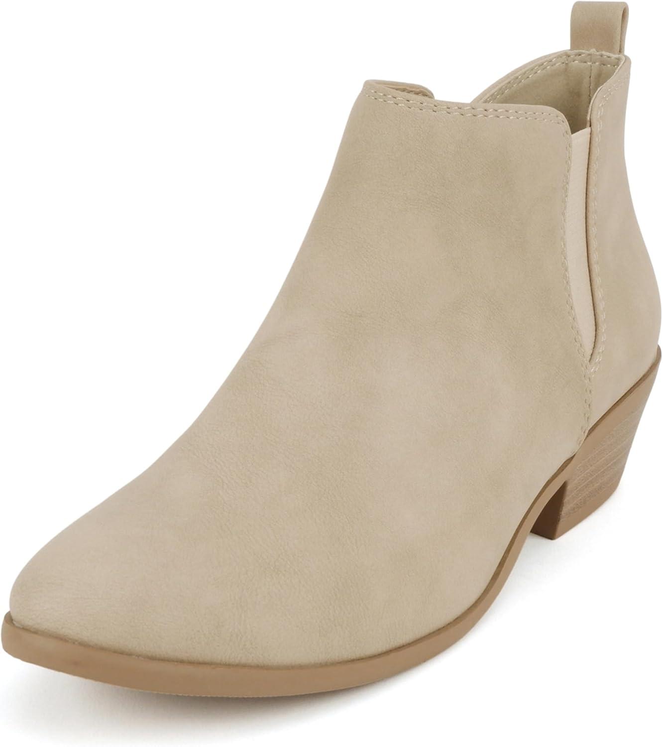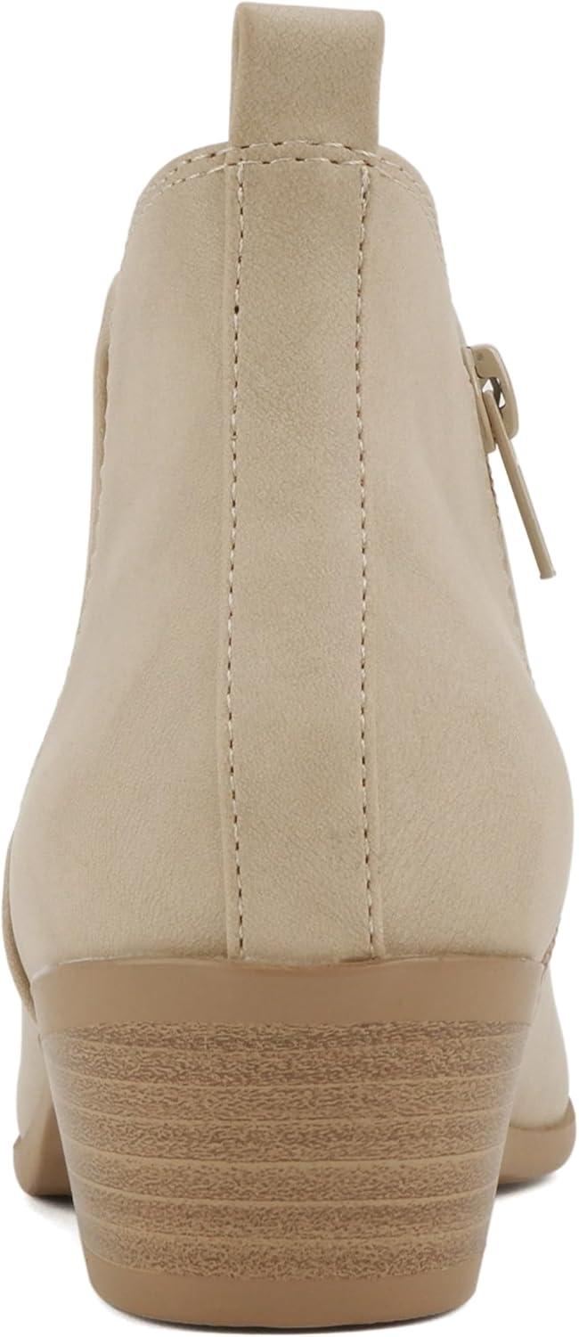 Soda “CHARMER” ~ Women Pointed Toe Elastic Gore Low Heel Ankle Bootie with Zipper Closure(Wheat Nubuck)