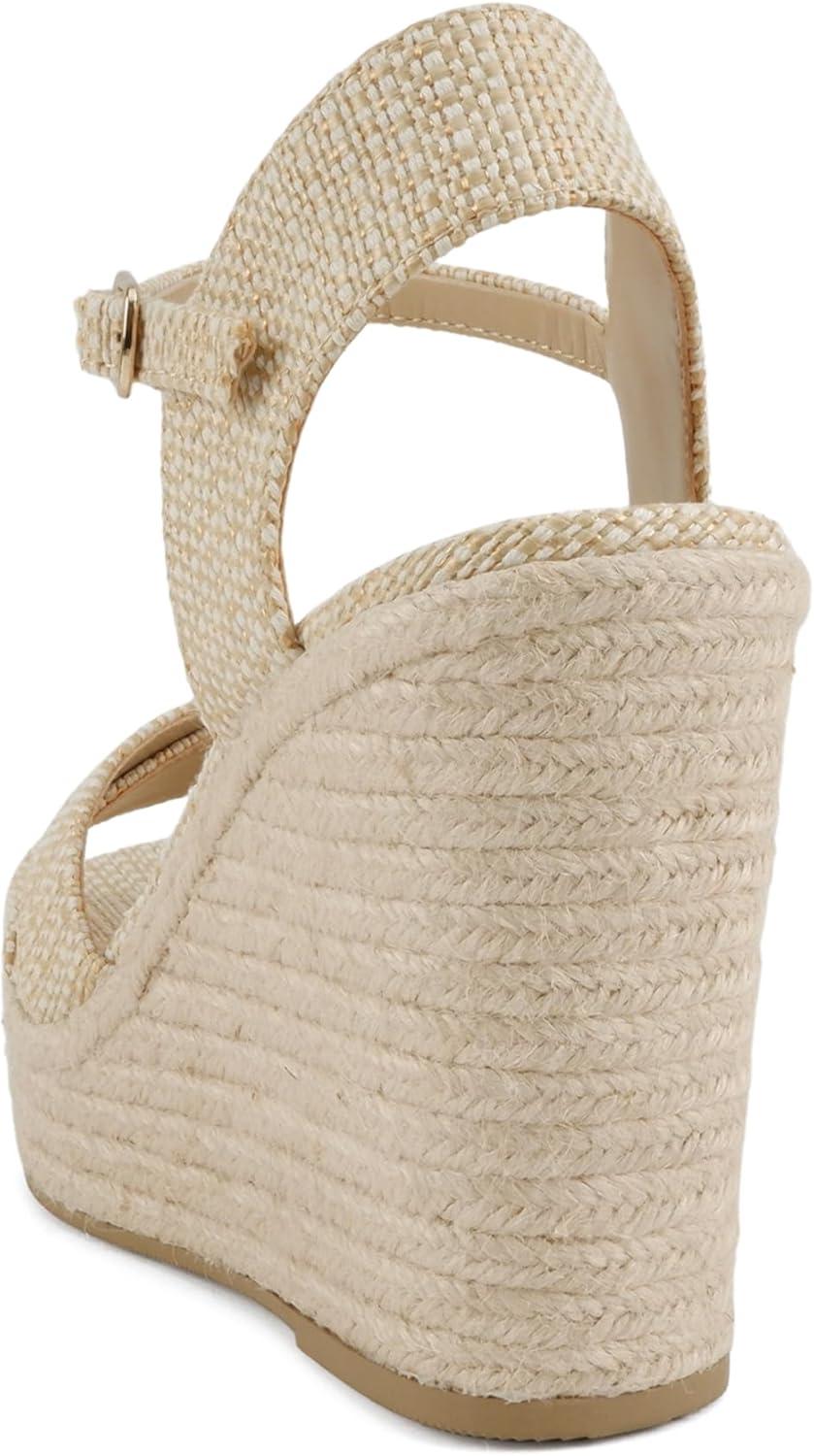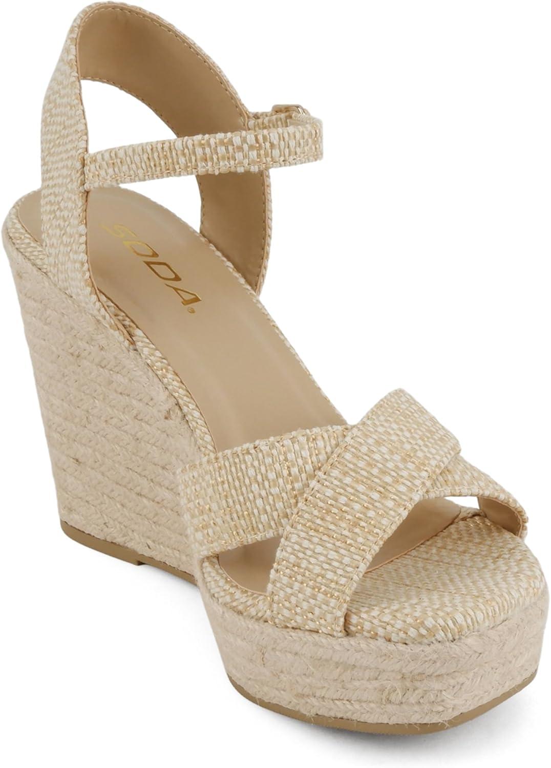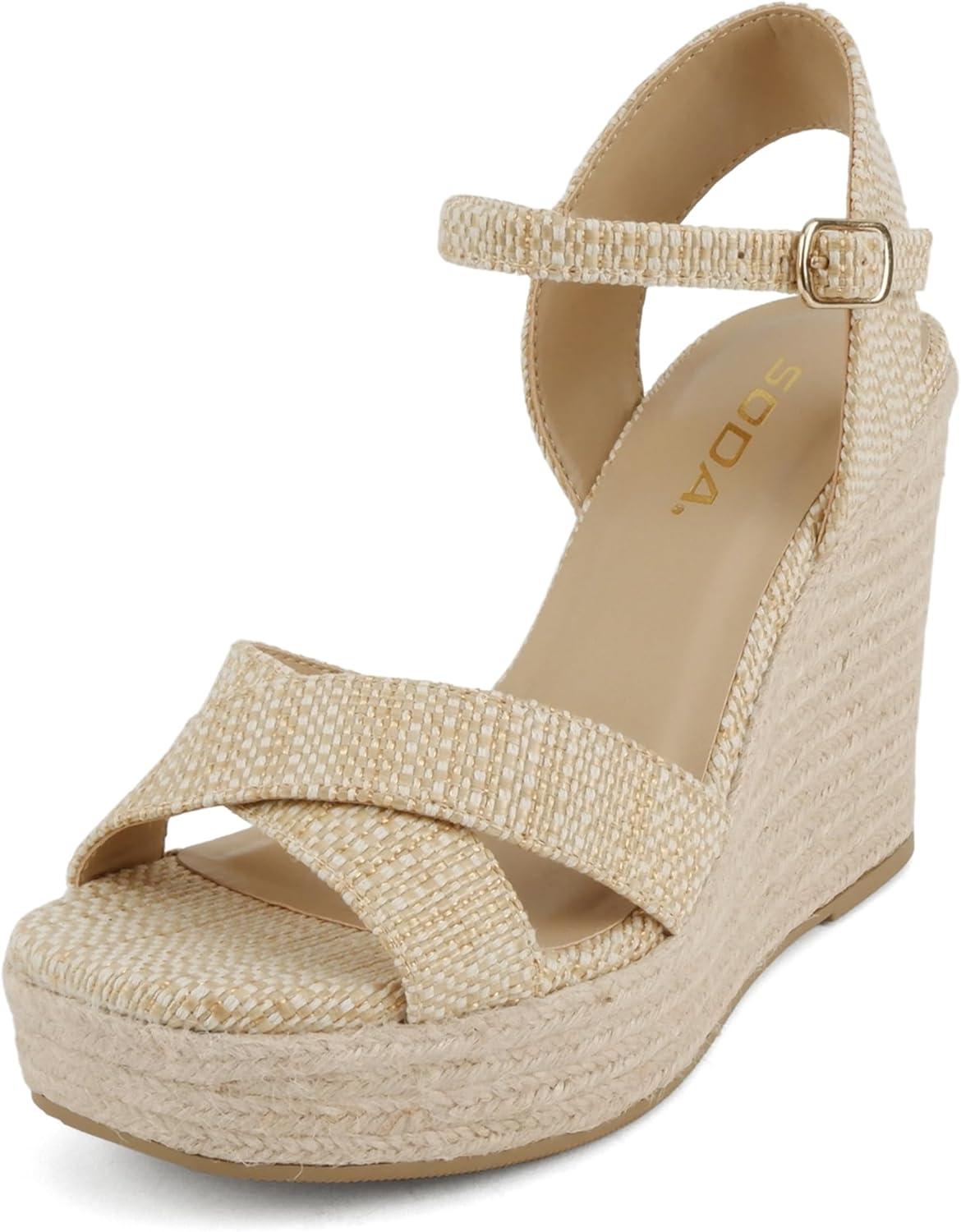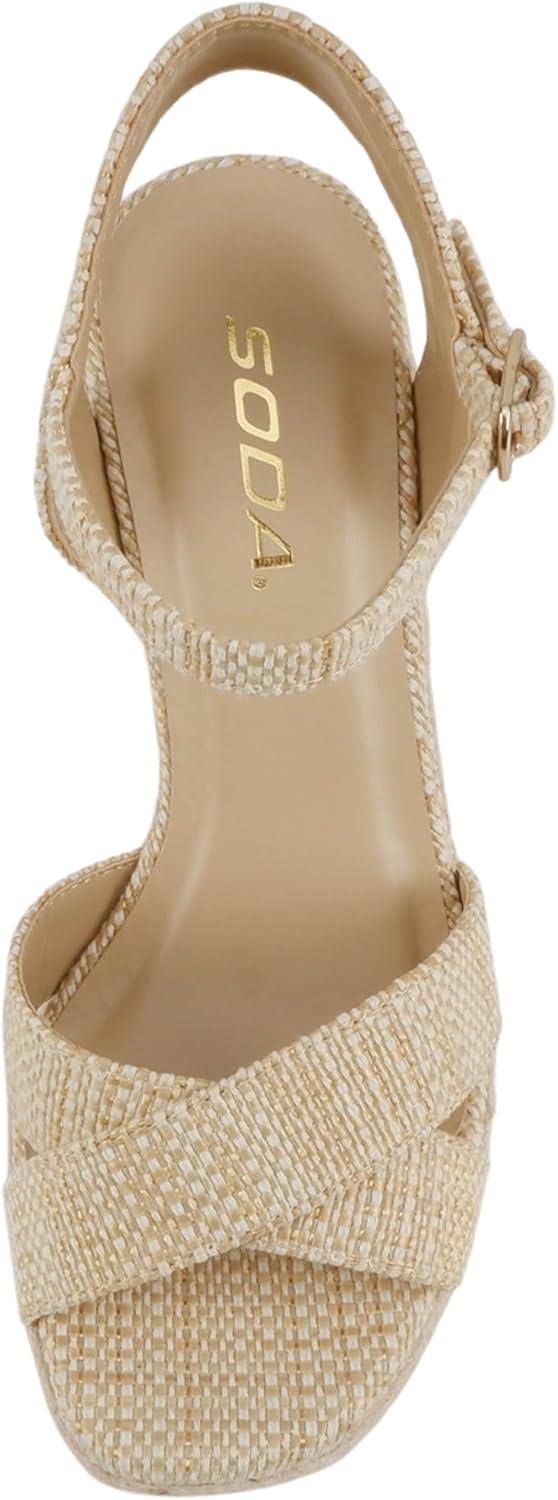 Soda Chatwin ~ Women Square Toe Crisscross Band High Heel Espadrille Wedge Sandals(Natural Raffia)
