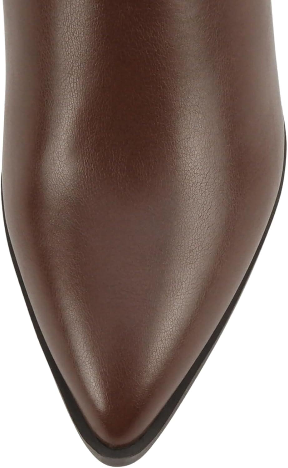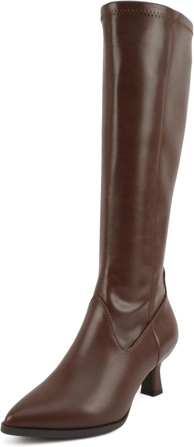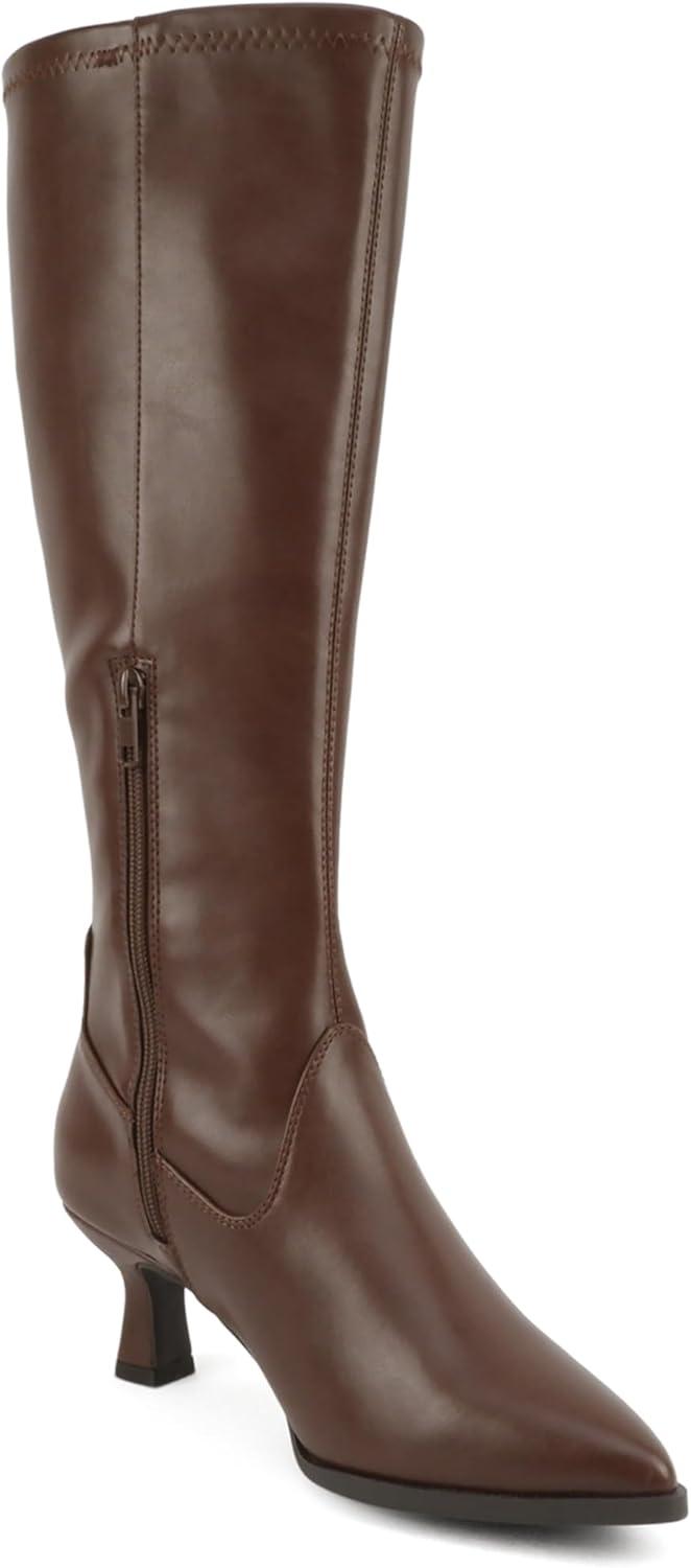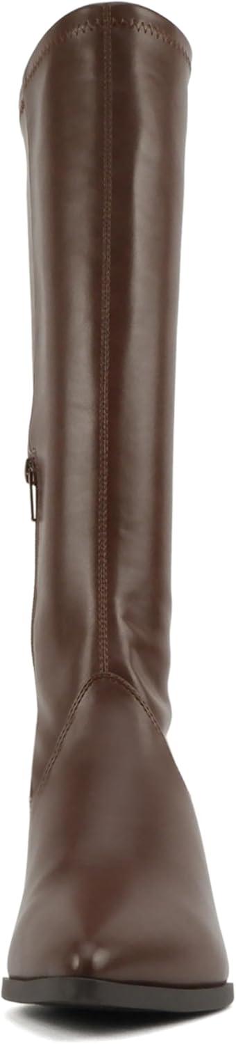 Soda “Drawn” ~ Women Pointed Toe Low Heel Quarter Zip Knee-High Boot(D-brown Pu)