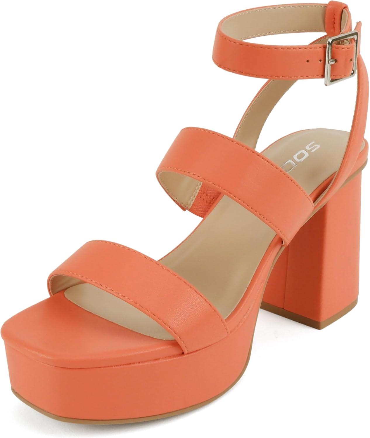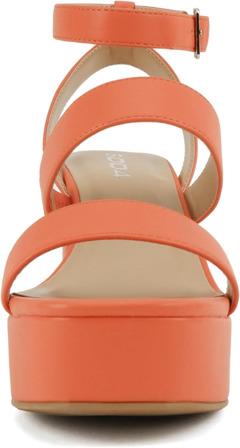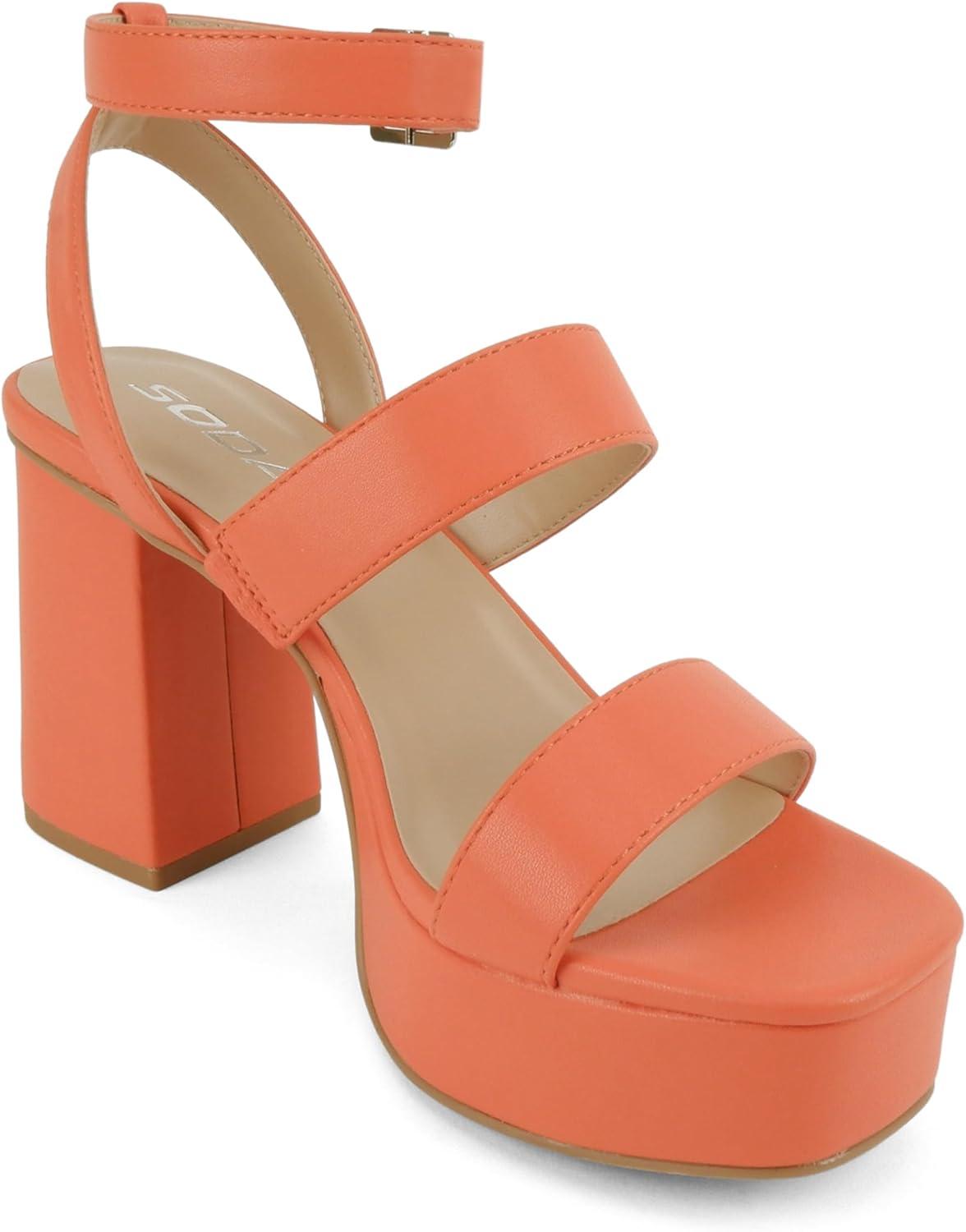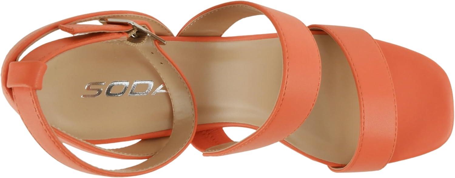 Soda “Dudley” ~ Women Square Toe Multi Band High Heel Platform Dress Sandal with Adjustable Ankle Strap(Orange Pu)
