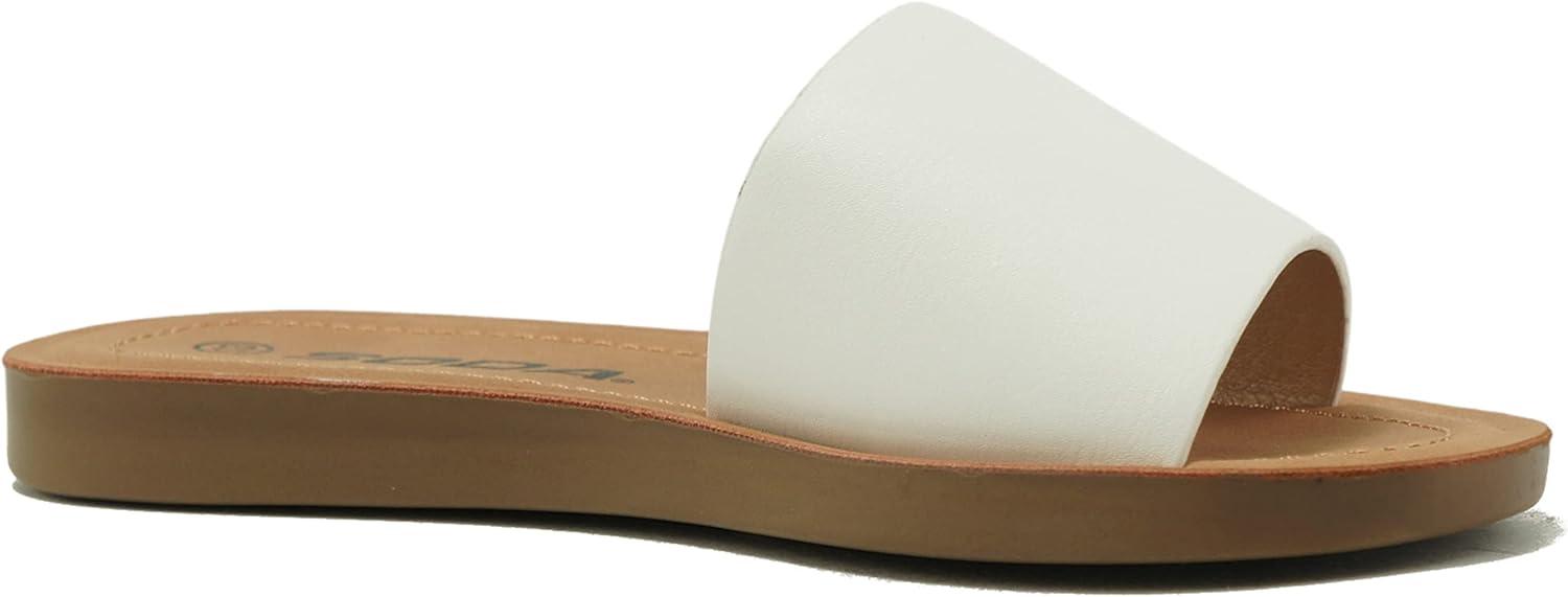 Soda EFRON-2 Little Kid Children Girls Toddler Casual Comfort One Band Fashion Slip on Slide Flip Flop Flat Sandals(White Pu)