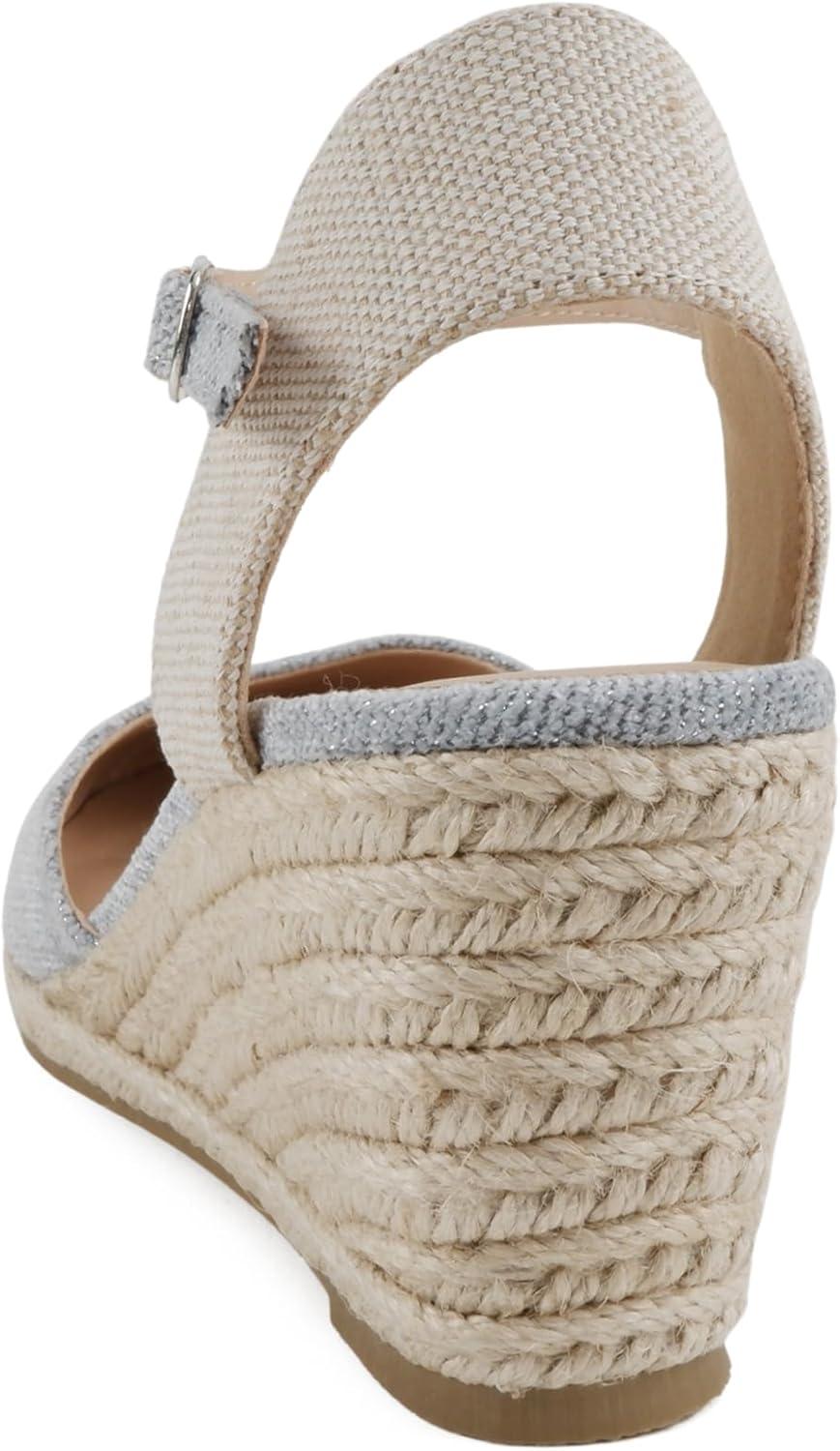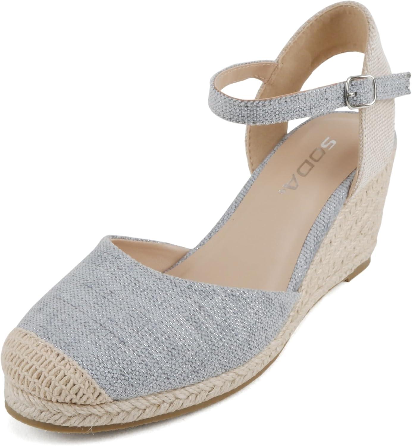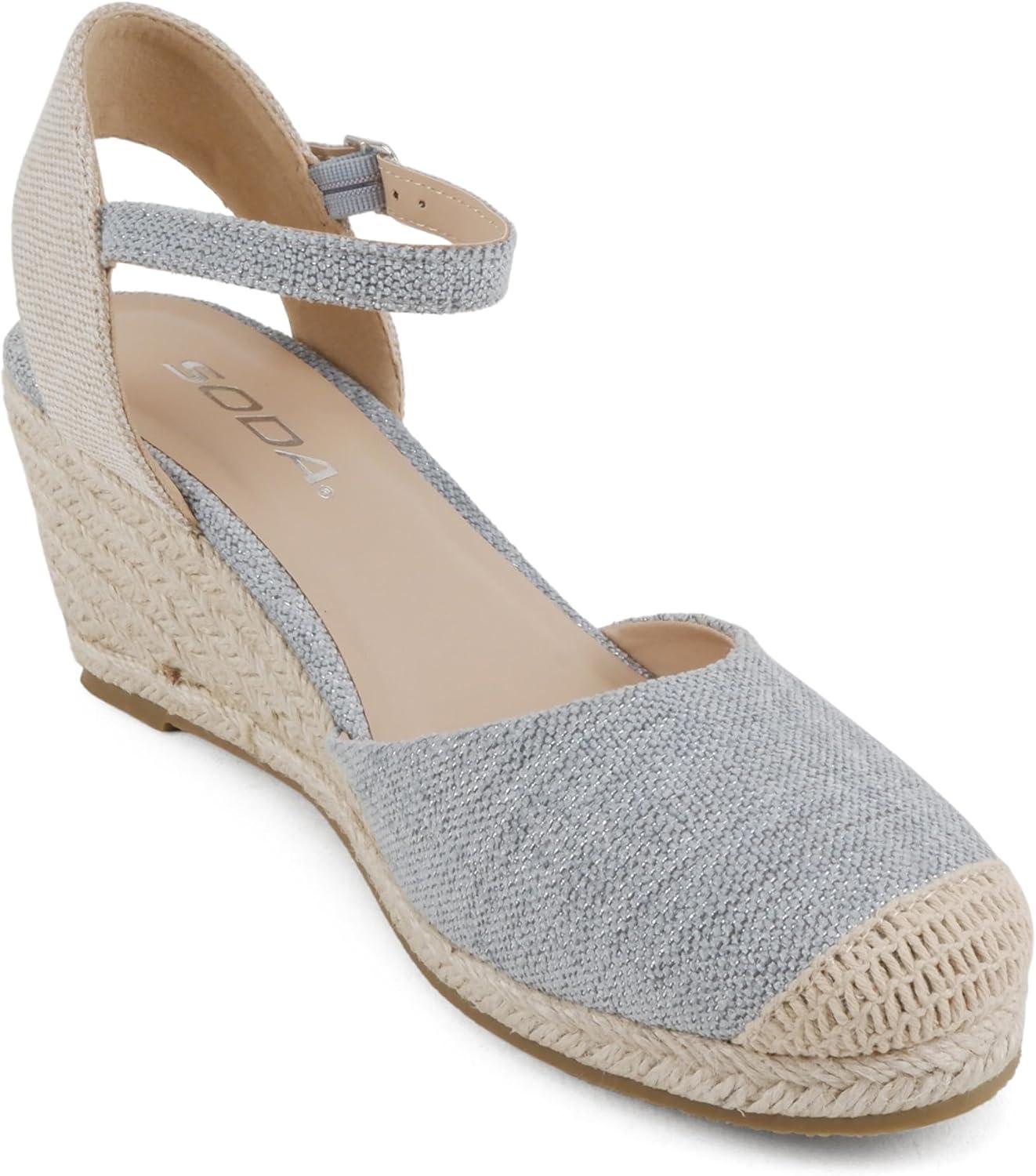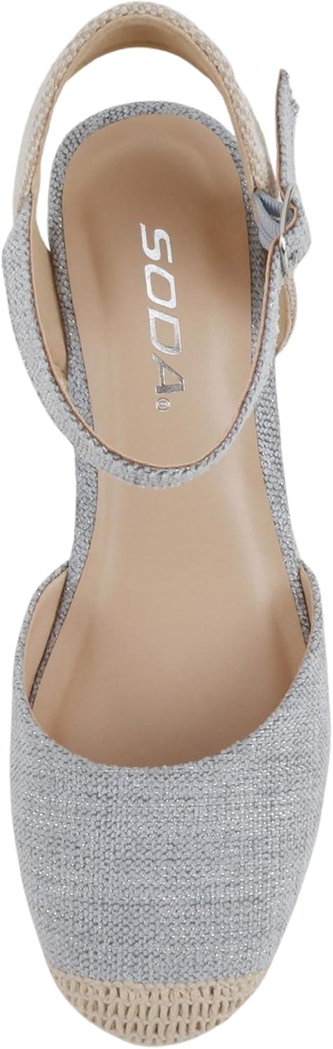 Soda Elfin ~ Women Square Toe Frayed Linen Espadrille Wedge Sandal(Blue)