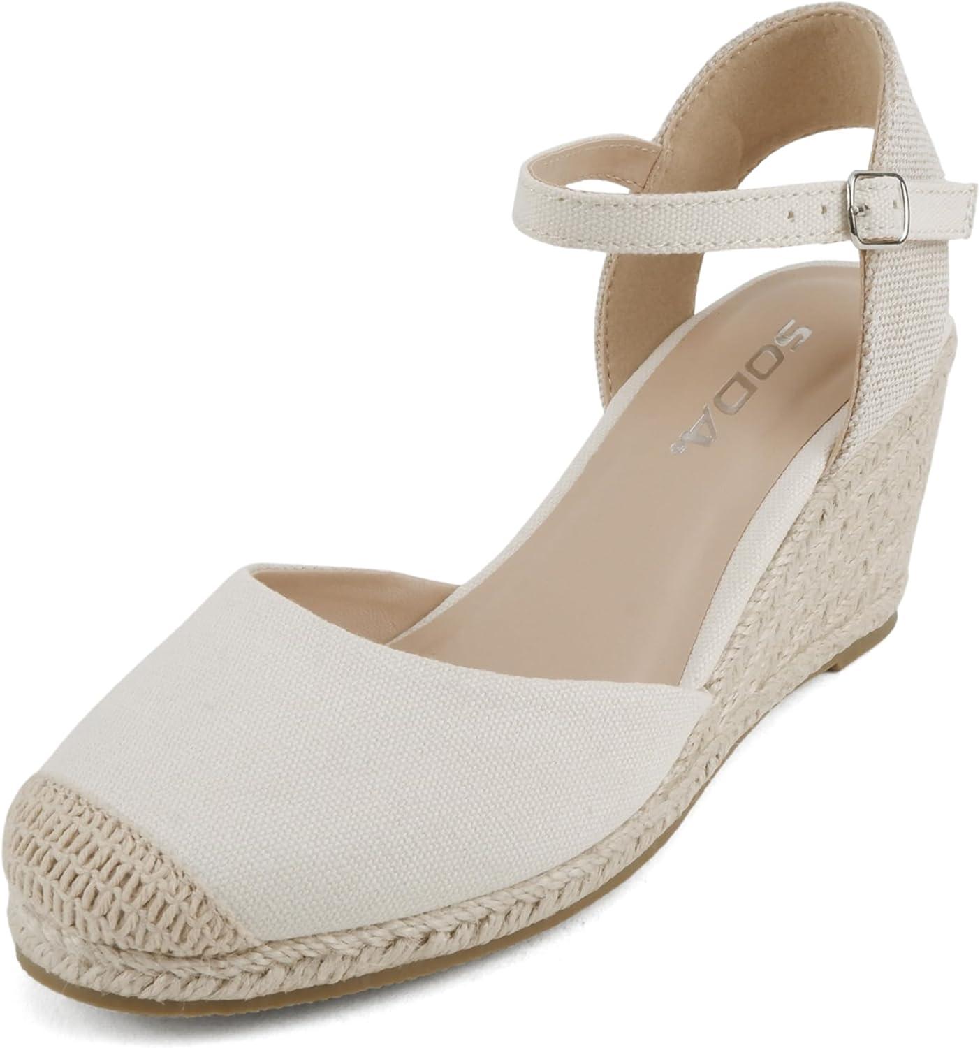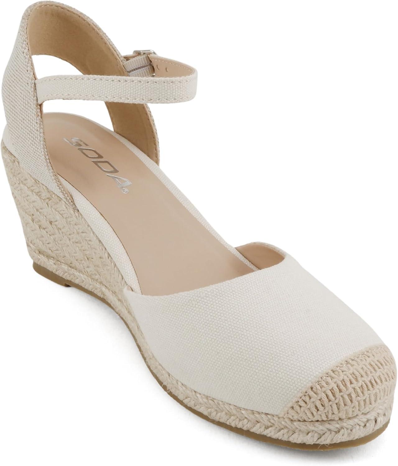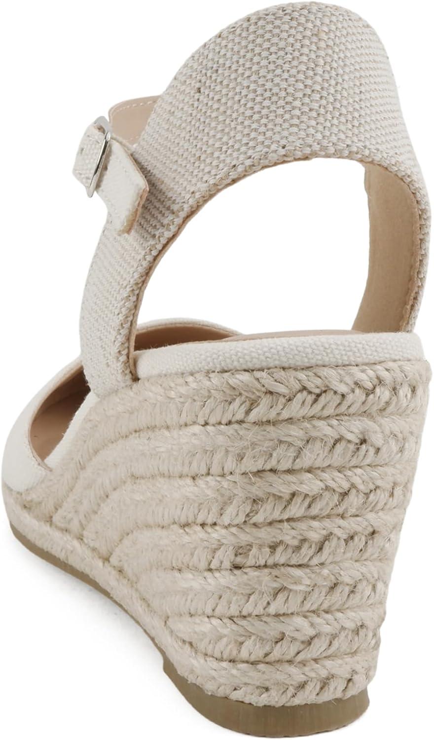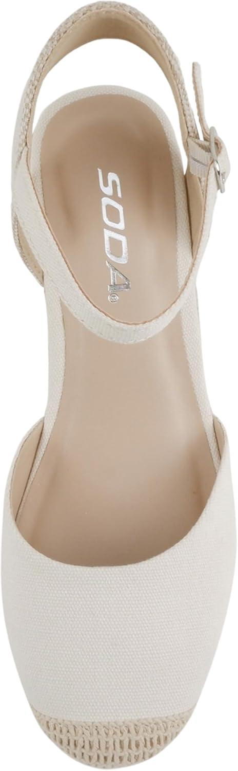 Soda Elfin ~ Women Square Toe Frayed Linen Espadrille Wedge Sandal(Light Beige)