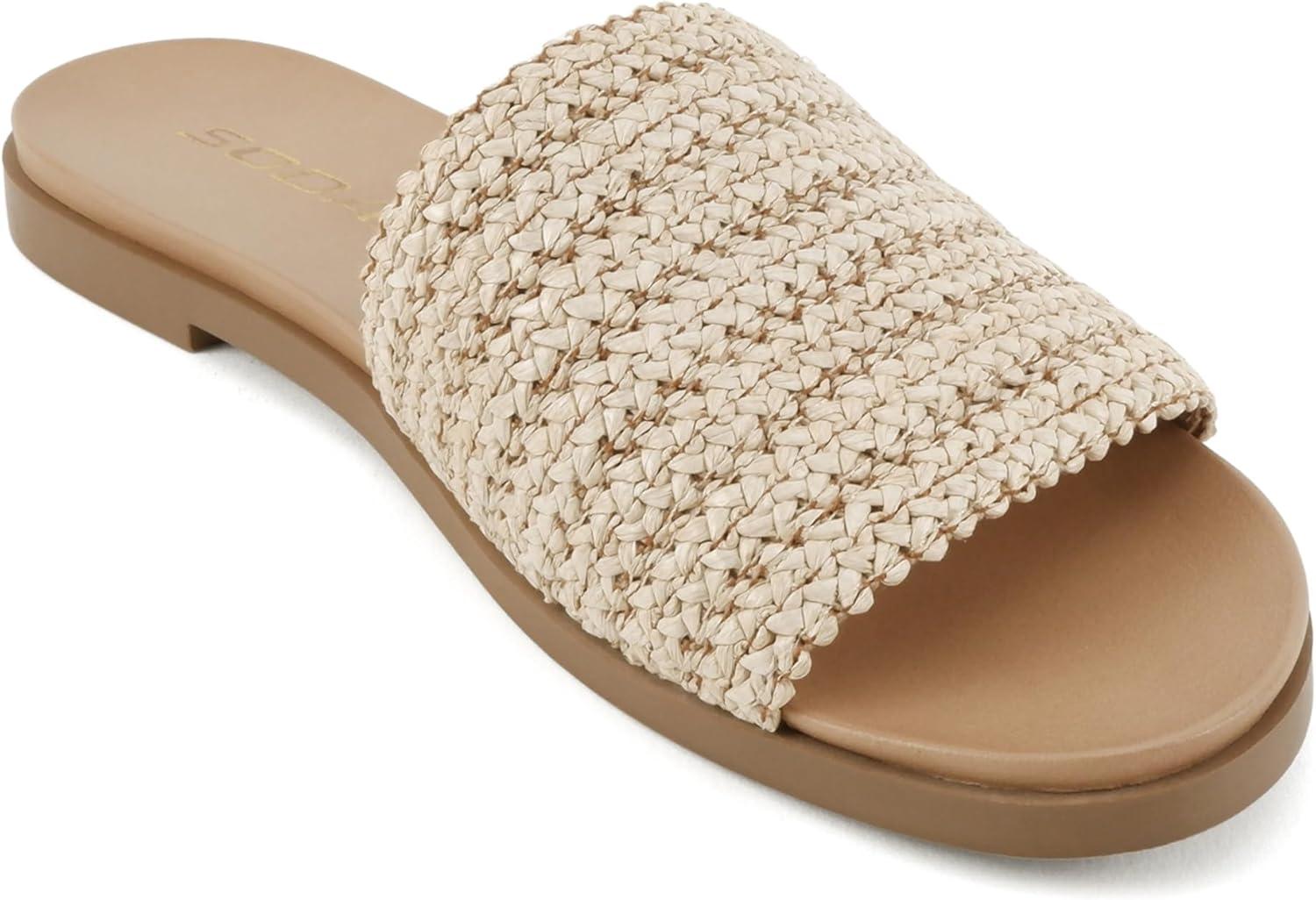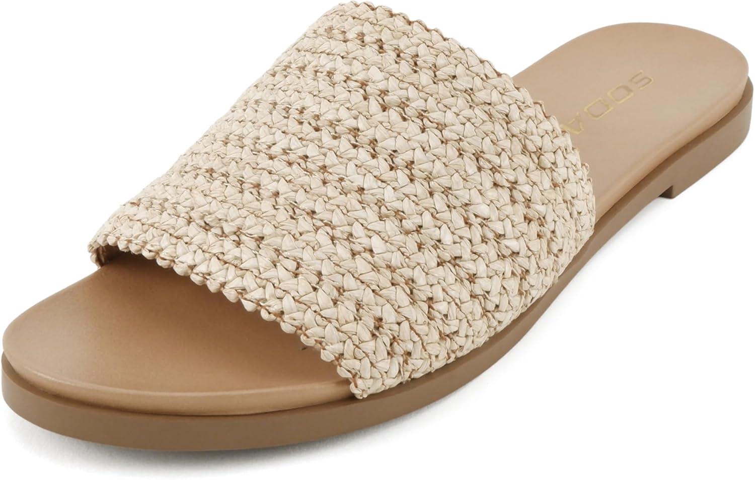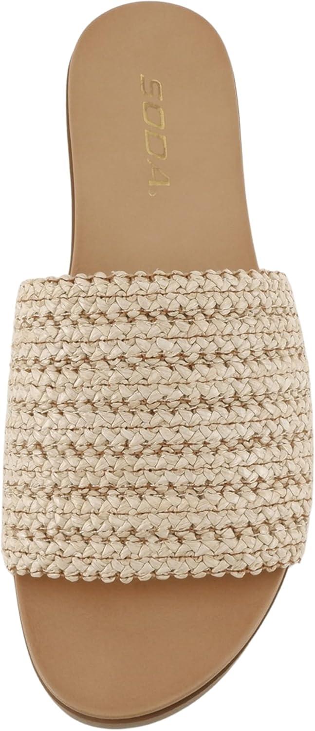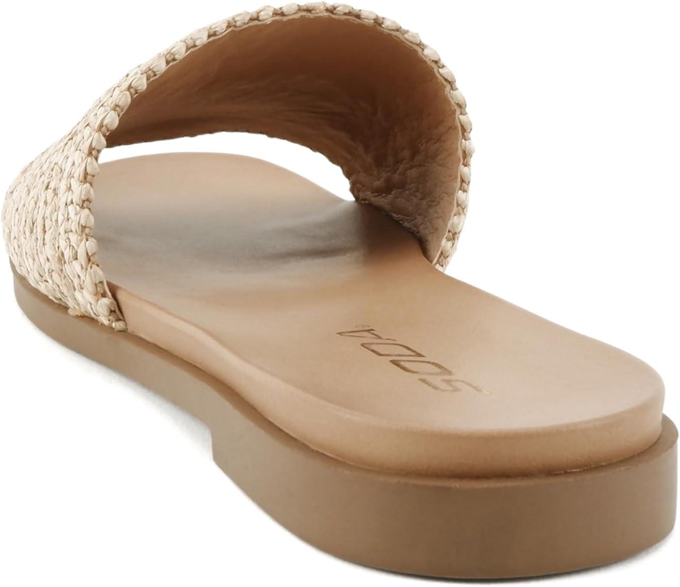Soda Fate ~ Women Round Toe Single Band Raffia Slide Sandals(Raffia)