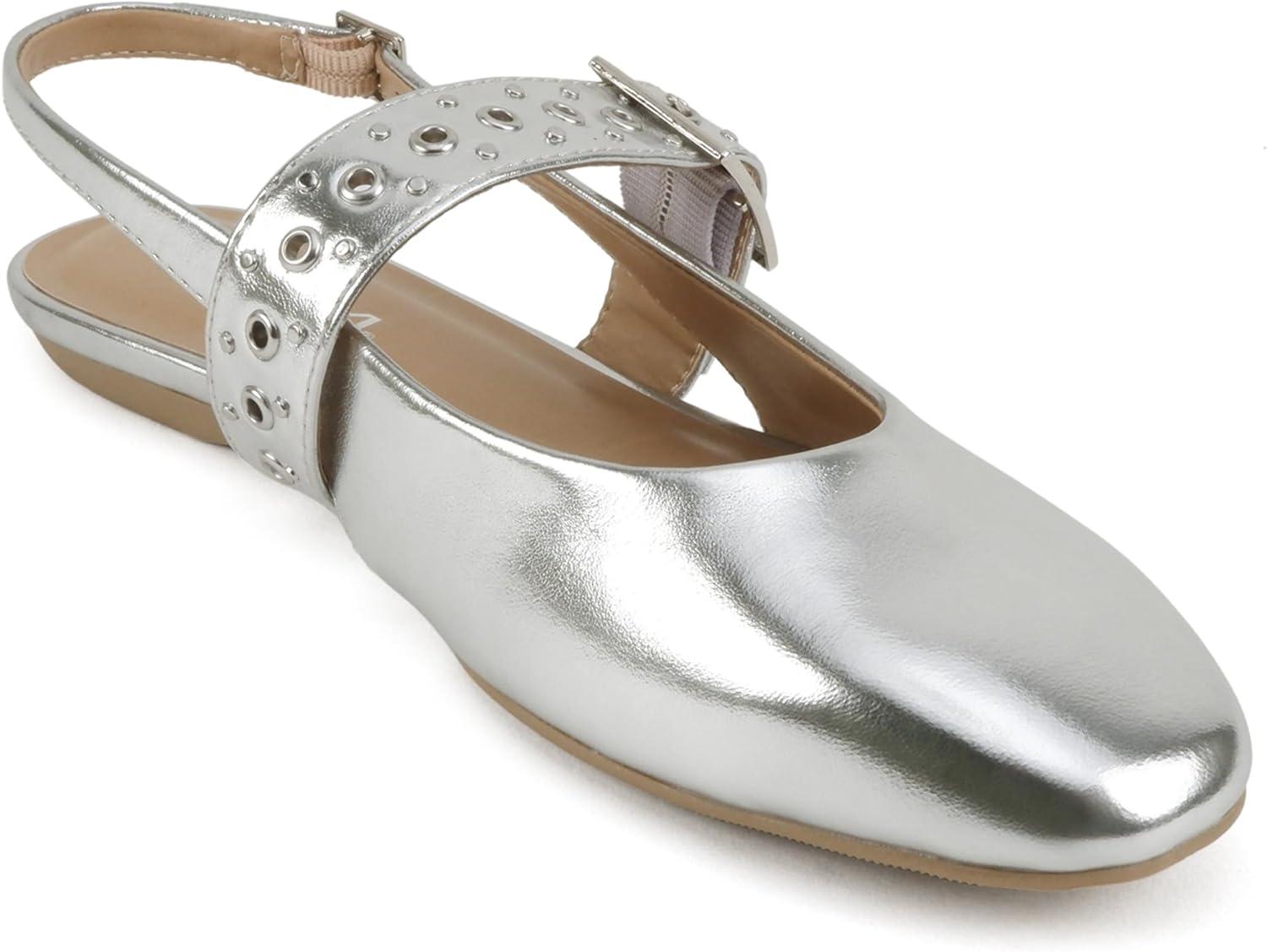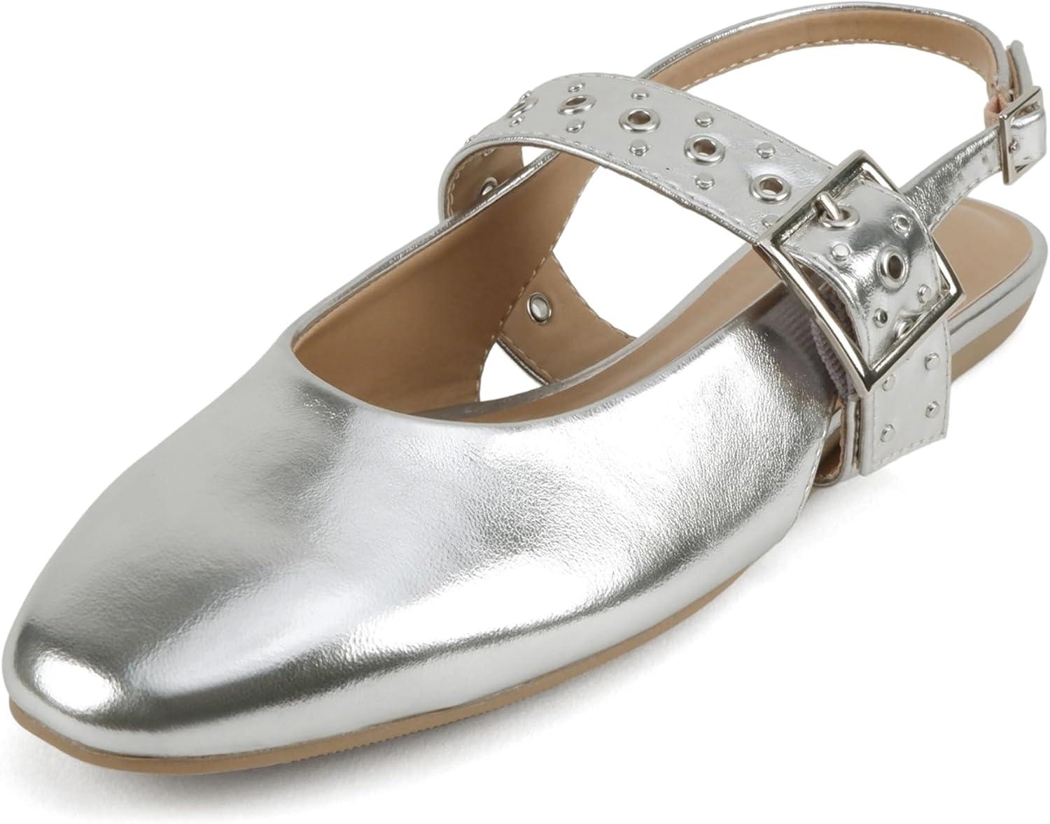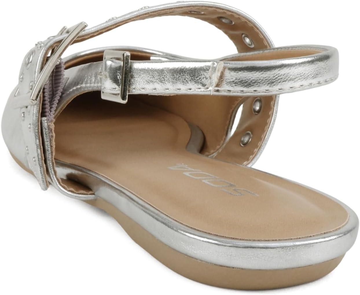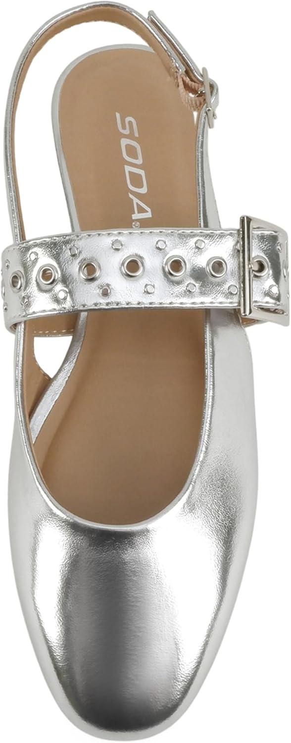 Save up to 40% on Soda Fruity ~ Women Round Toe Slingback Mule with Buckle Straps(Silver Pu) styles during our end-of-season sale.