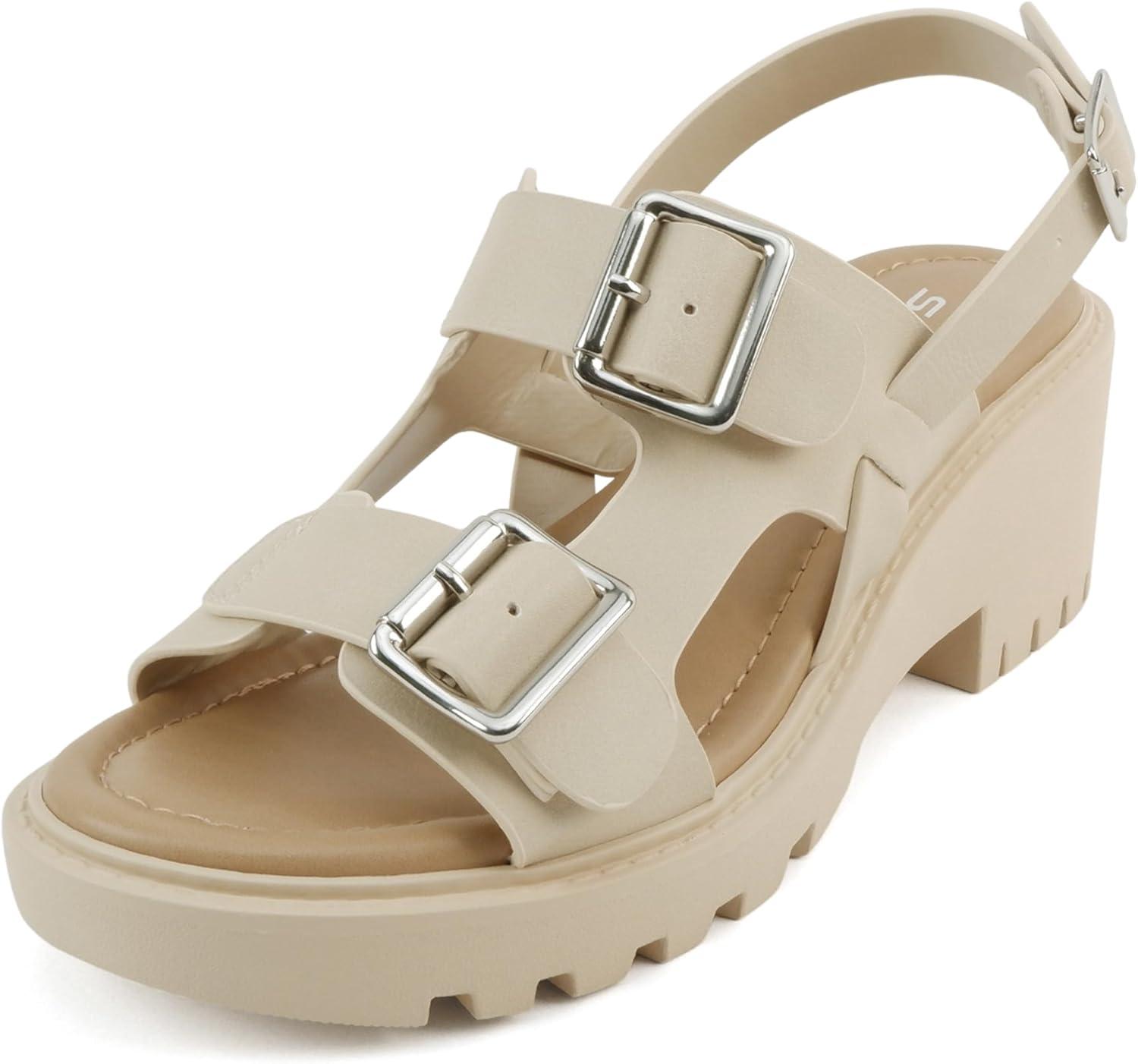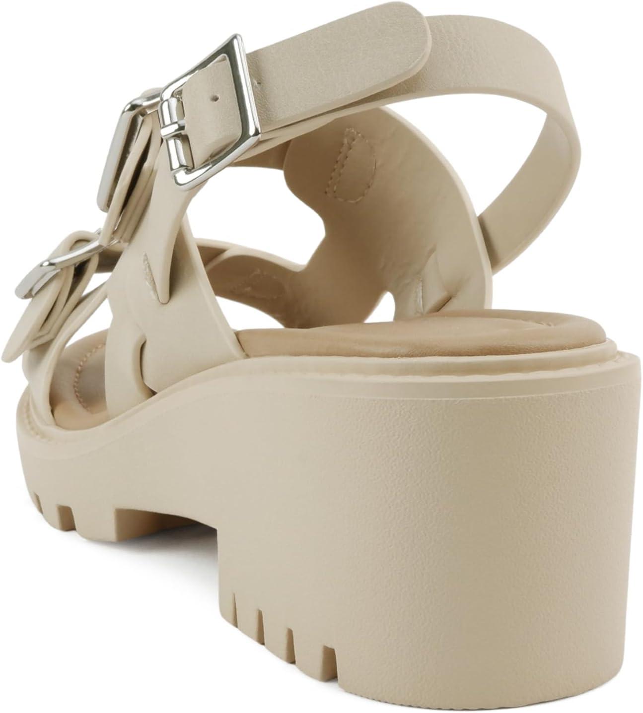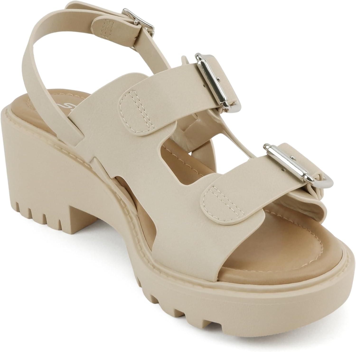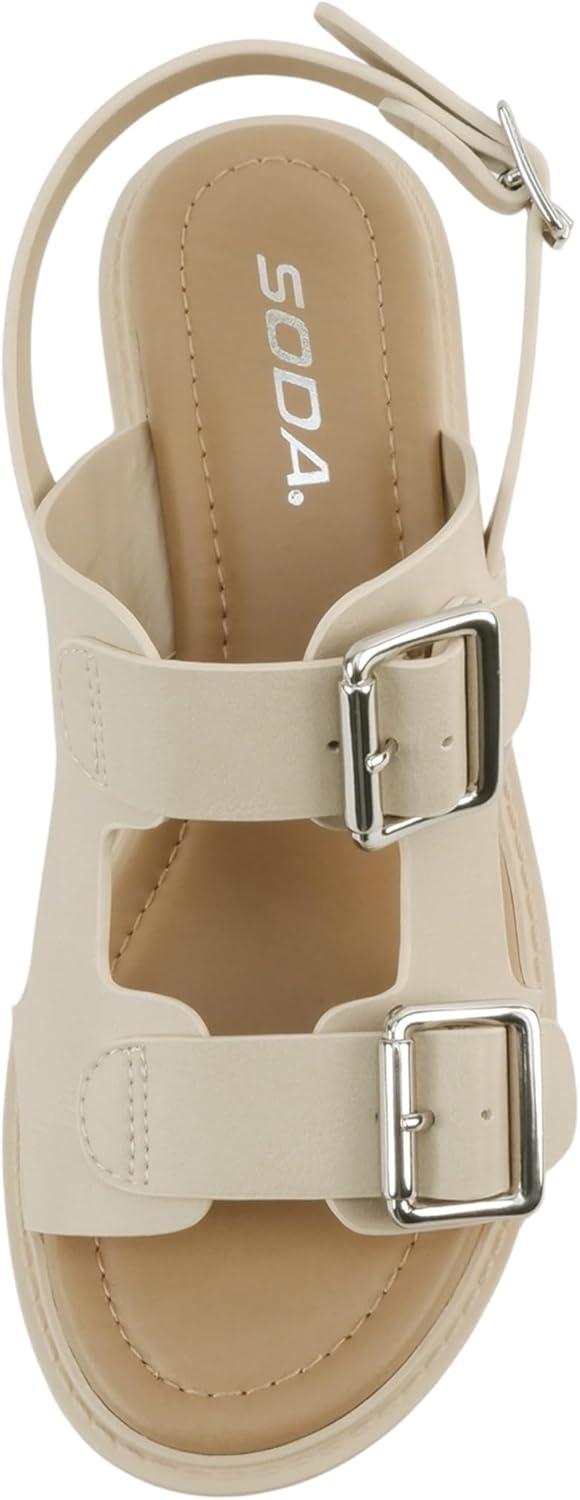 Soda “Galaxy” ~ Women Open Toe Fisherman Lug Sole Low Heeled Sandals(Beige Pu)