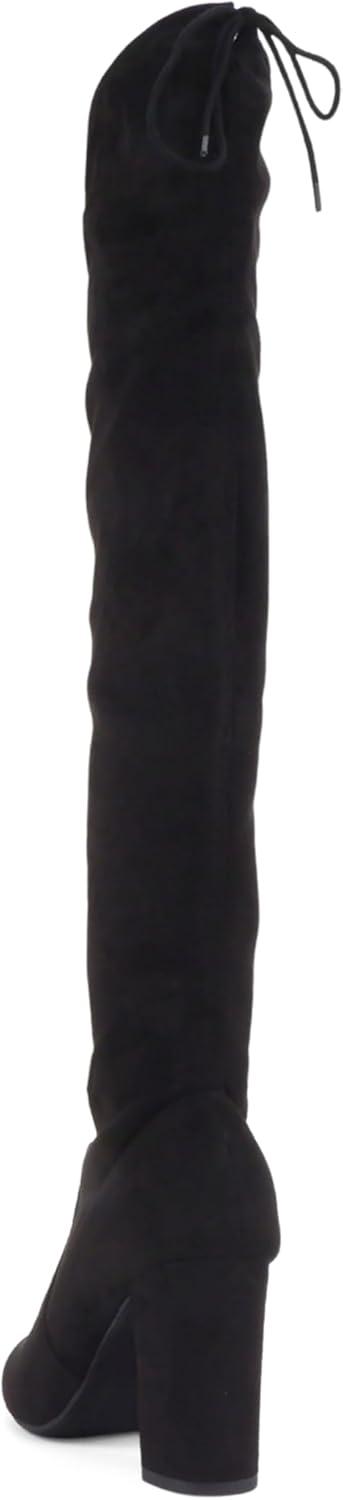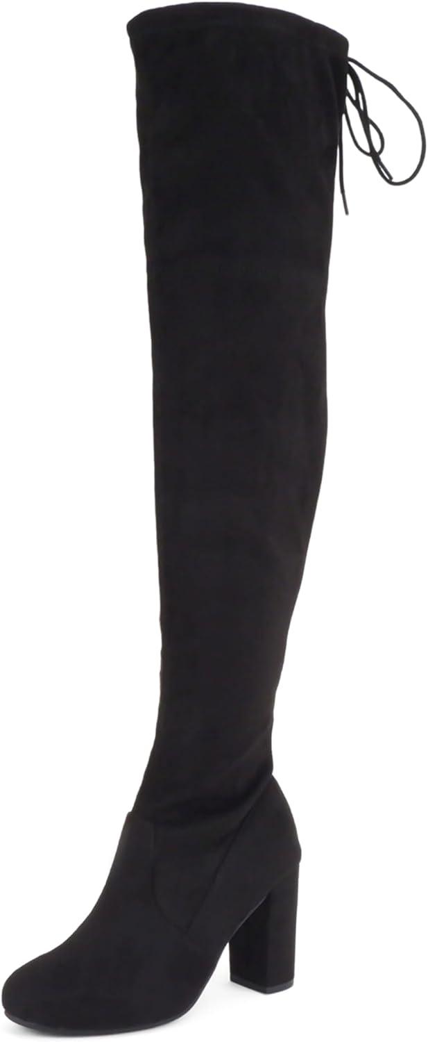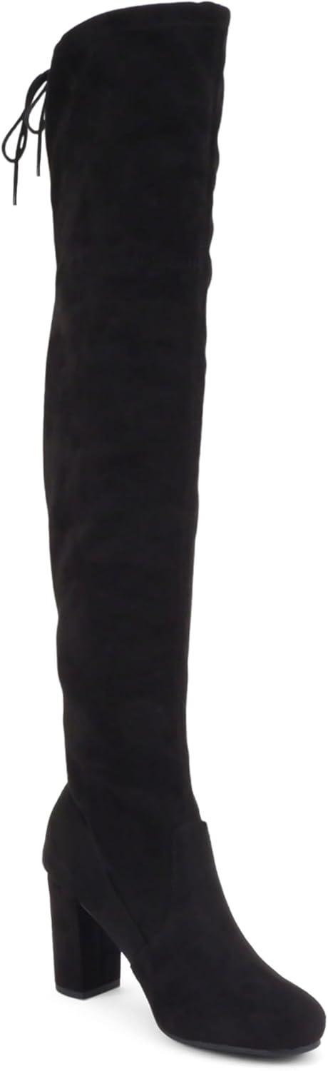 Soda Glora ~ Women Round Toe Drawstring High Heel Over the Knee Boots(Black Imsu)