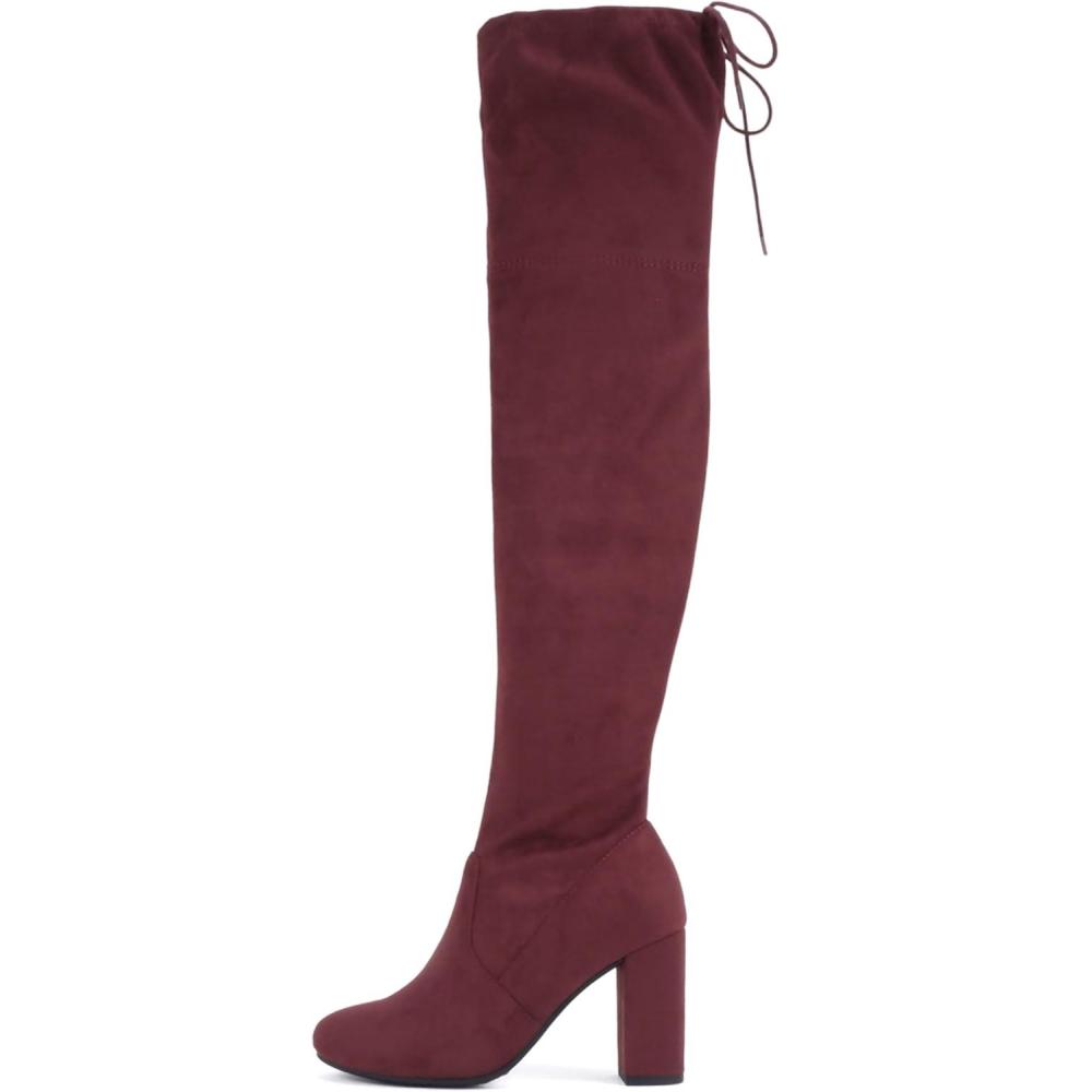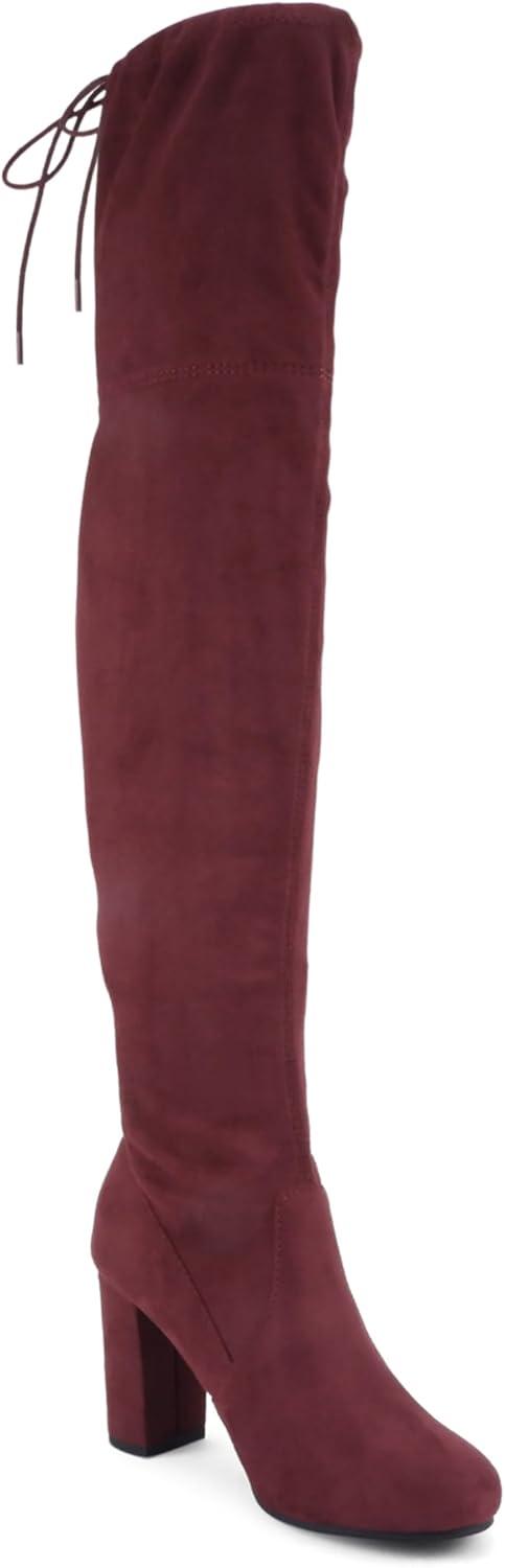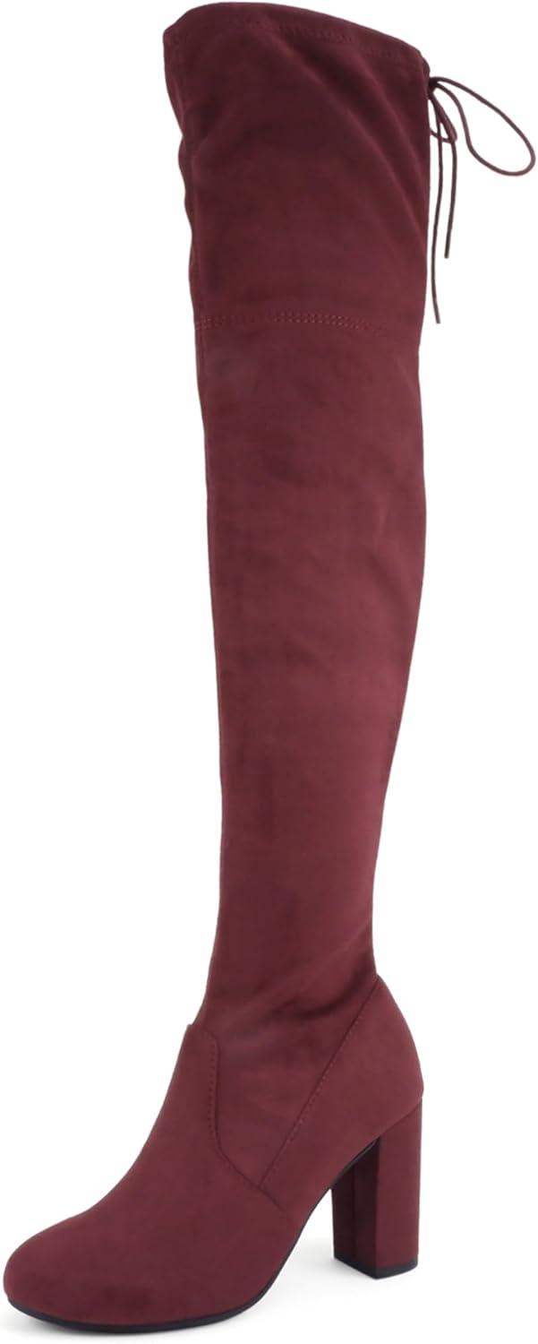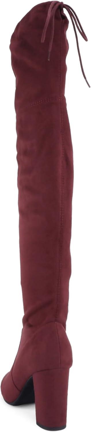 Soda Glora ~ Women Round Toe Drawstring High Heel Over the Knee Boots(Burgundy Imsu)