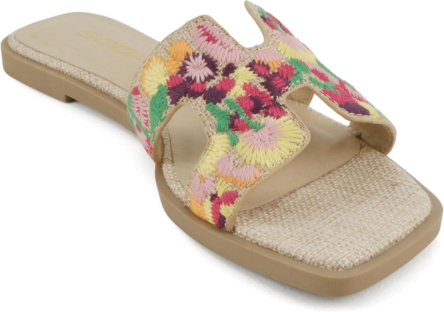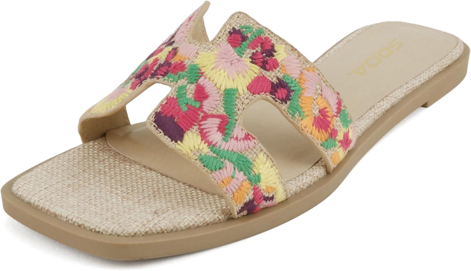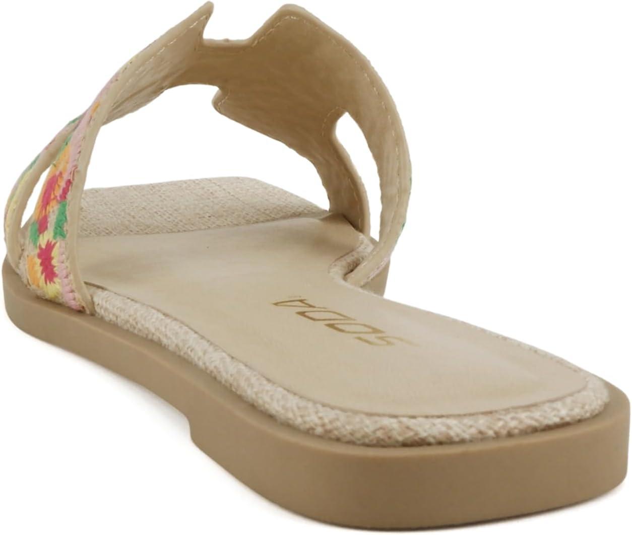 Get up to 60% off on Soda Gymnic ~ Women Square Toe Embroidered H-Band Flat Slide Sandals(Raffia) styles during our winter sale event.