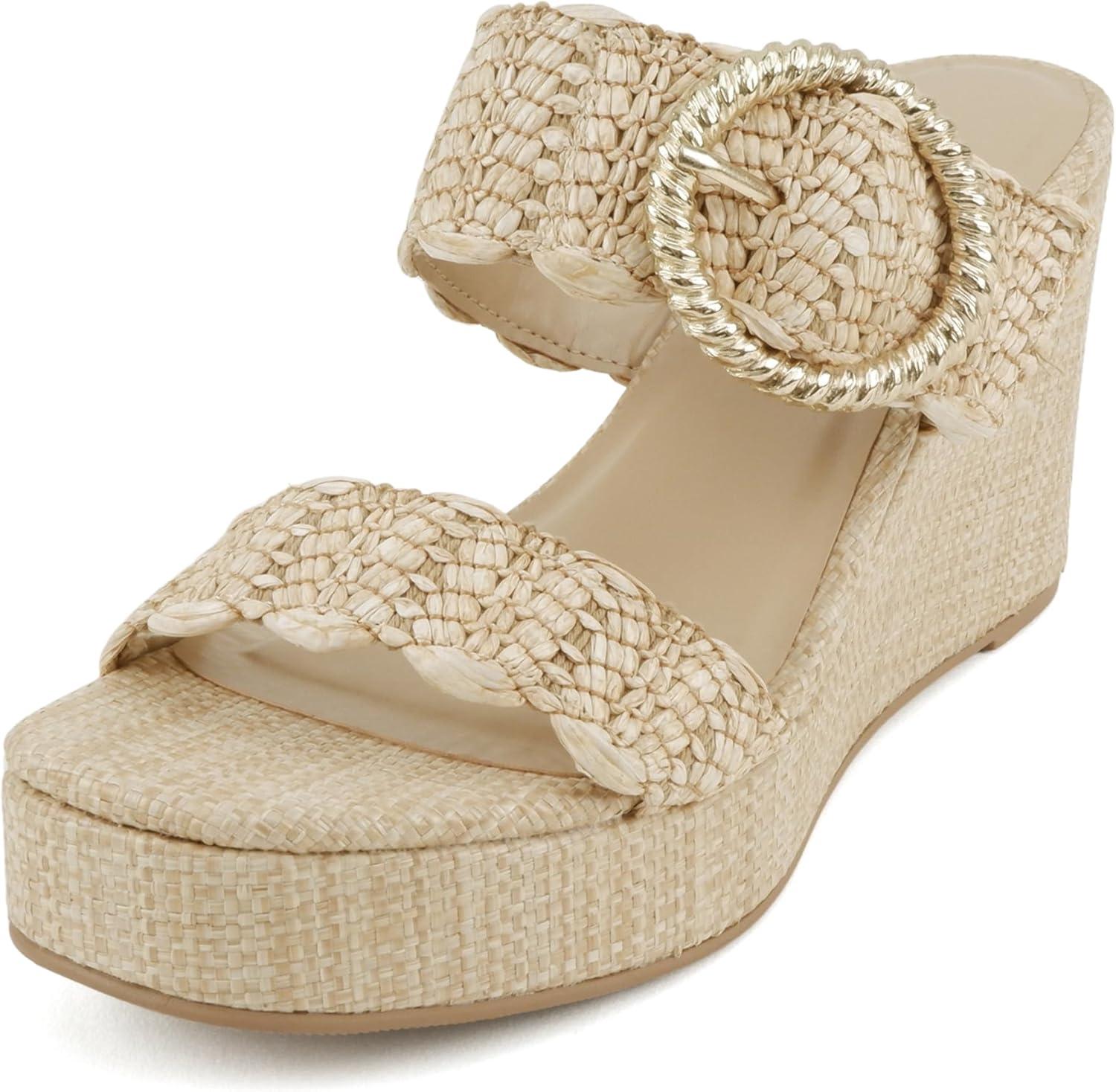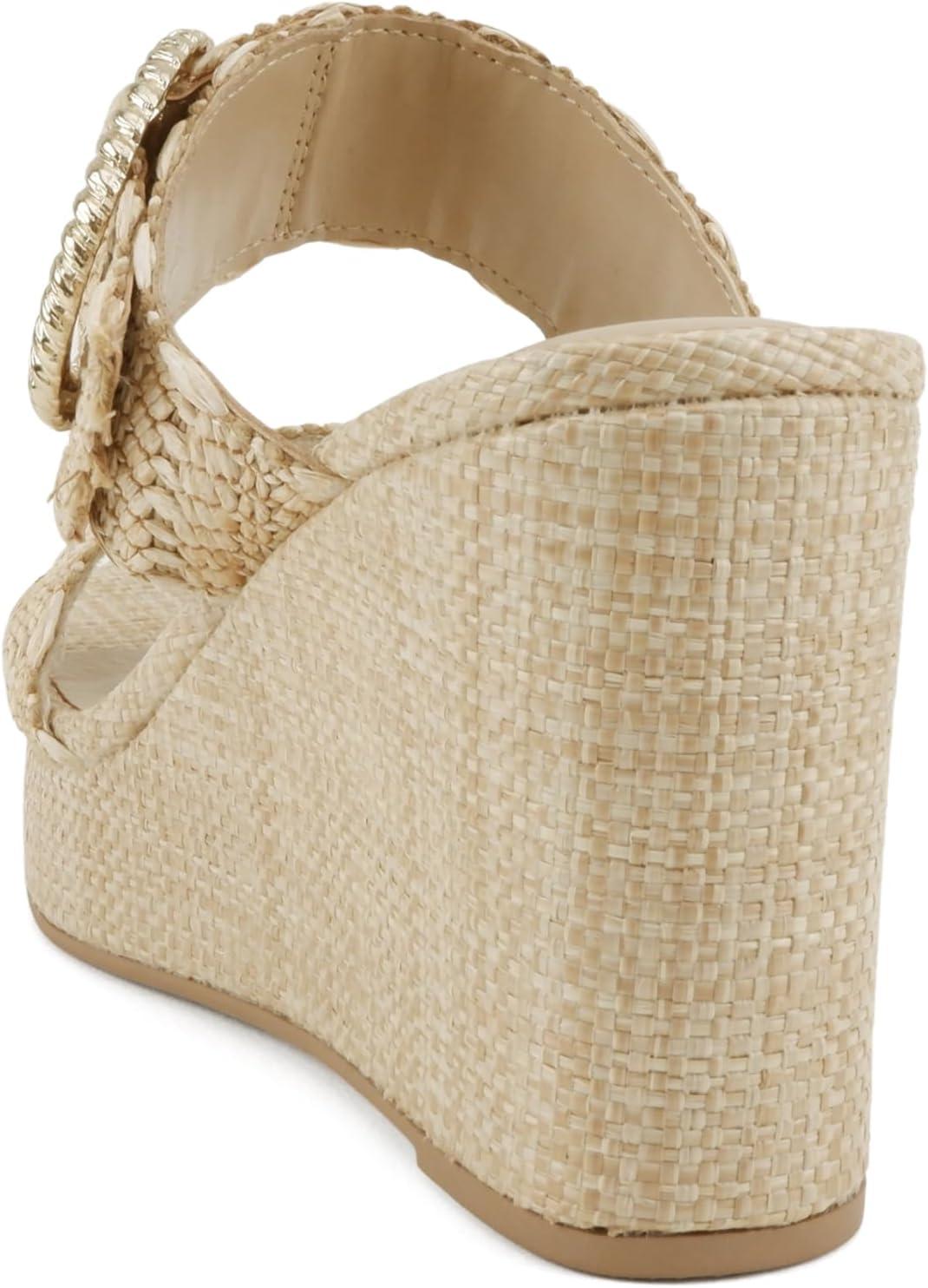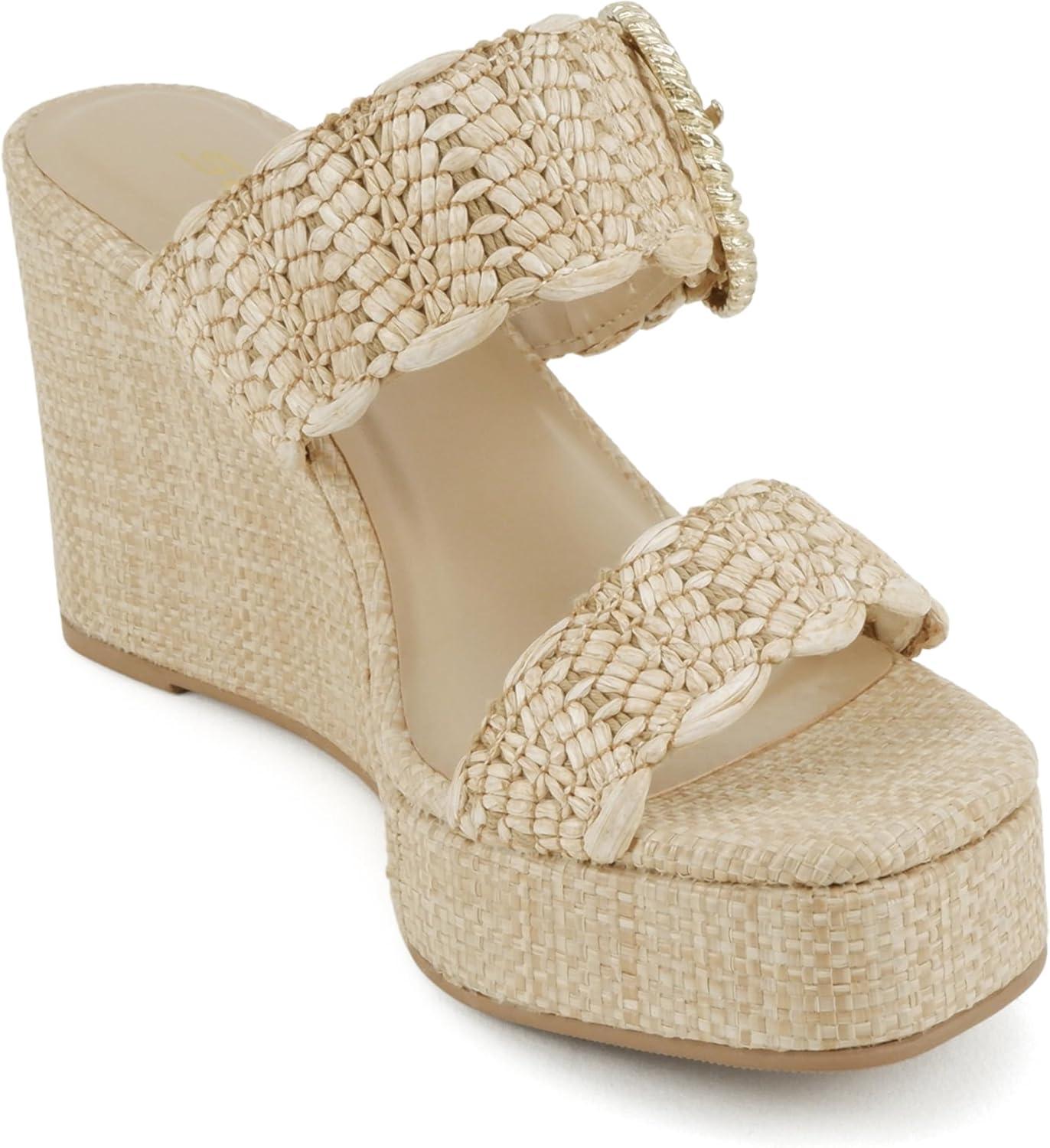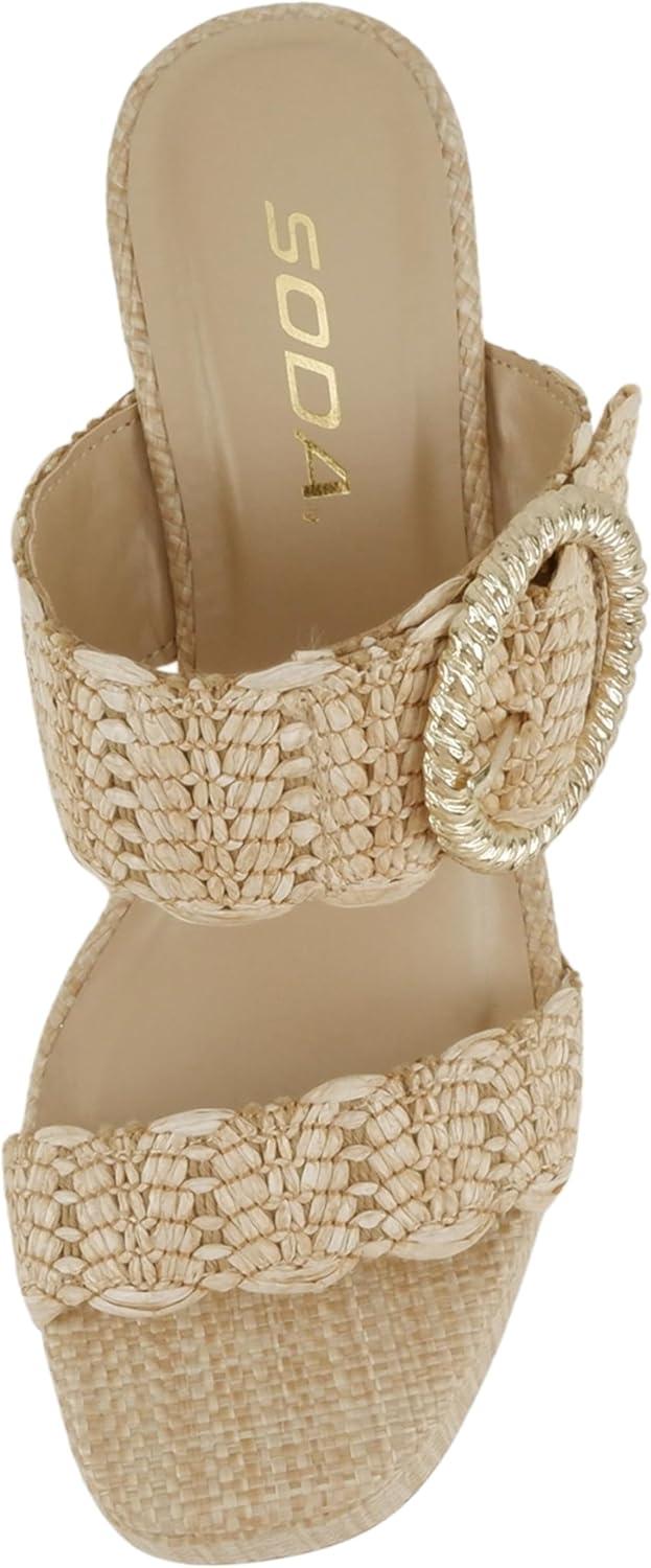 Soda “Ilana” ~ Women Square Toe High Wedge Heeled Raffia Sandals(Natural Raffia)