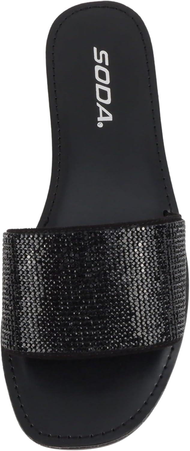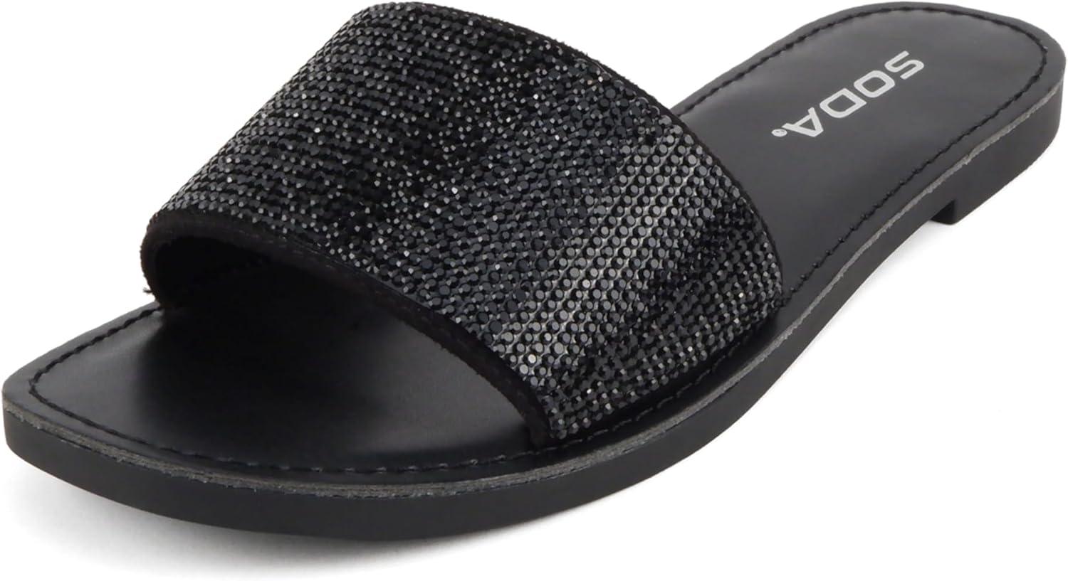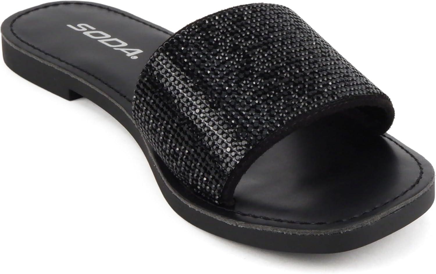 Soda JUSTICE ~ Women Casual Rhinestones Crystal Jewel Comfort Flip Flop Fashion Slide Flat Sandals(All-over Black)