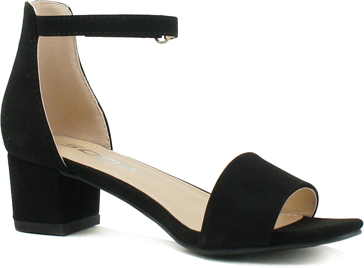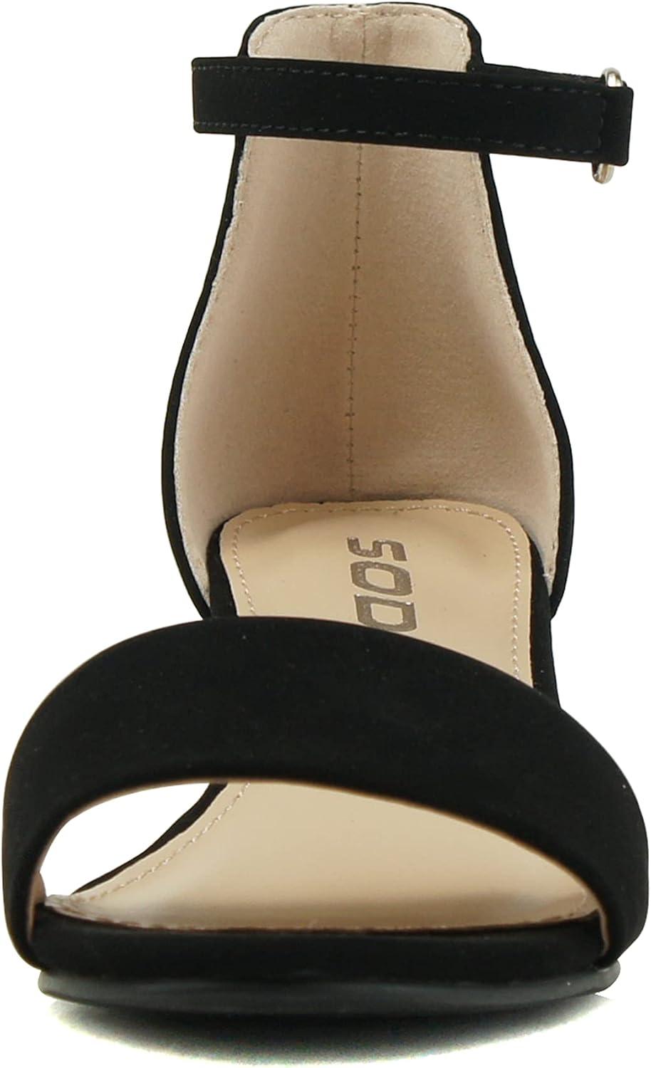 Soda Kids/Children/Girls KICK-2 Wide band Comfortable Sole with Velcor Ankle Strap Block Heel Counter Back Fashion Sandals Shoes(Black Nubuck)