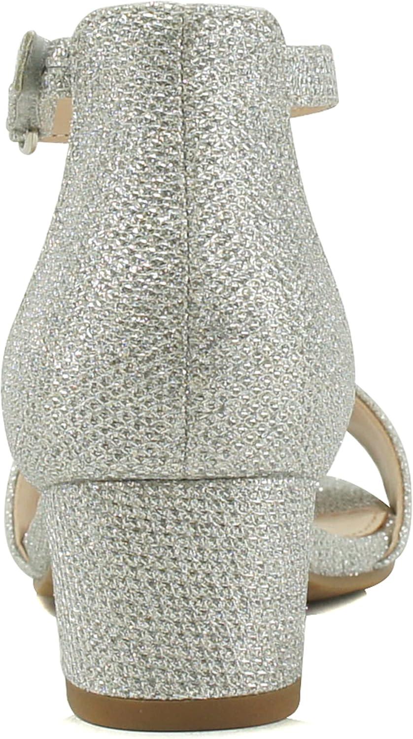 Soda Kids/Children/Girls KICK-2 Wide band Comfortable Sole with Velcor Ankle Strap Block Heel Counter Back Fashion Sandals Shoes(Silver Shimmer)