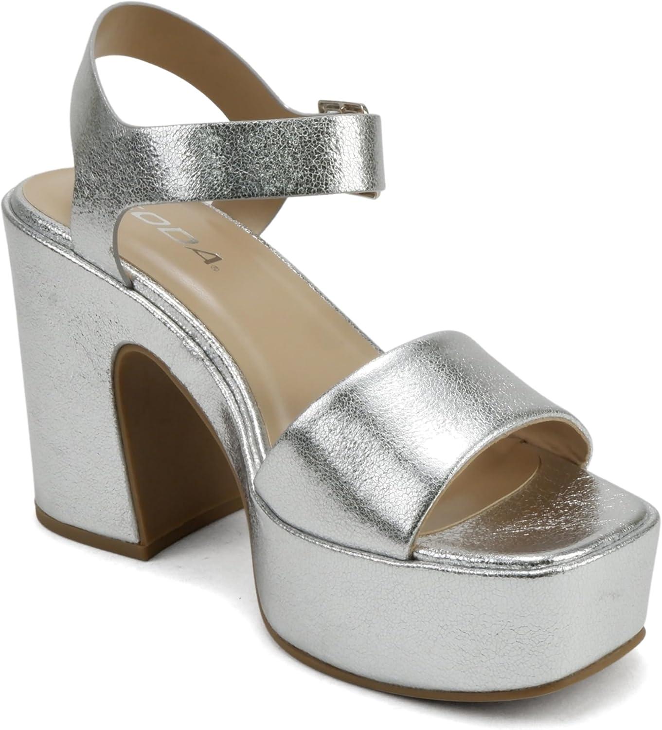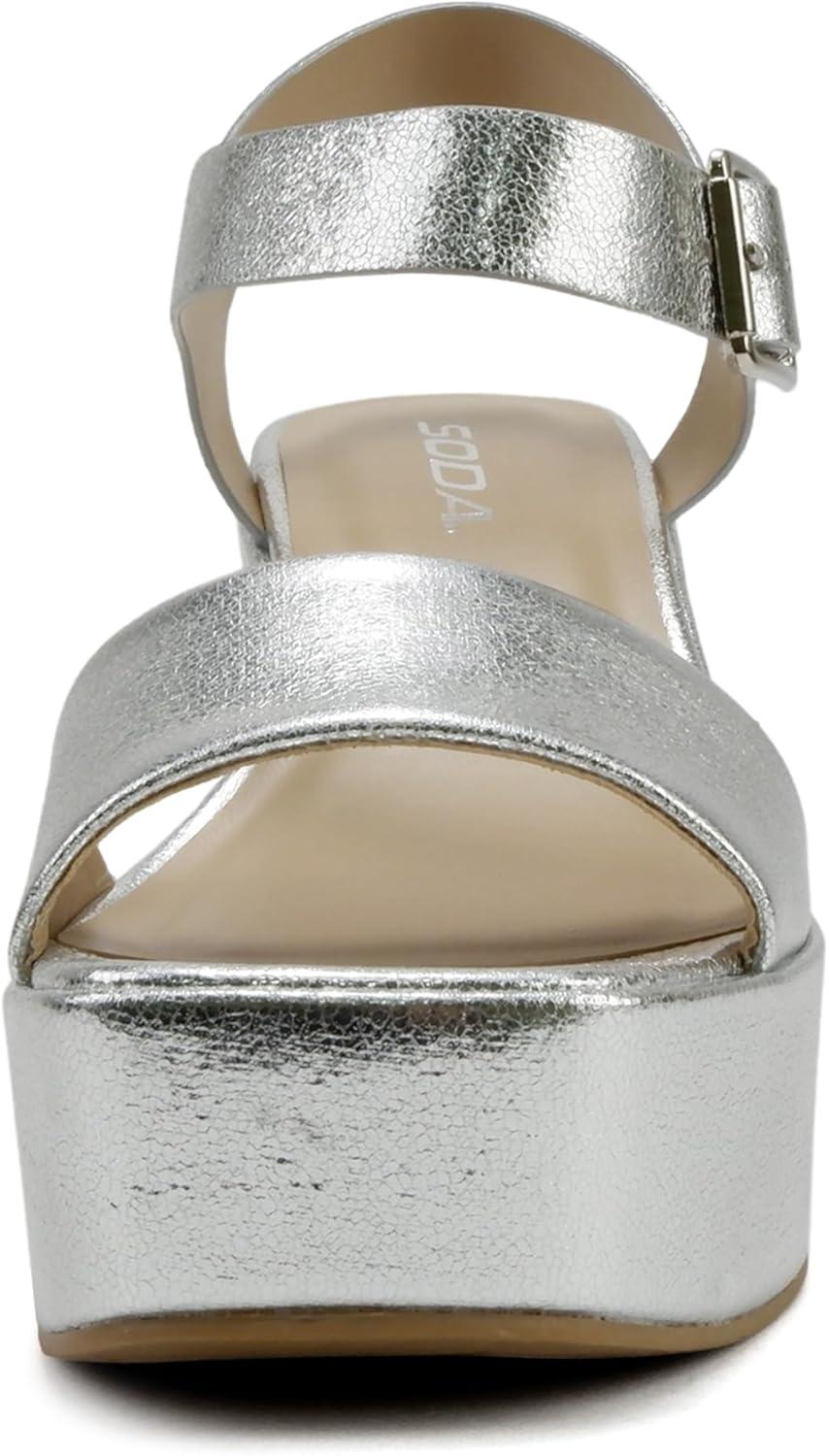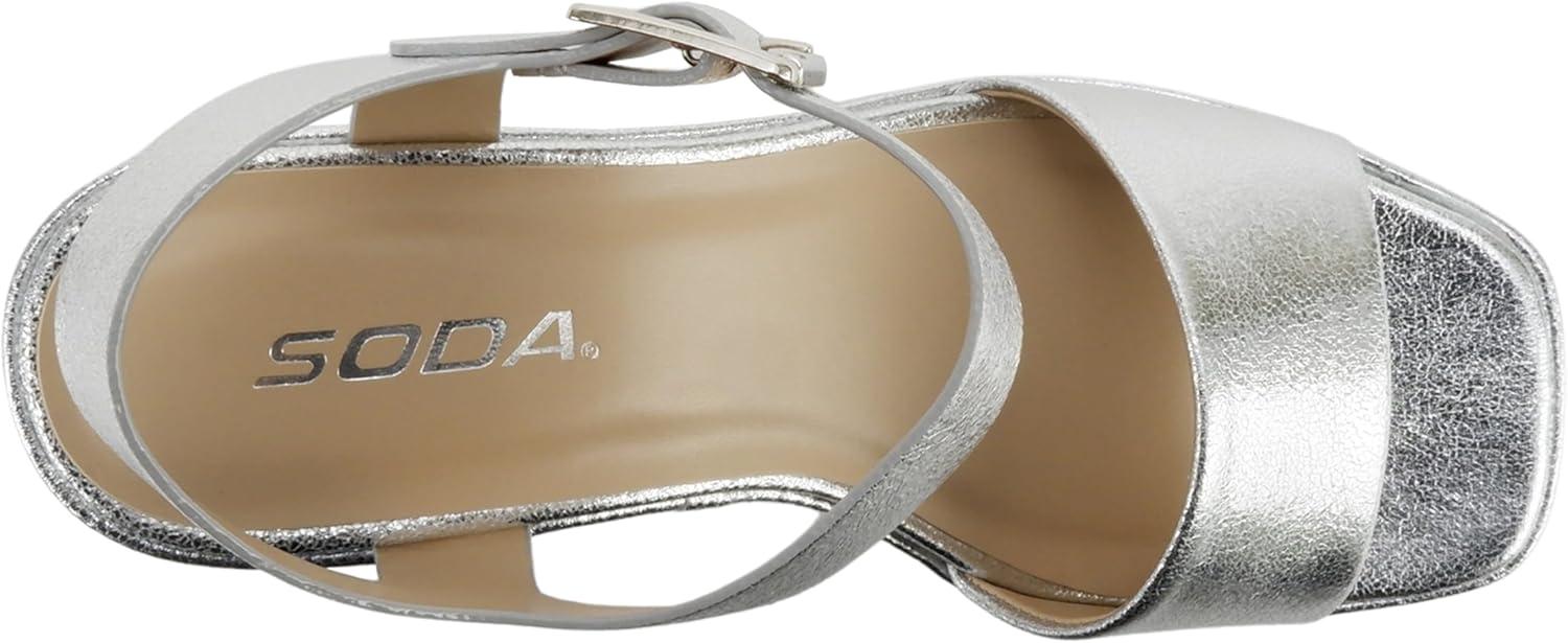 Soda Launch ~ Women Open Toe Ankle Strap Platform Chunky High Heeled Sandal(Silver Pu)