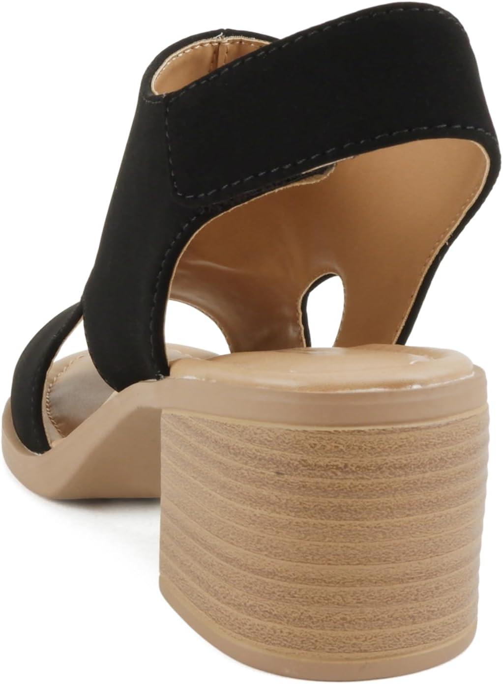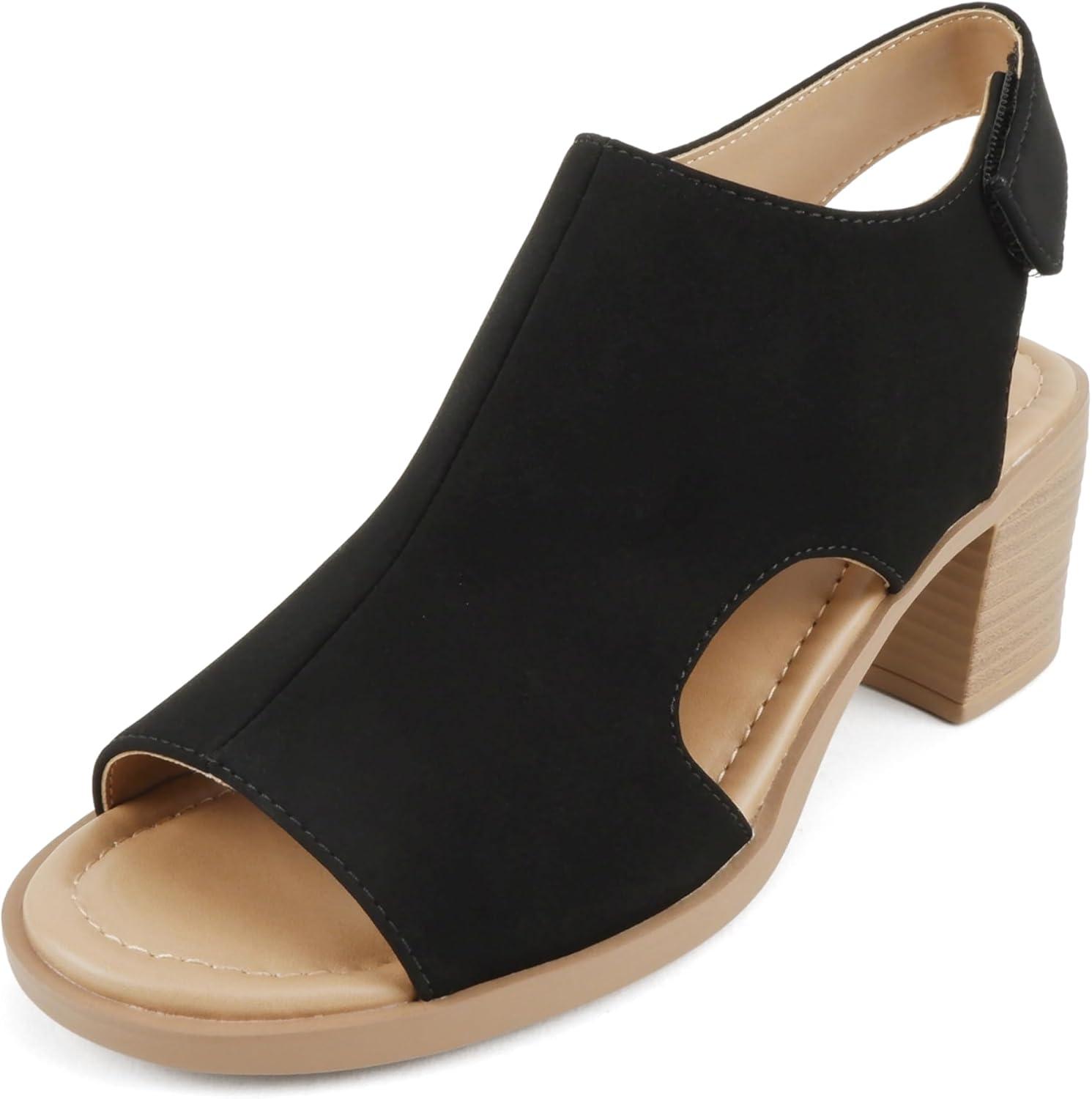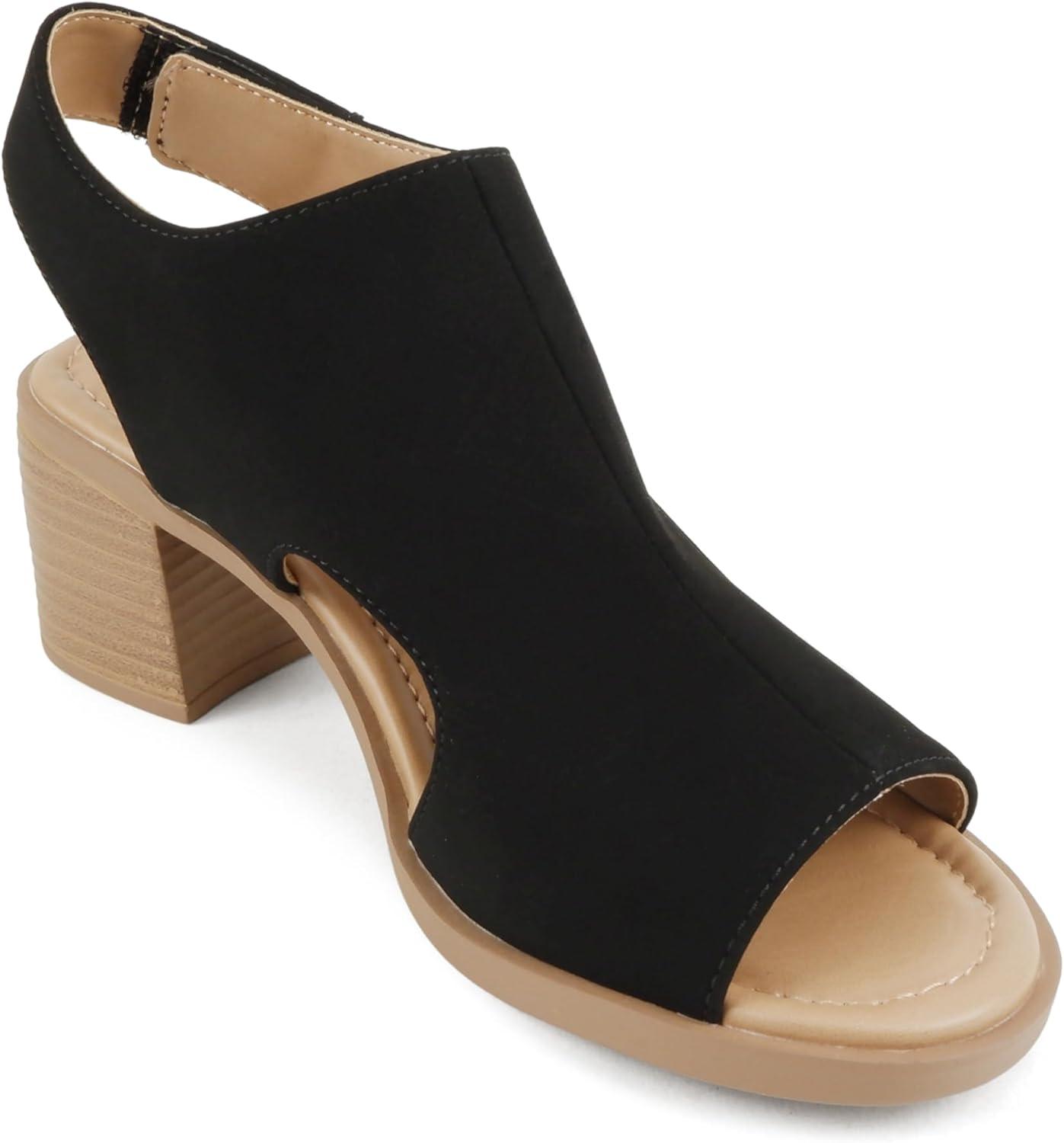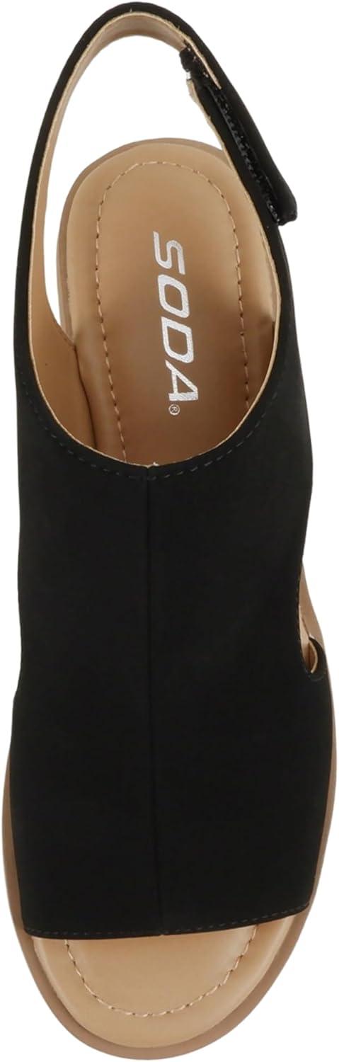 Soda Lovely ~ Women Peep Toe Slingback Low Heel Sandal(Black Nubuck)