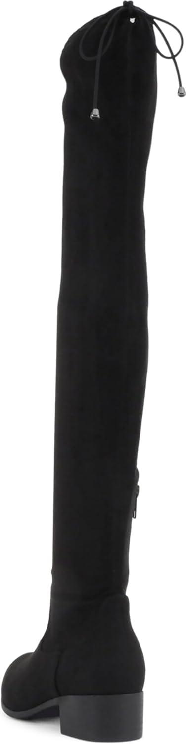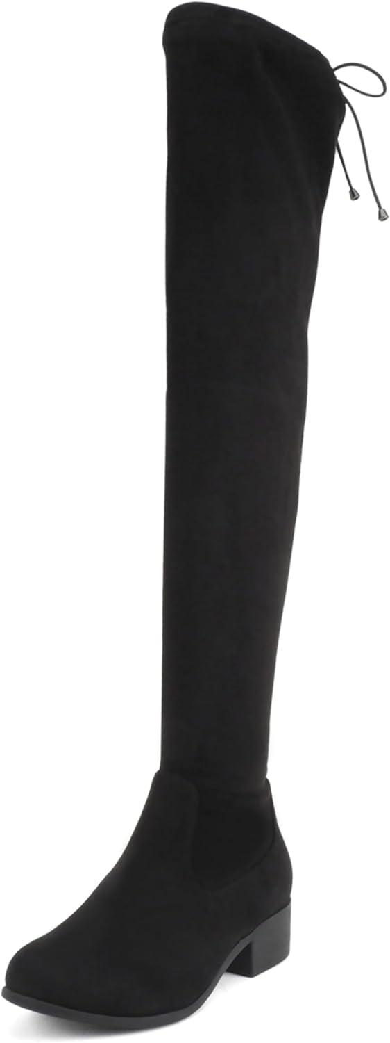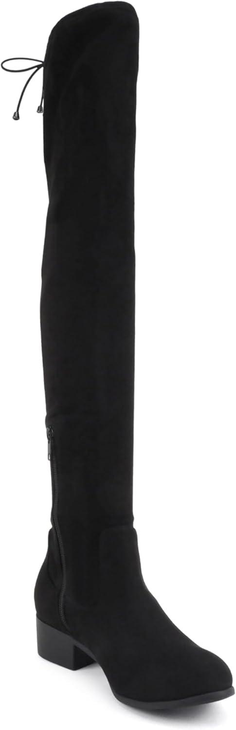 Soda Luna ~ Women Round Toe Drawstring Low Heel Over the Knee Boots(Black Imsu)