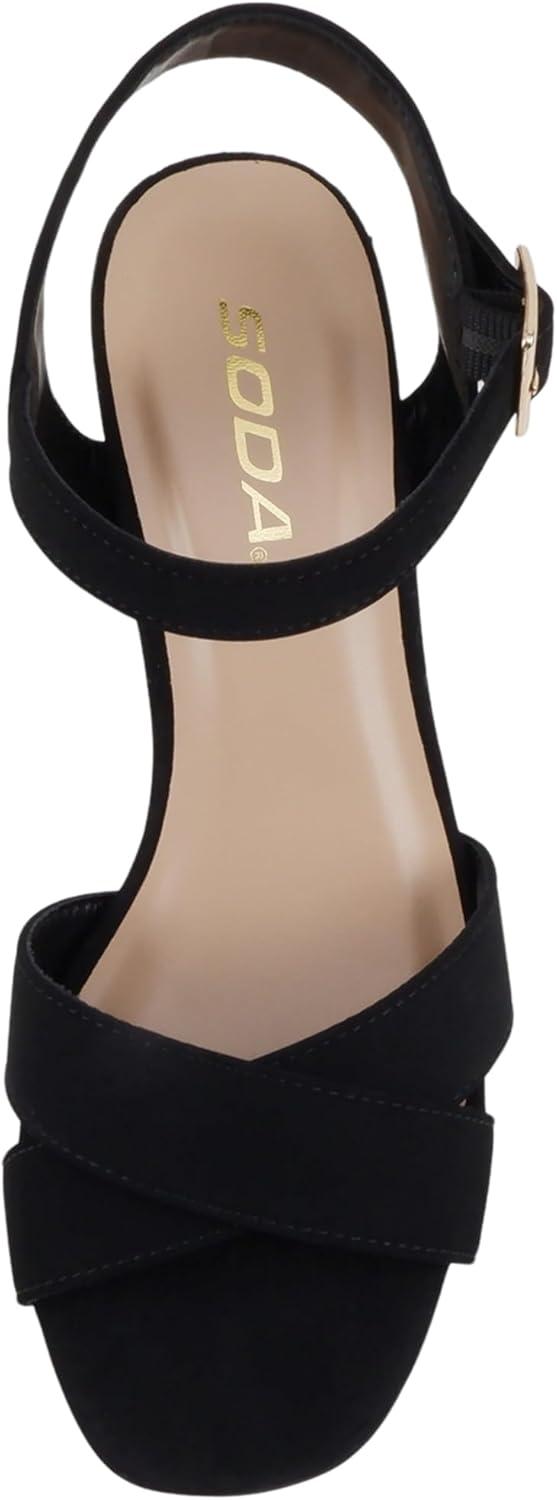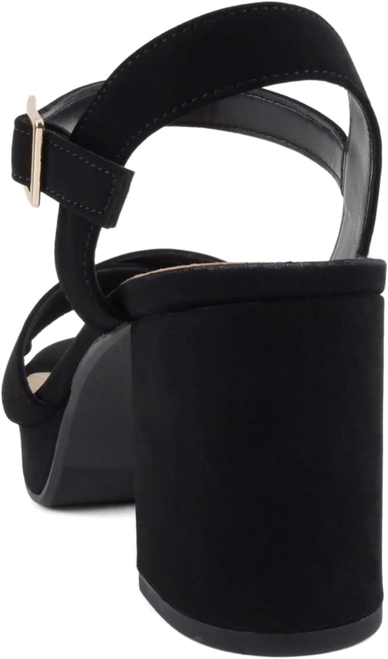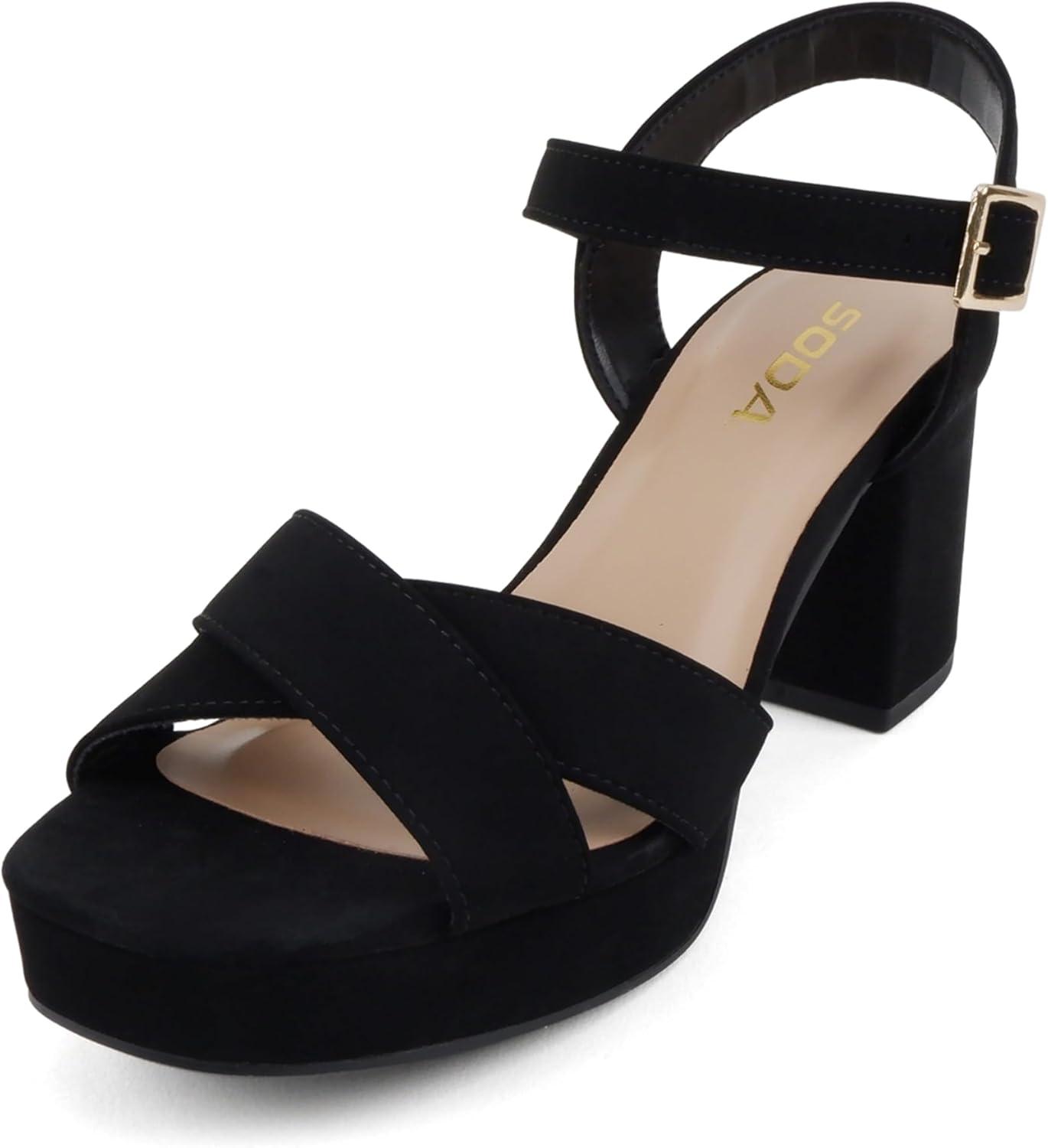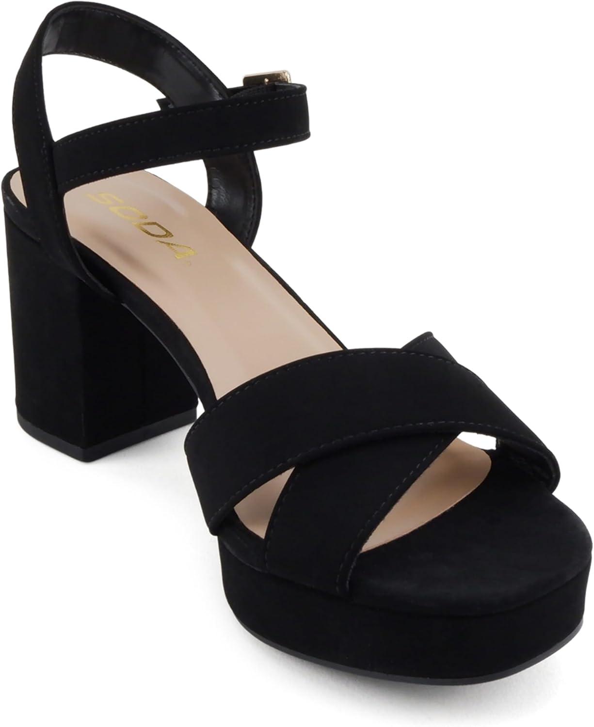 Soda “Manner” ~ Women Square Toe Cross Band Platform High Heeled Dress Sandals(Black Nubuck)