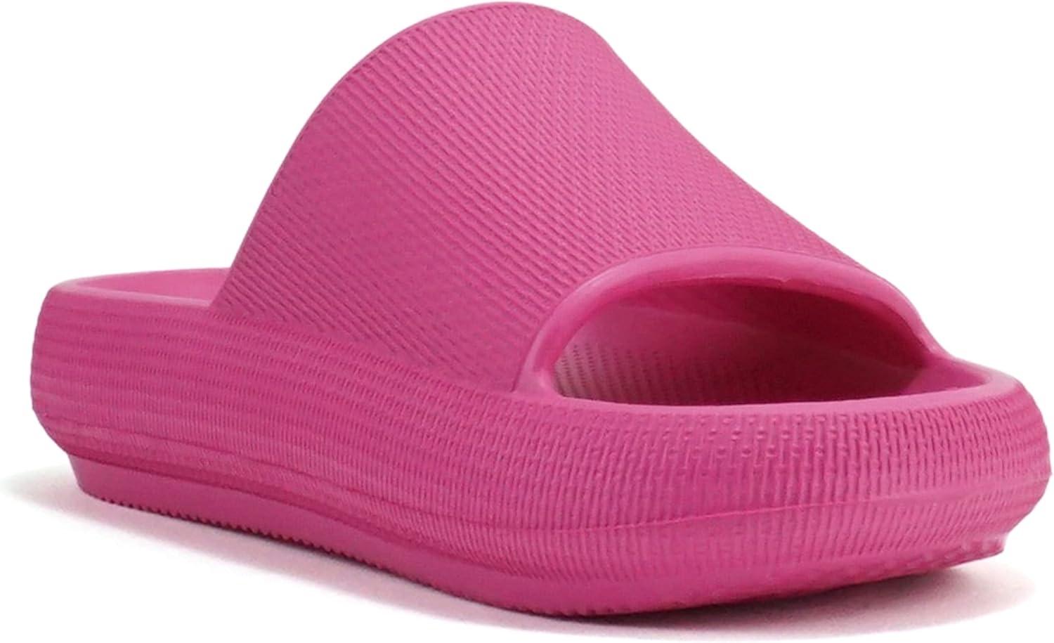 Soda “MARSHMALLOW” ~ Women Feather Recovery Slide Open Toe Lightweight Comfort Cushion Sandal(Hot Pink Eva)