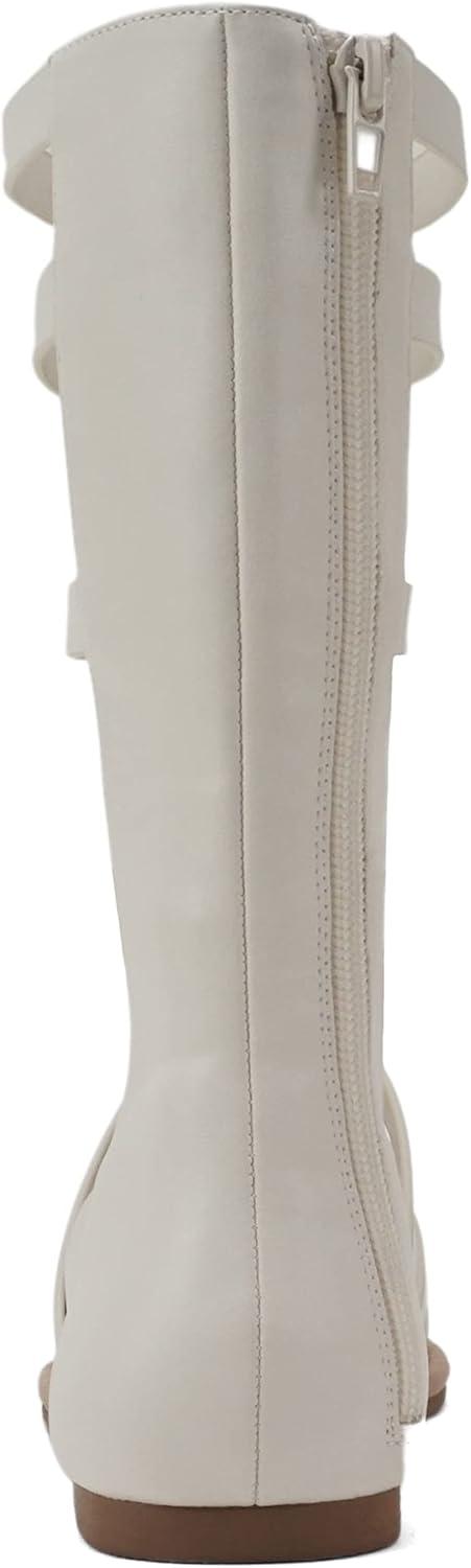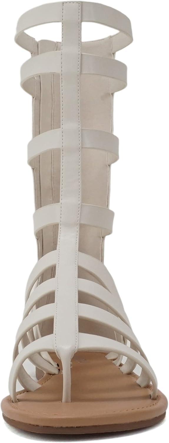 Soda MOXIE ~ Women Open Round Toe Mid-Calf Height Flat Gladiator Sandal(Bone Pu)