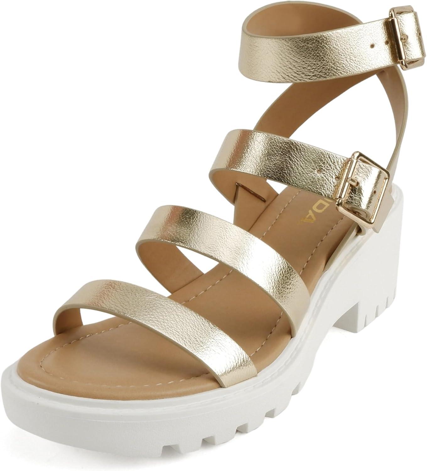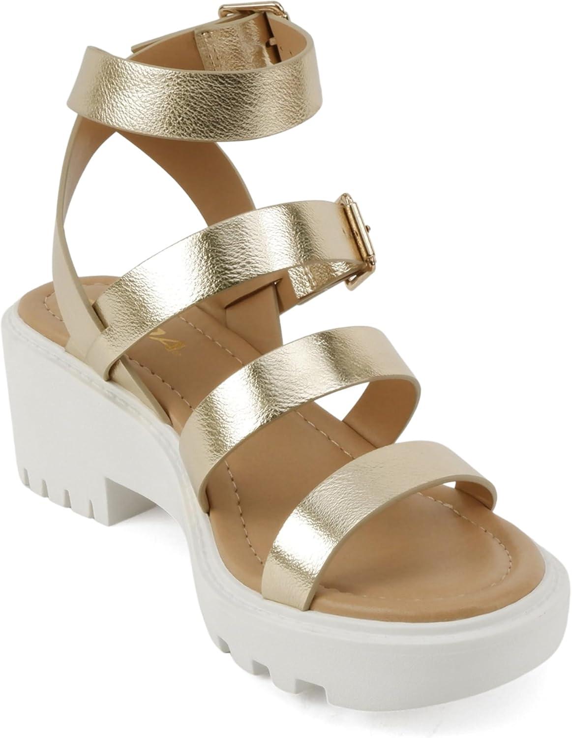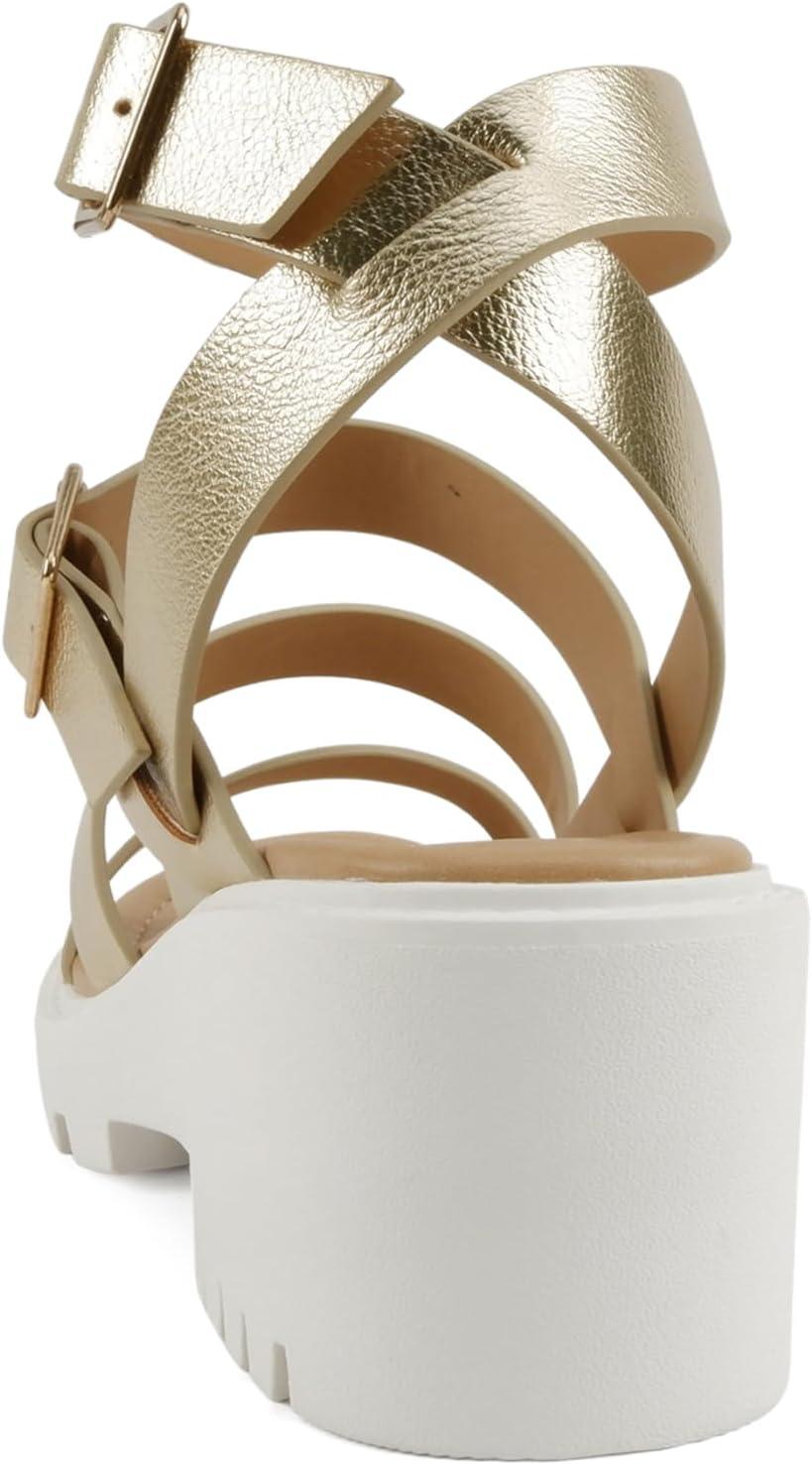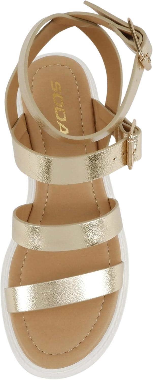 Soda Napoli ~ Women Round Toe Lug Sole Gladiator Wedge Sandal(Gold Pu)