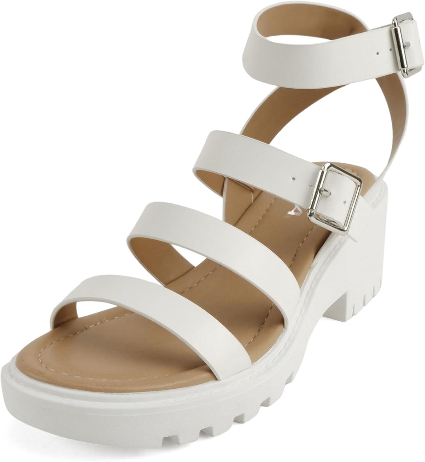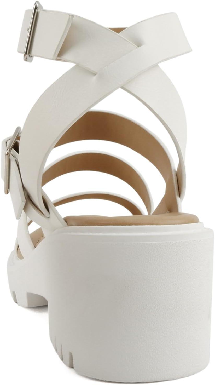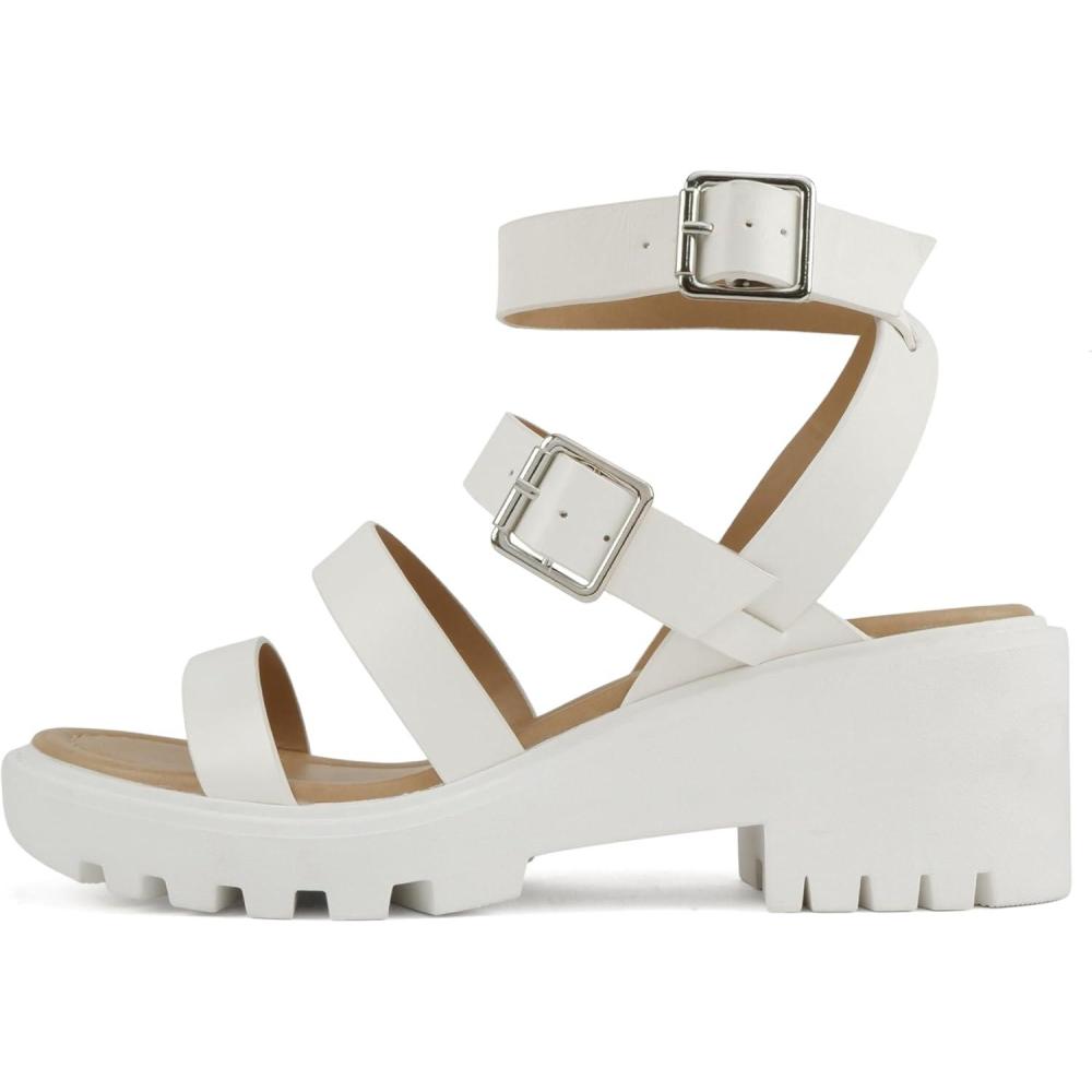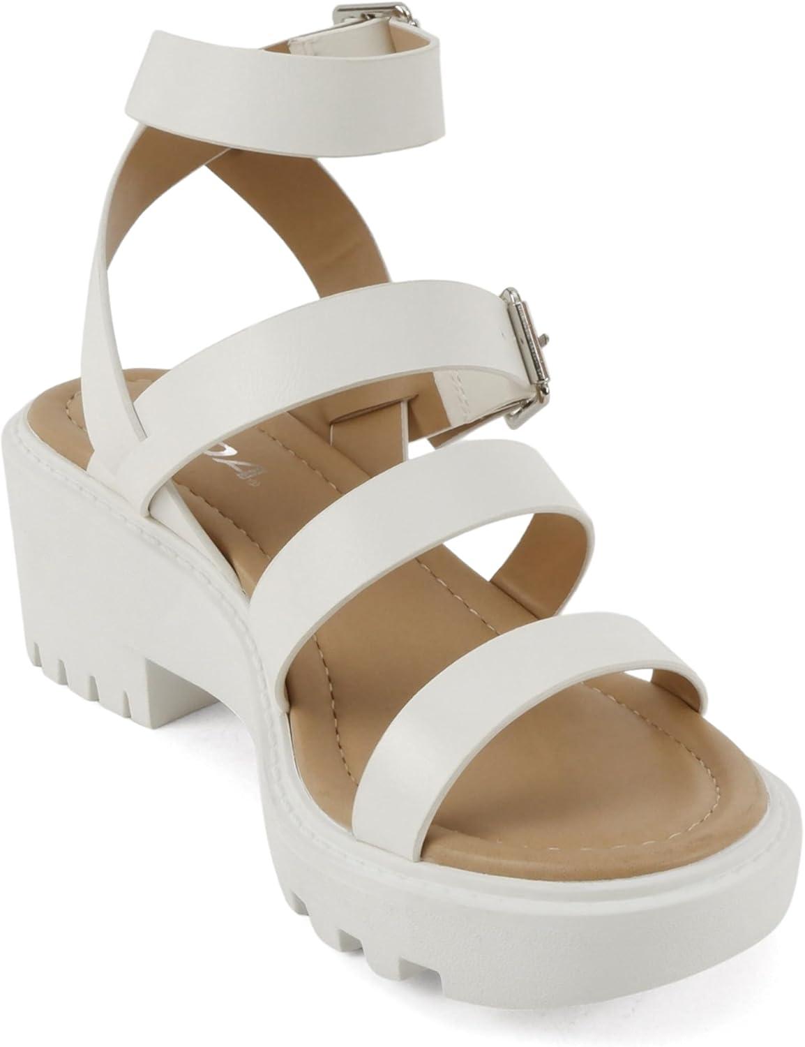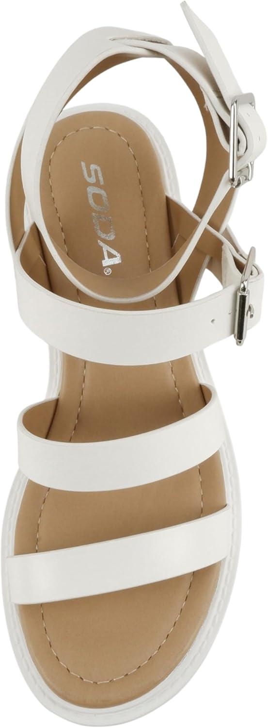 Soda Napoli ~ Women Round Toe Lug Sole Gladiator Wedge Sandal(White Pu)