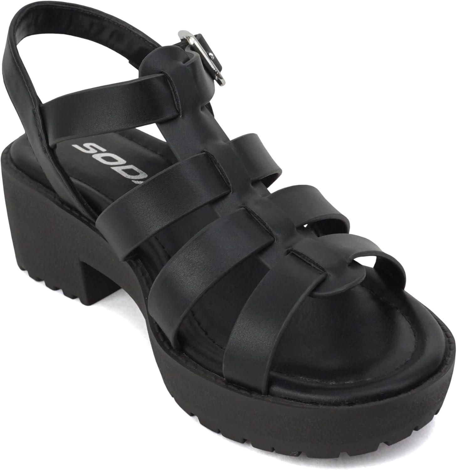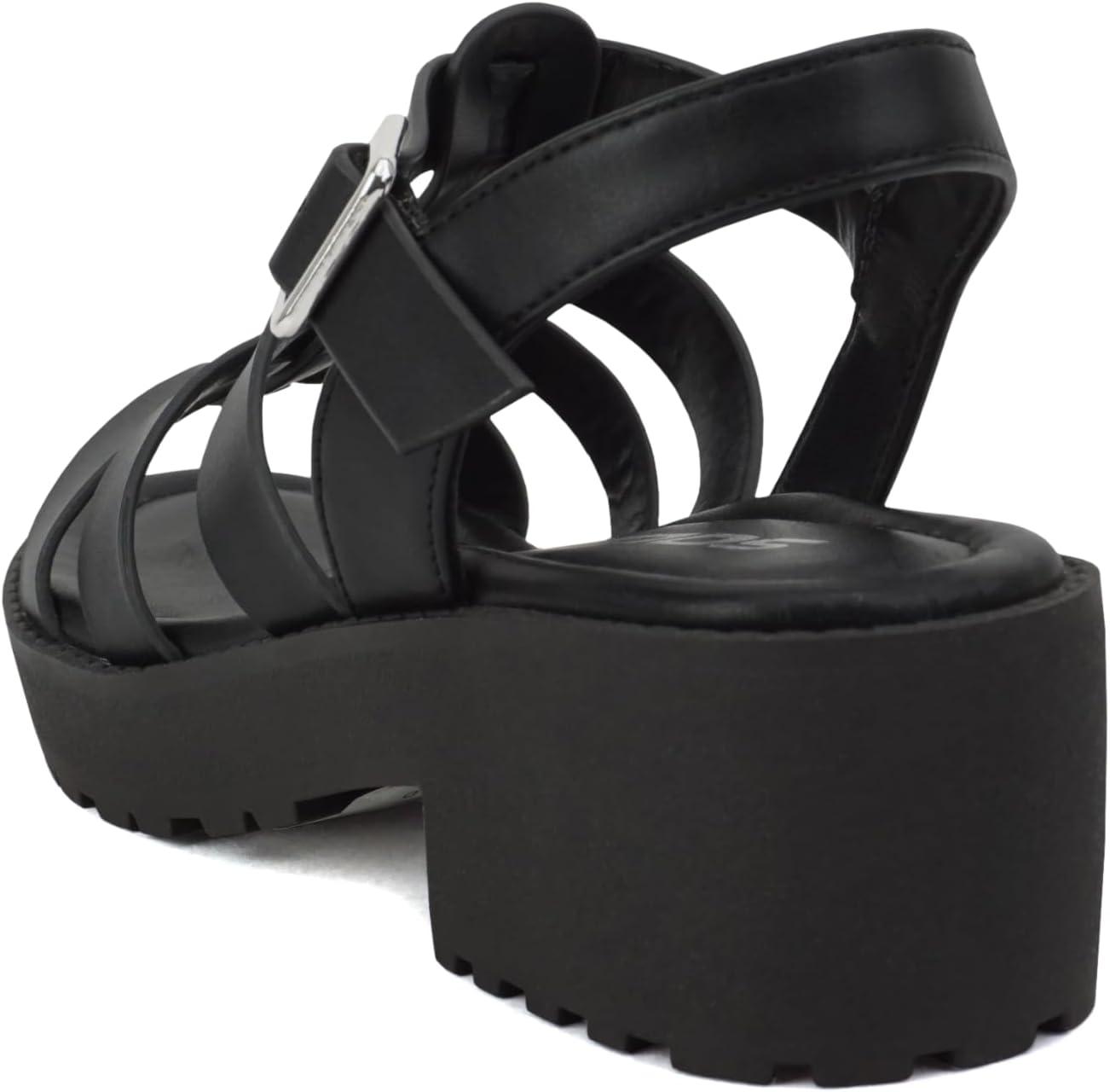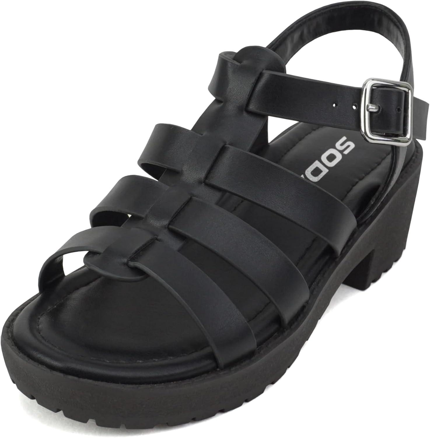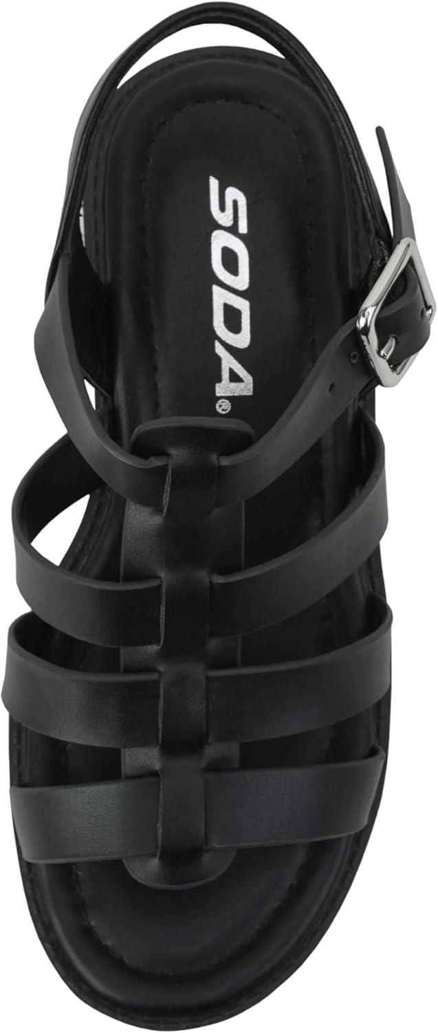 Soda “NEOLA-2” ~ Little Kids/Children/Girls Open Toe Ankle Strap Low Heel Lug Sole Fisherman Sandal(Black Pu)