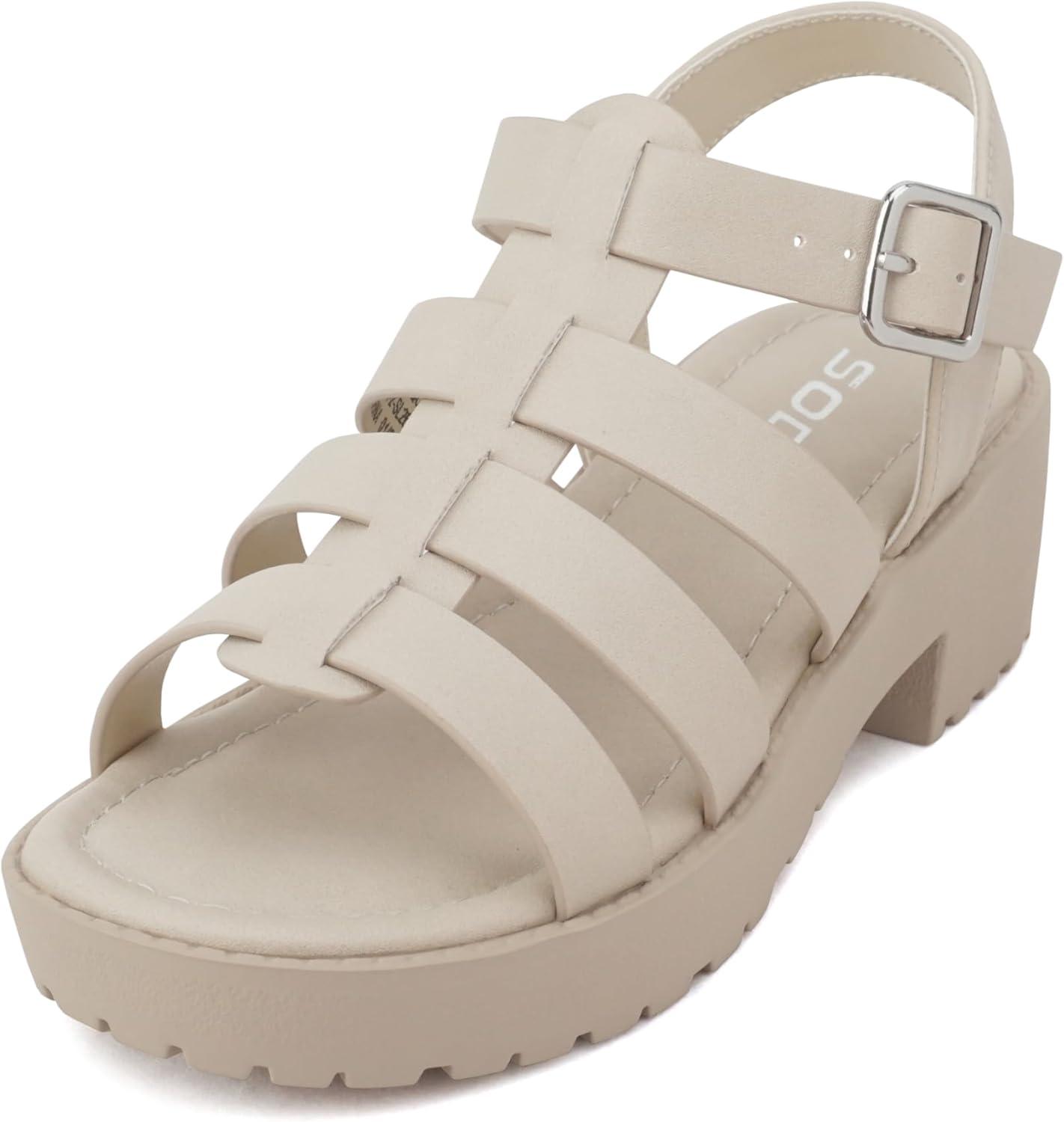 Soda “NEOLA-2” ~ Little Kids/Children/Girls Open Toe Ankle Strap Low Heel Lug Sole Fisherman Sandal(Dk Nude Pu)