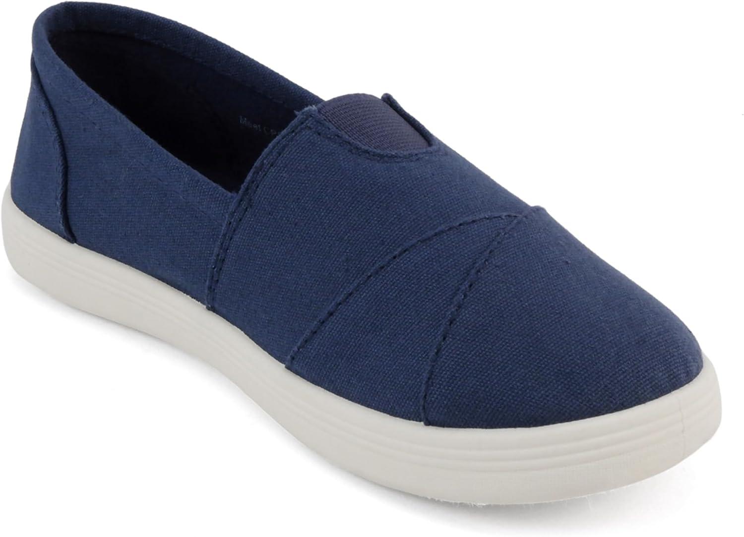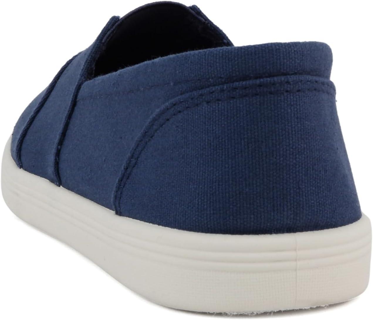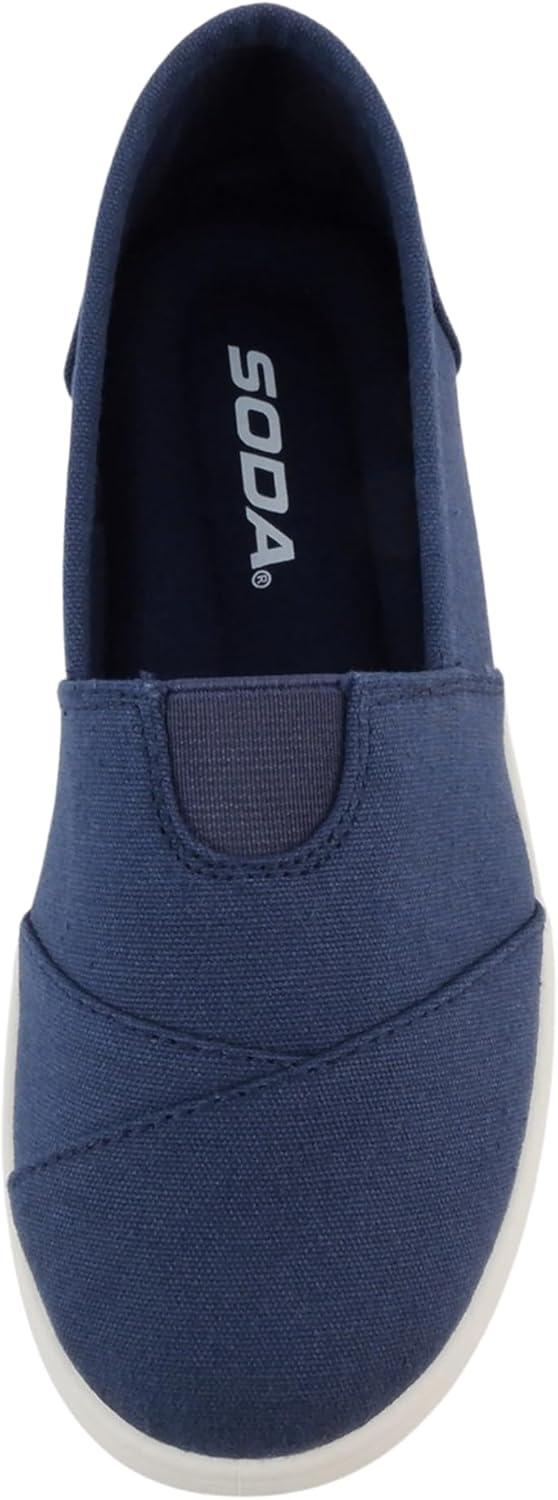 Soda Obji-2 ~ Kids/Girls Round Toe Slip-On Flat Shoes with Padded Insole(Navy Cot)