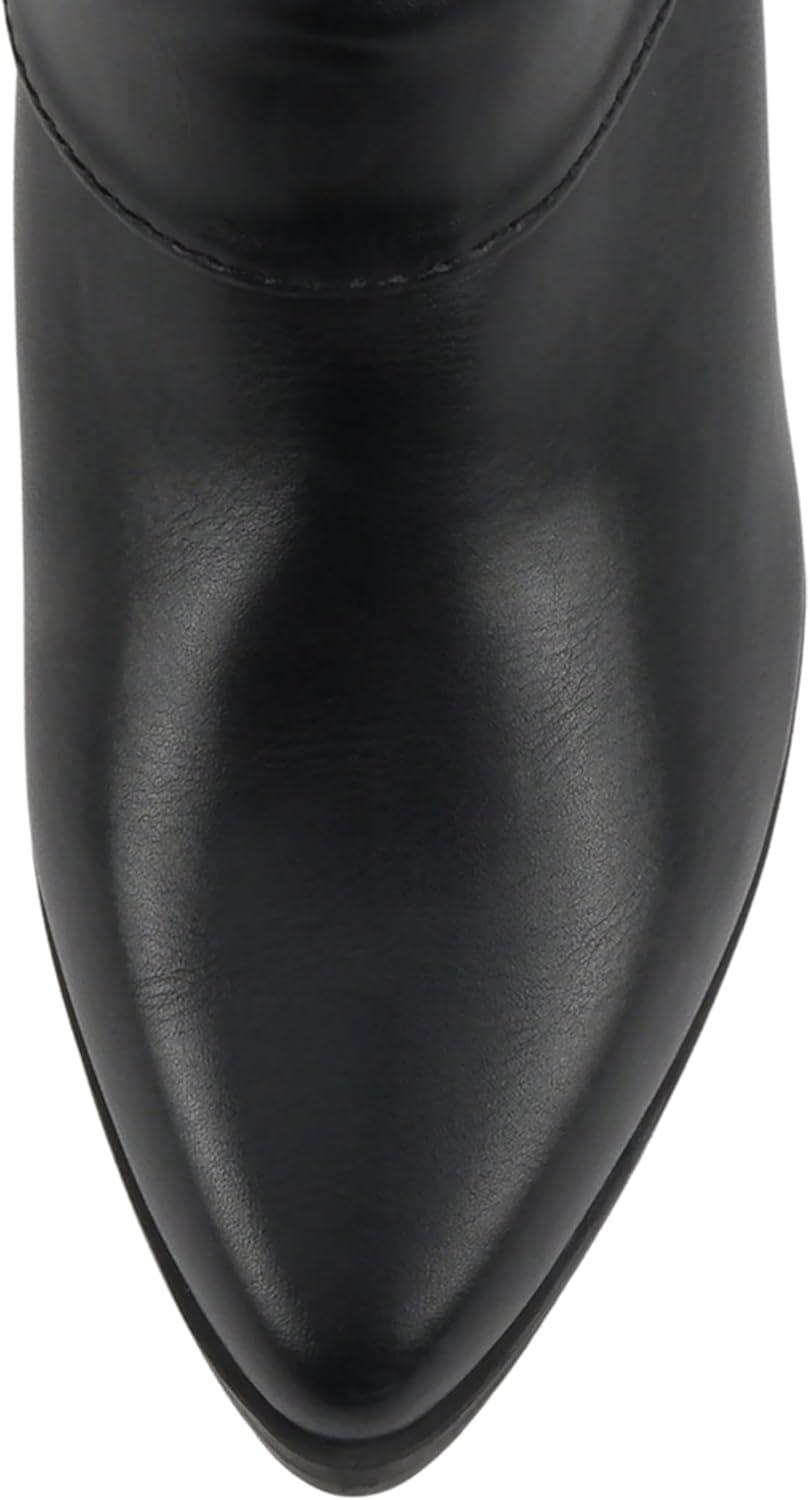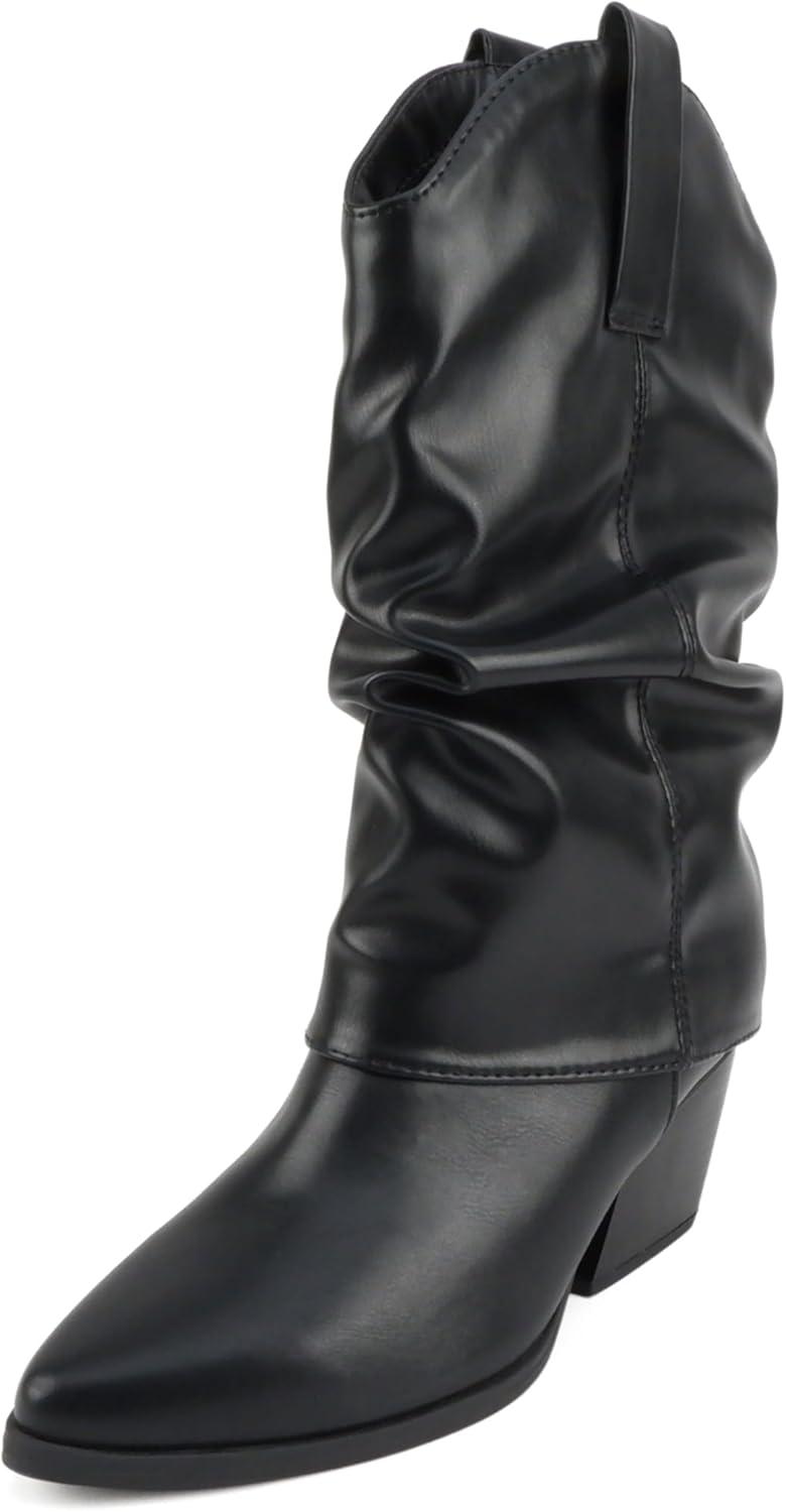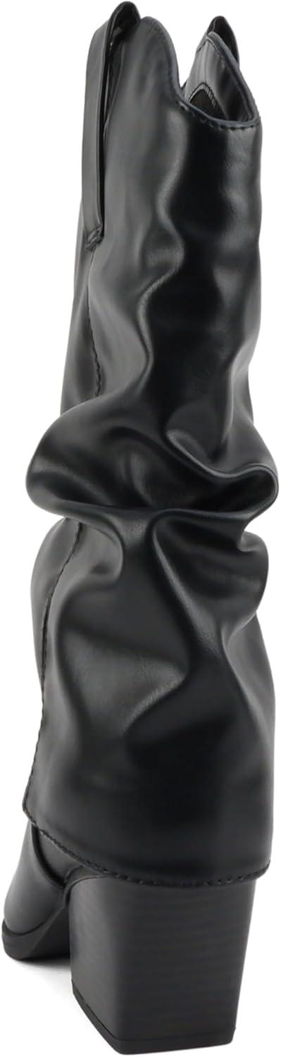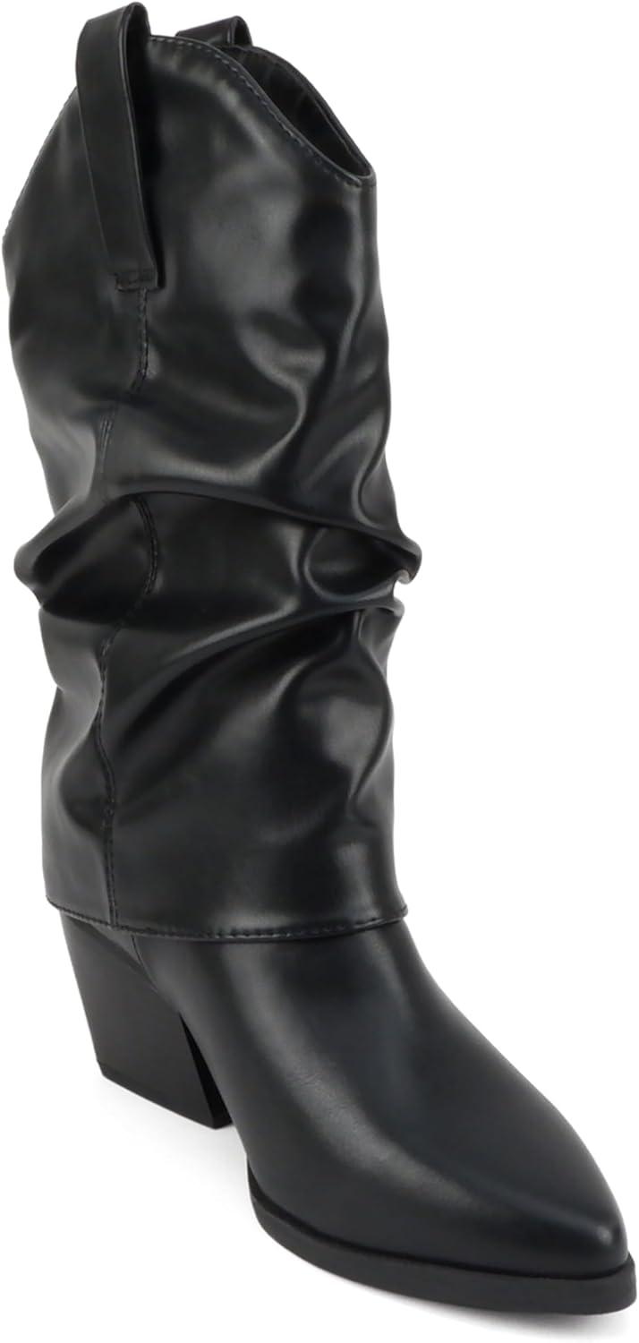Soda “Otter” ~ Women Pointed Toe Low Heel Mid Calf Slouchy Boots(Black Pu)