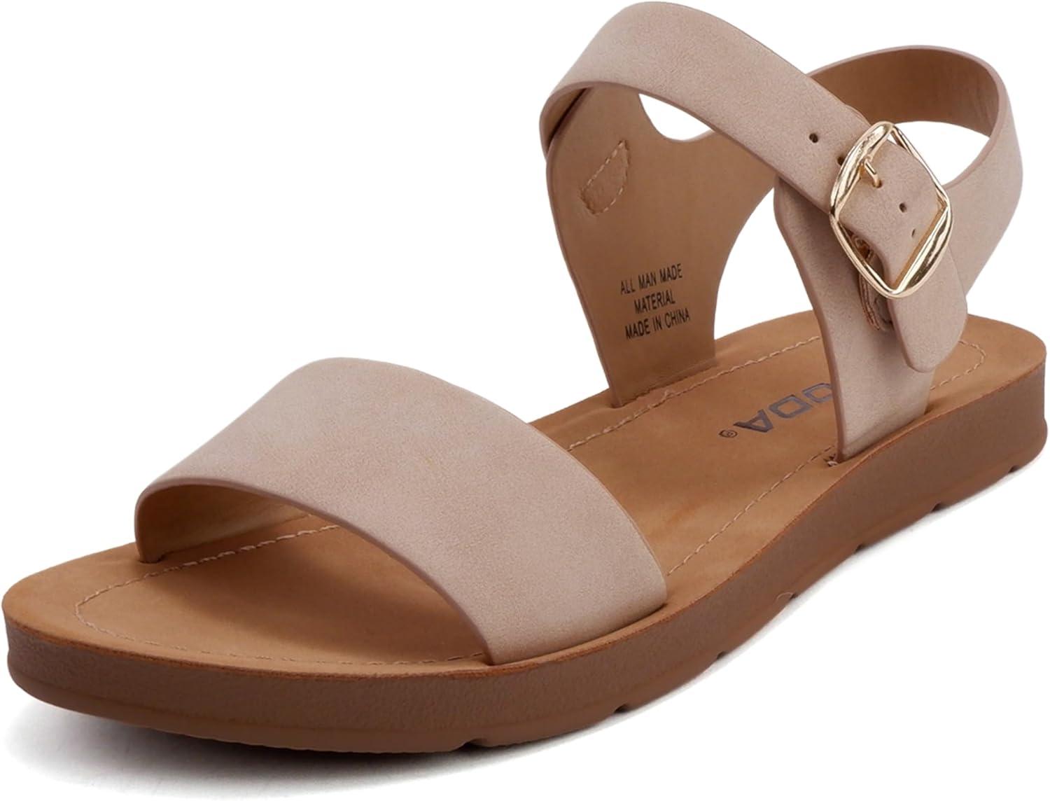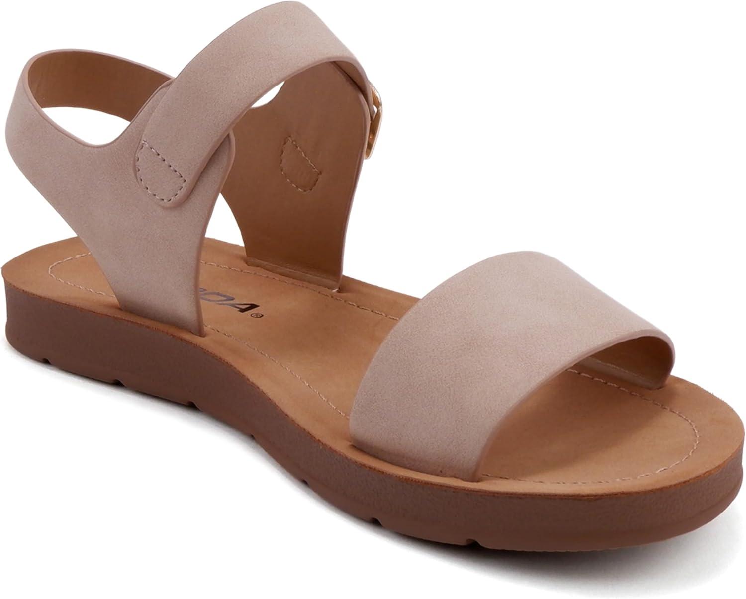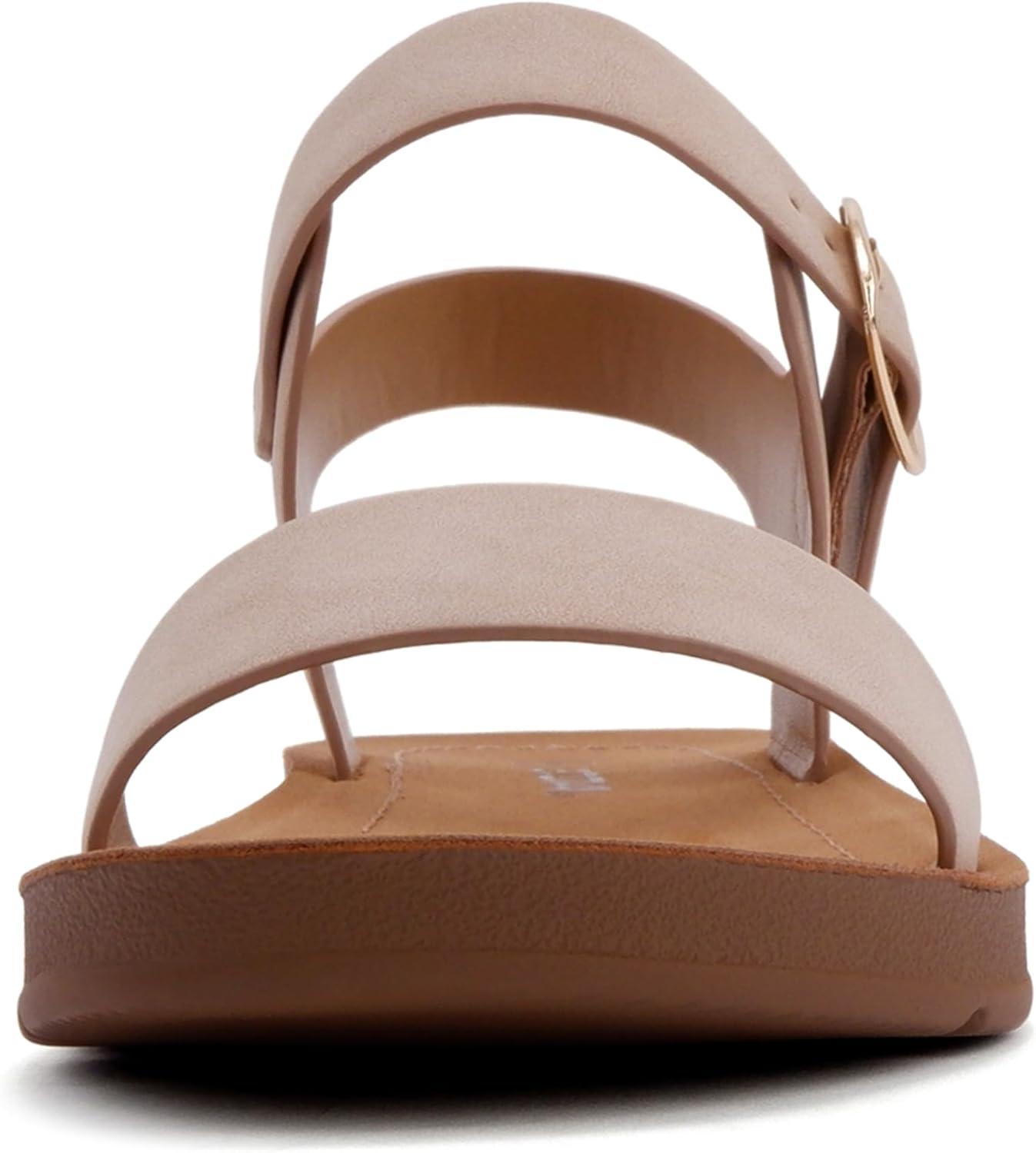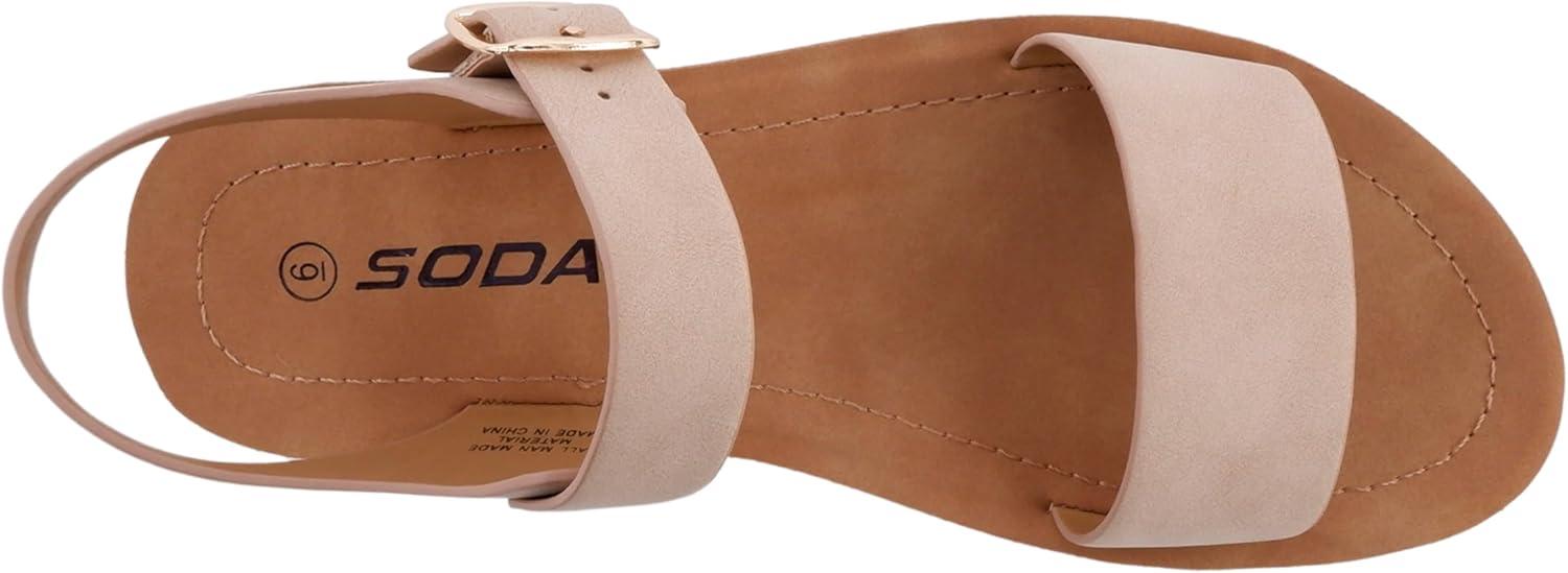 Soda PLENTY ~ Women’s Strappy Ankle Wrap Buckle Fashion Flat Sandals(Blush Nubuck)