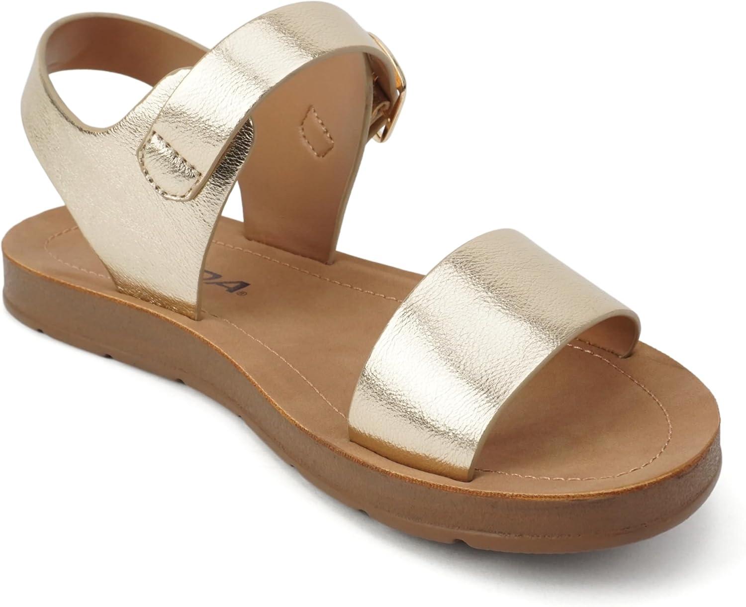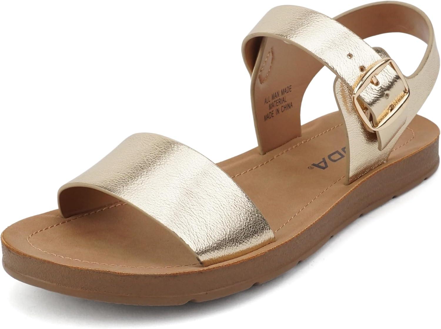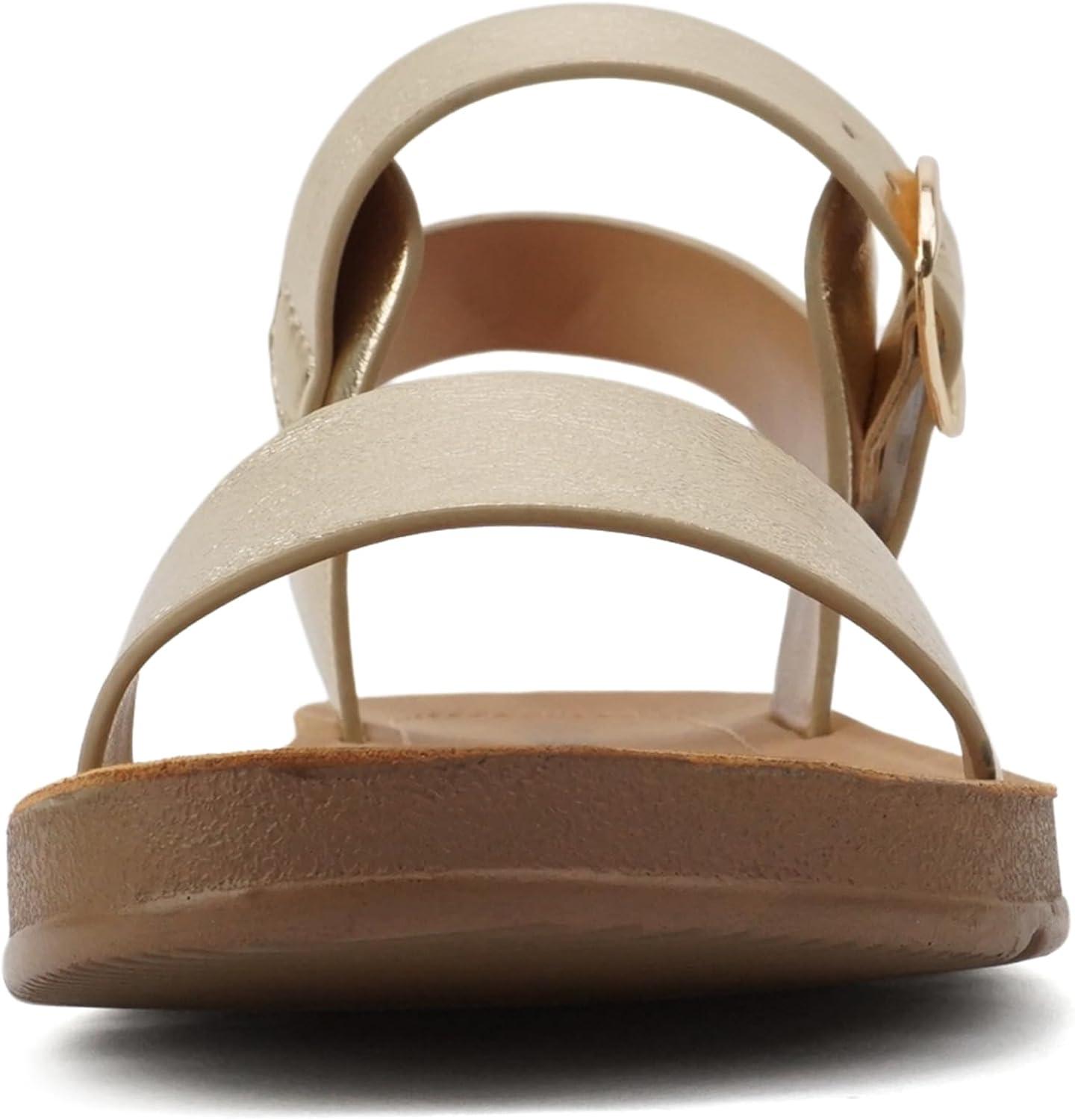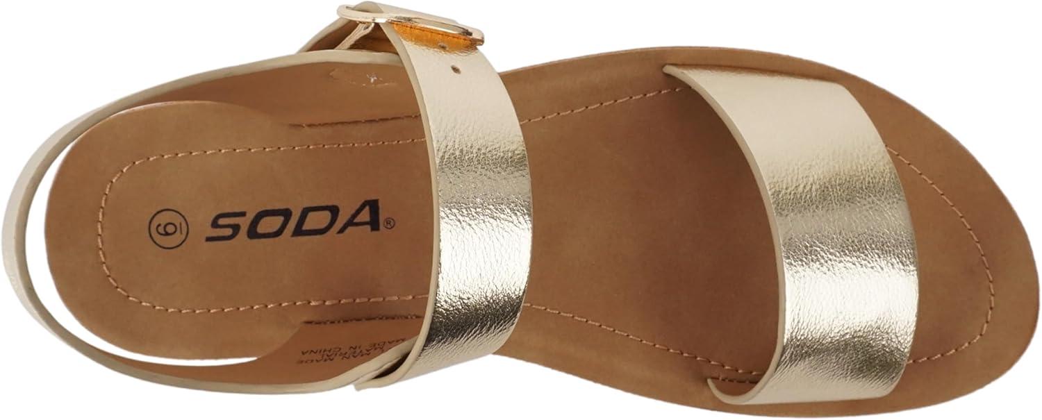 Soda PLENTY ~ Women’s Strappy Ankle Wrap Buckle Fashion Flat Sandals(Gold)