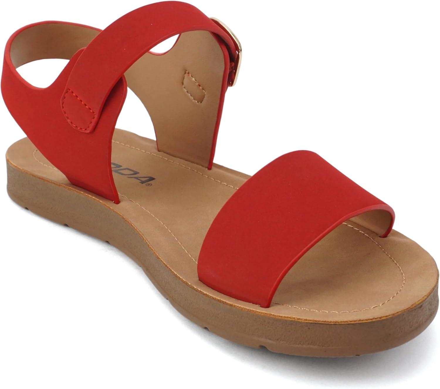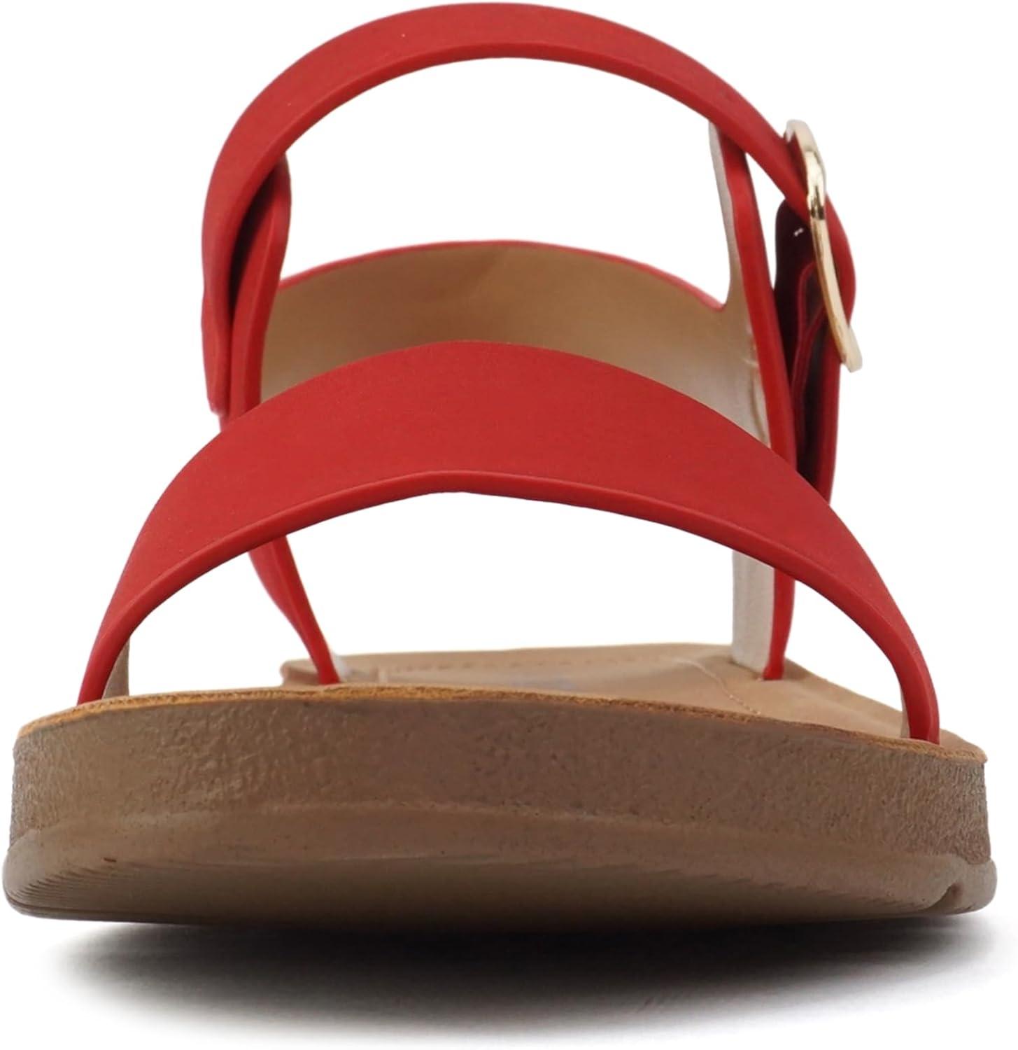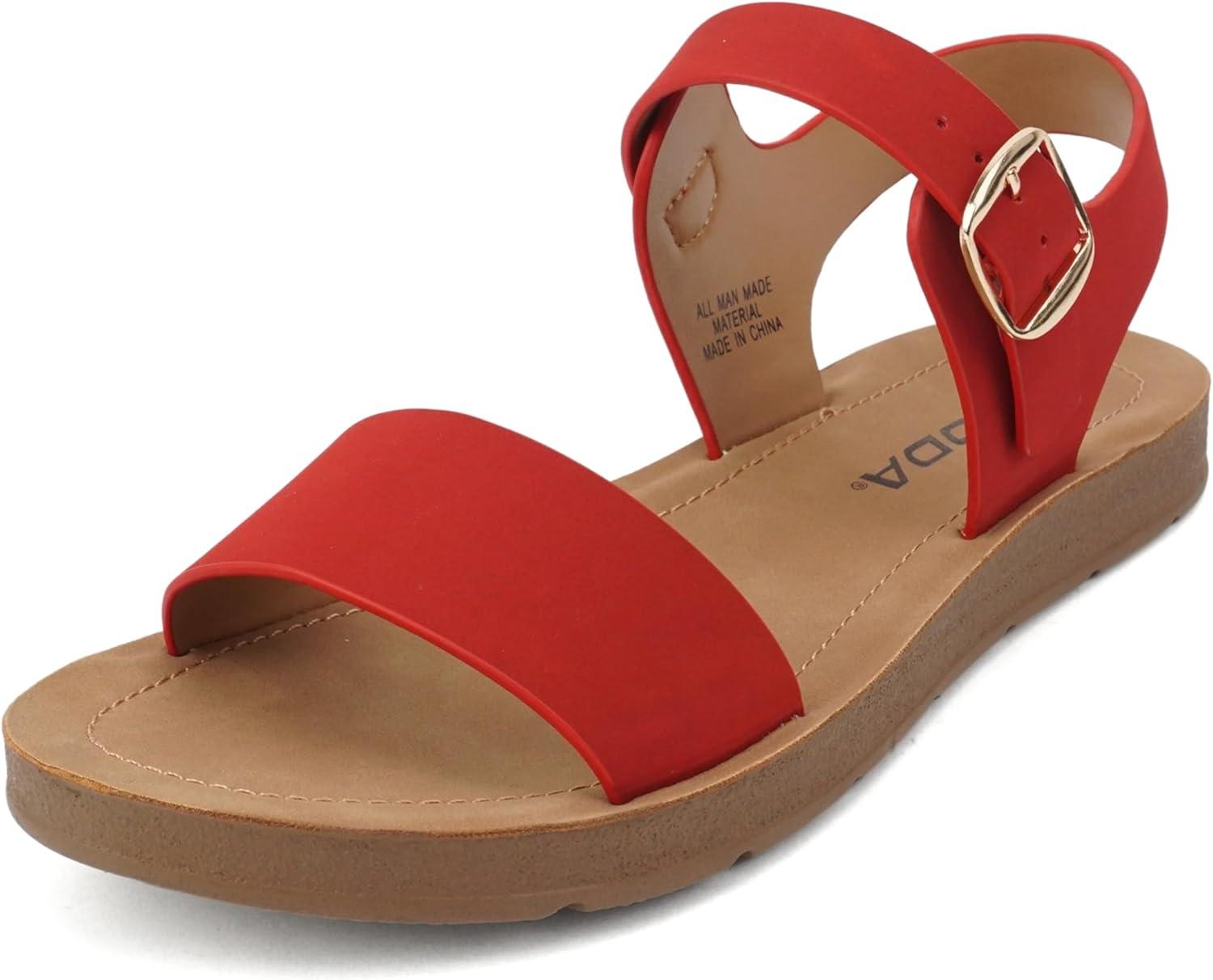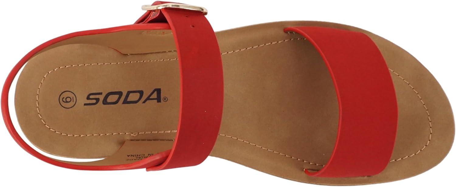 Soda PLENTY ~ Women’s Strappy Ankle Wrap Buckle Fashion Flat Sandals(Lipstick Nubuck)