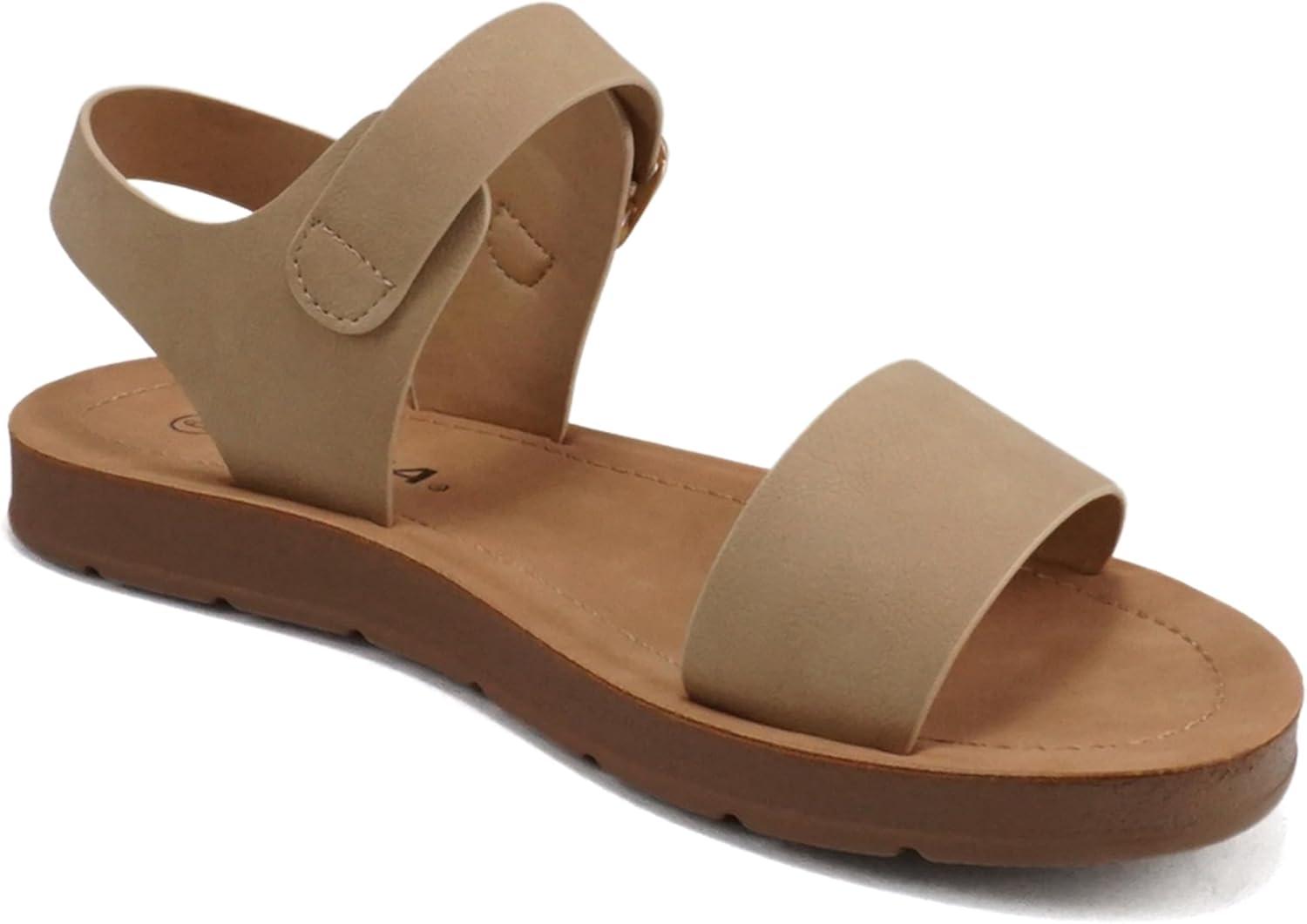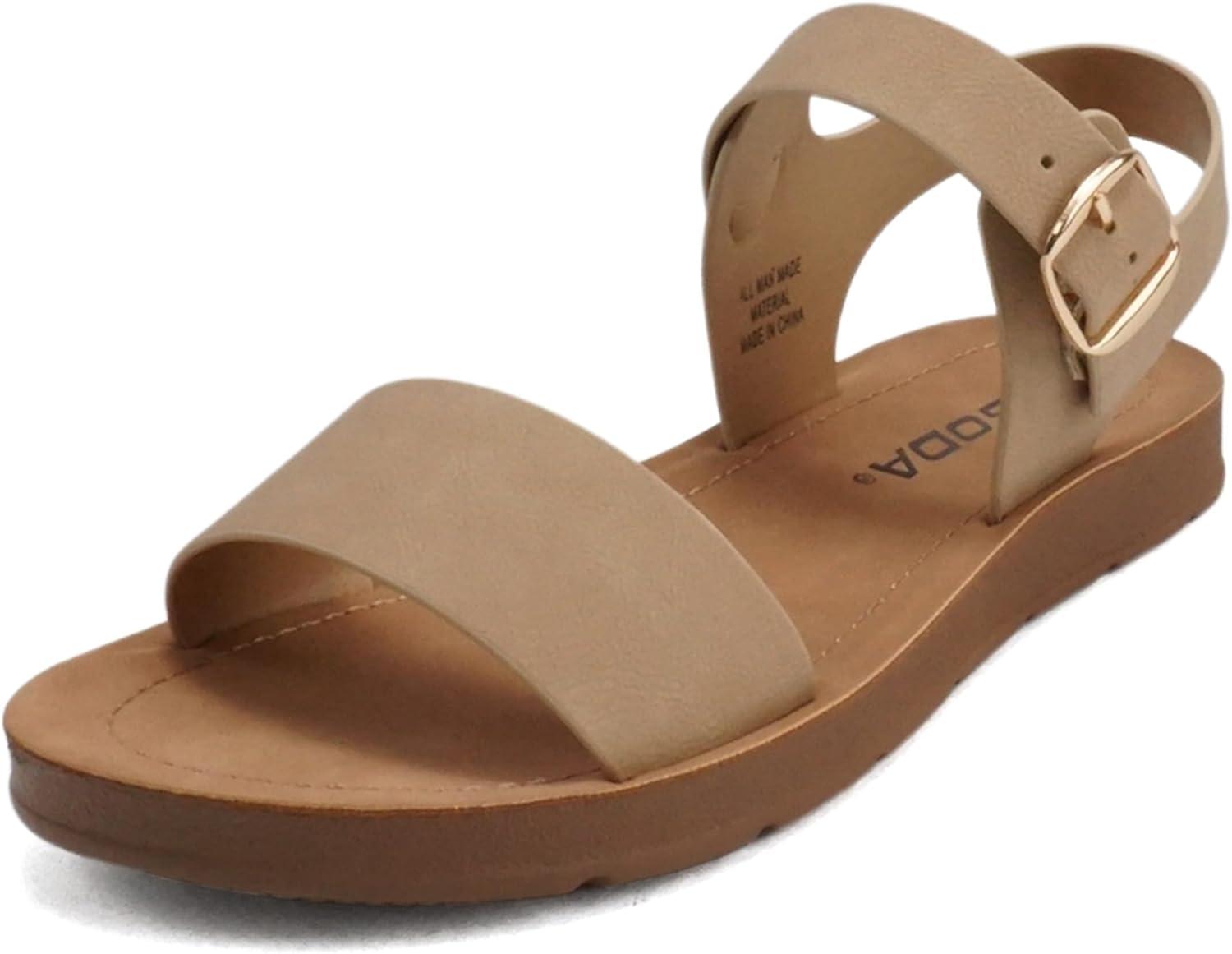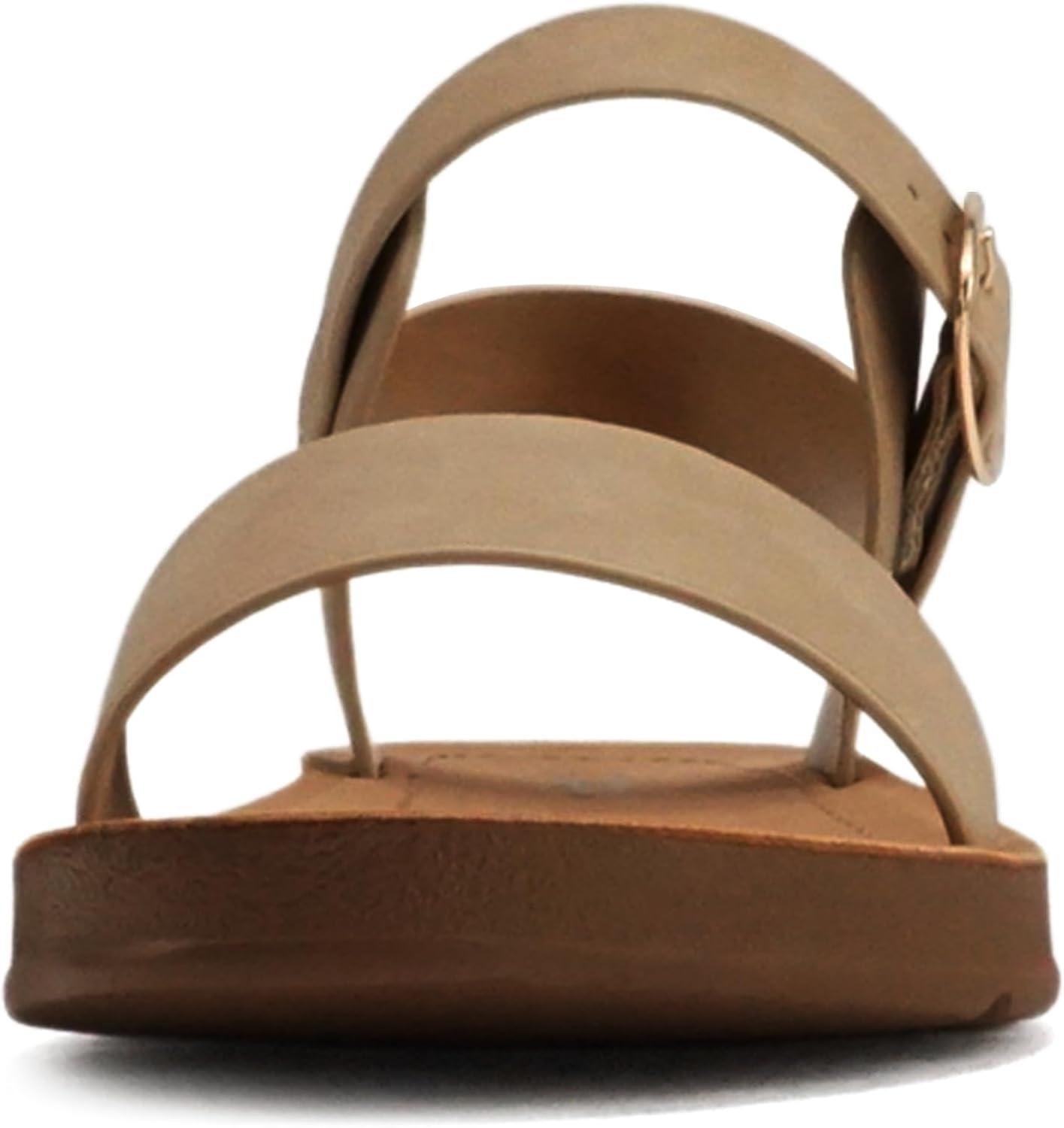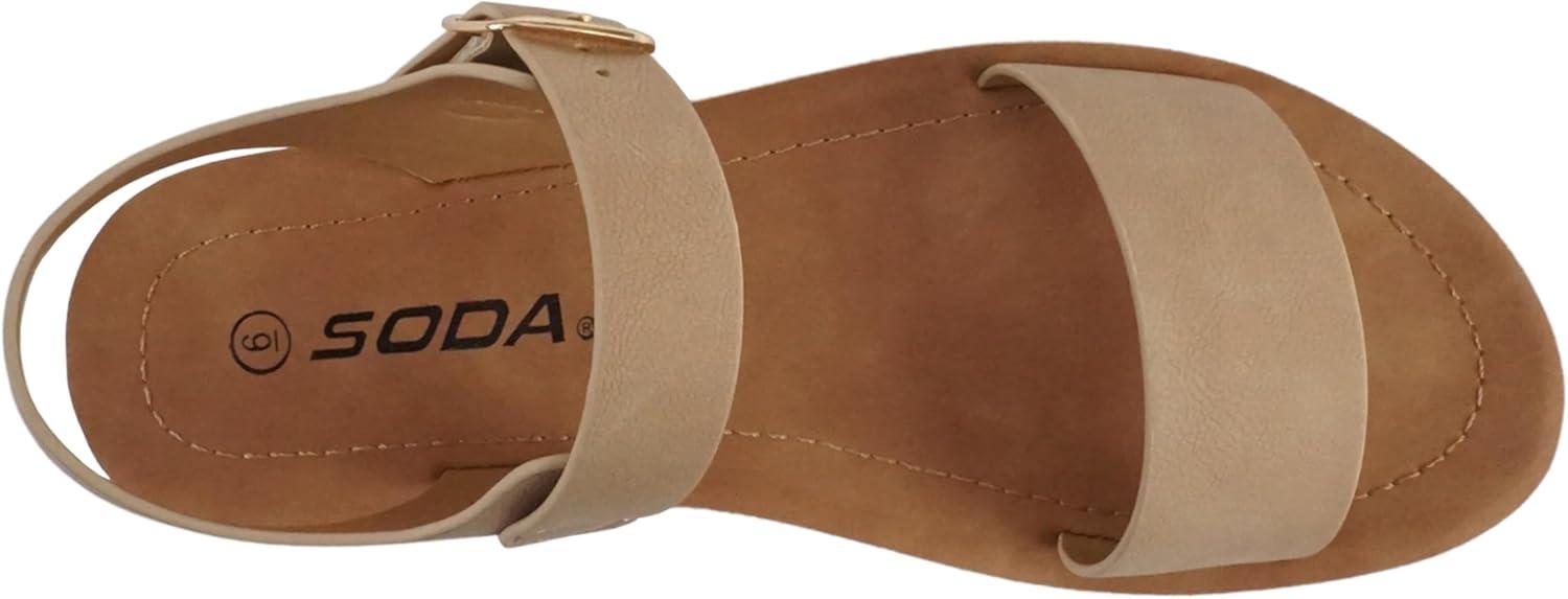 Soda PLENTY ~ Women’s Strappy Ankle Wrap Buckle Fashion Flat Sandals(Natural Nubuck)