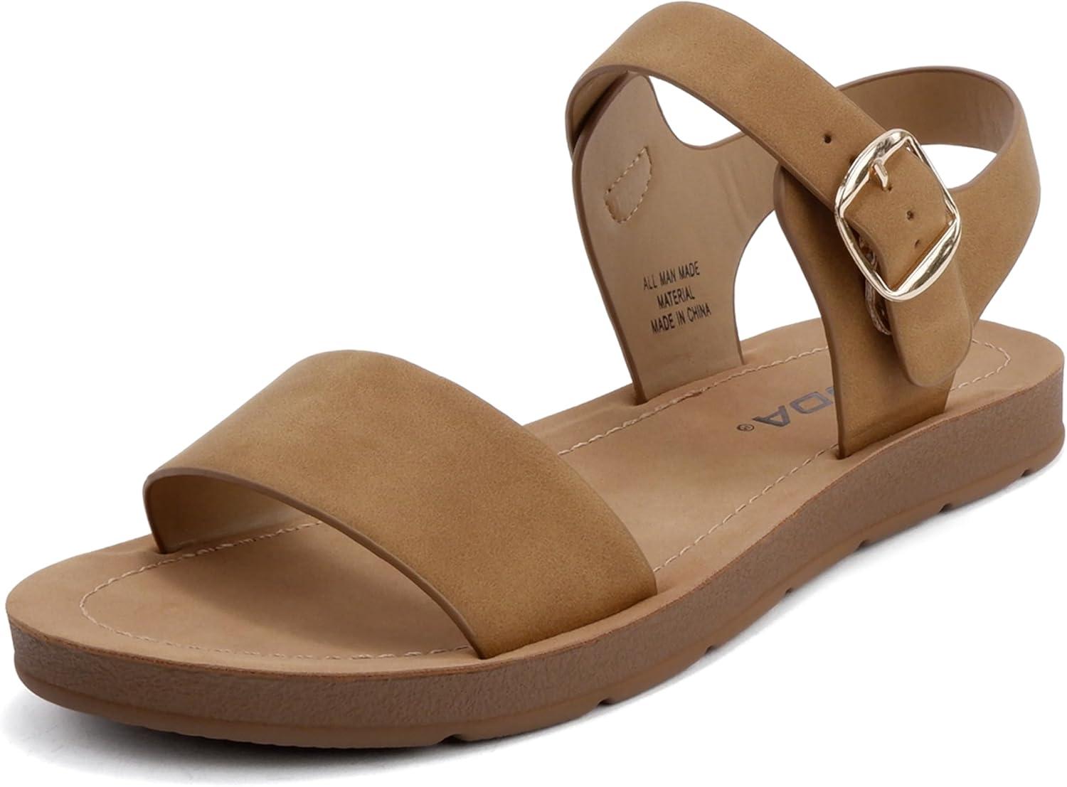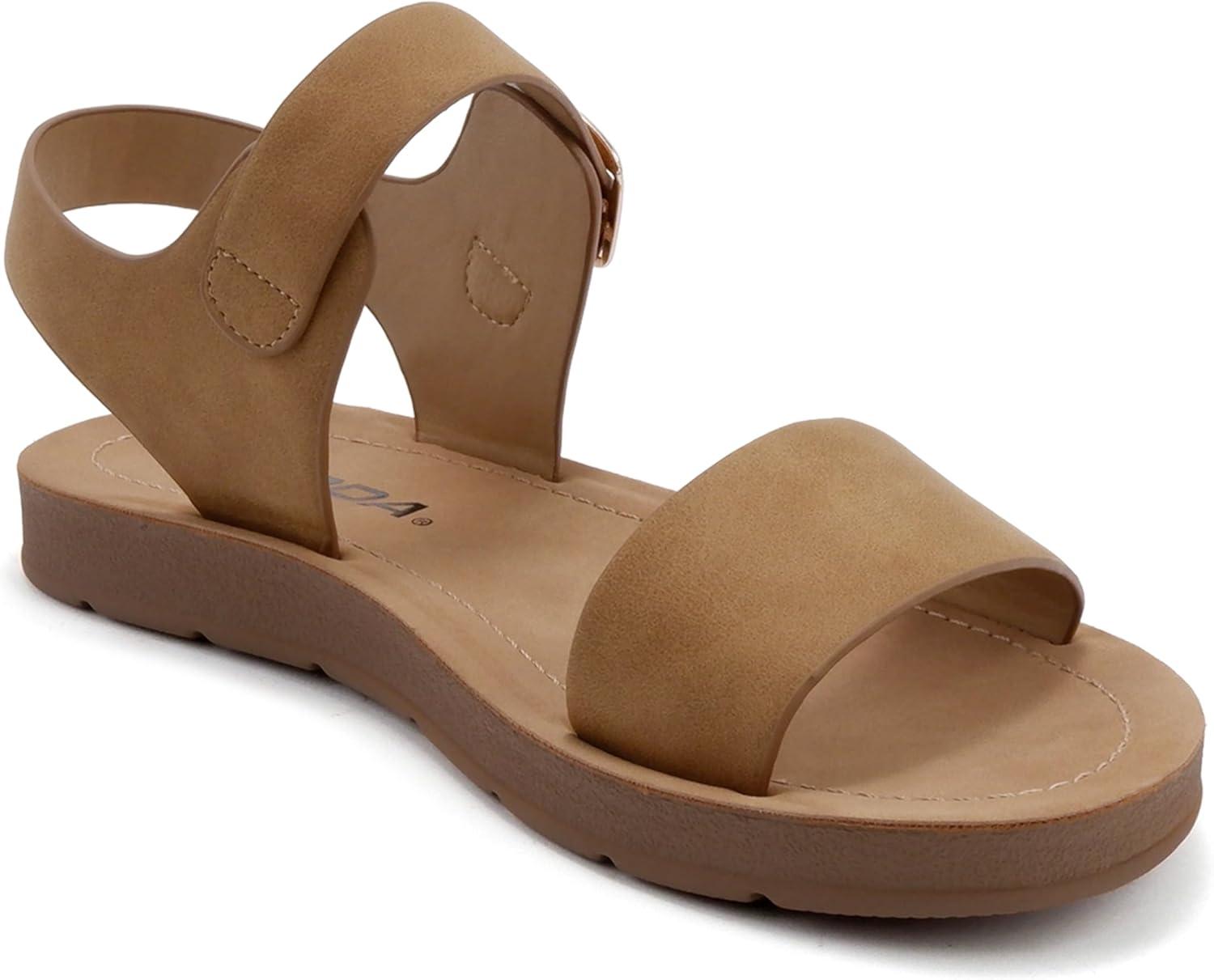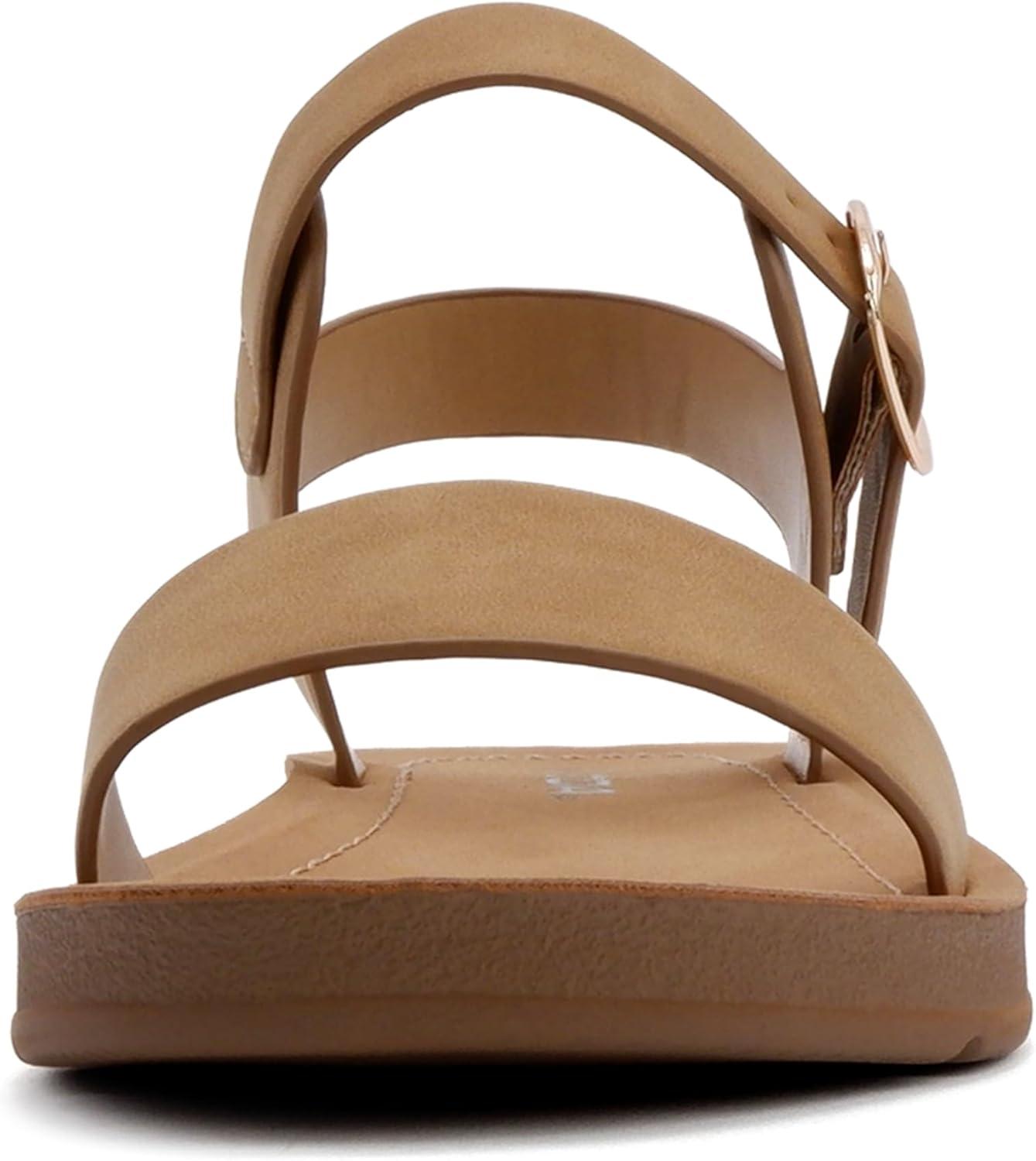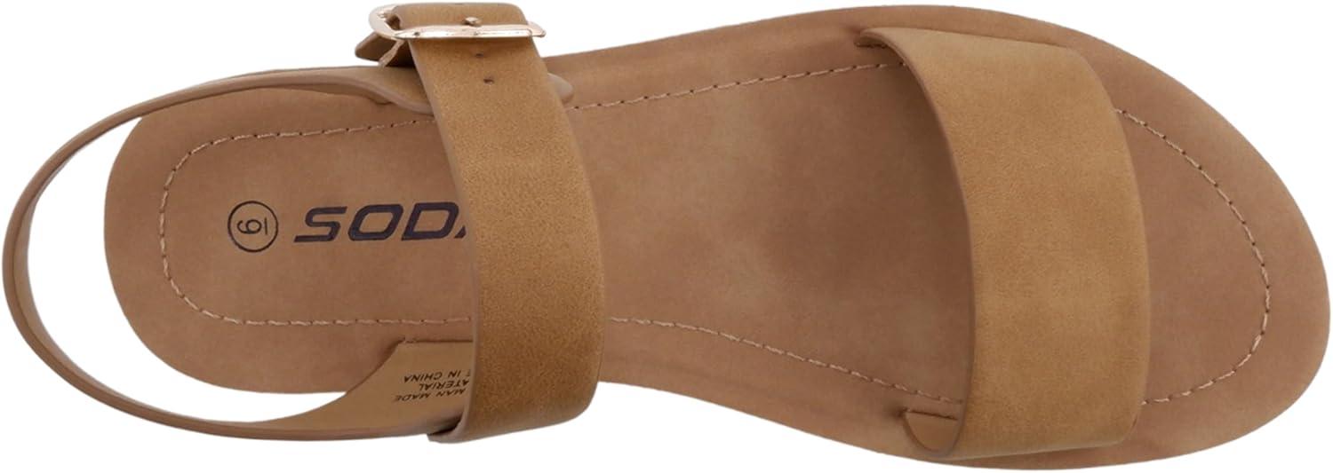 Soda PLENTY ~ Women’s Strappy Ankle Wrap Buckle Fashion Flat Sandals(Tan Nubuck)