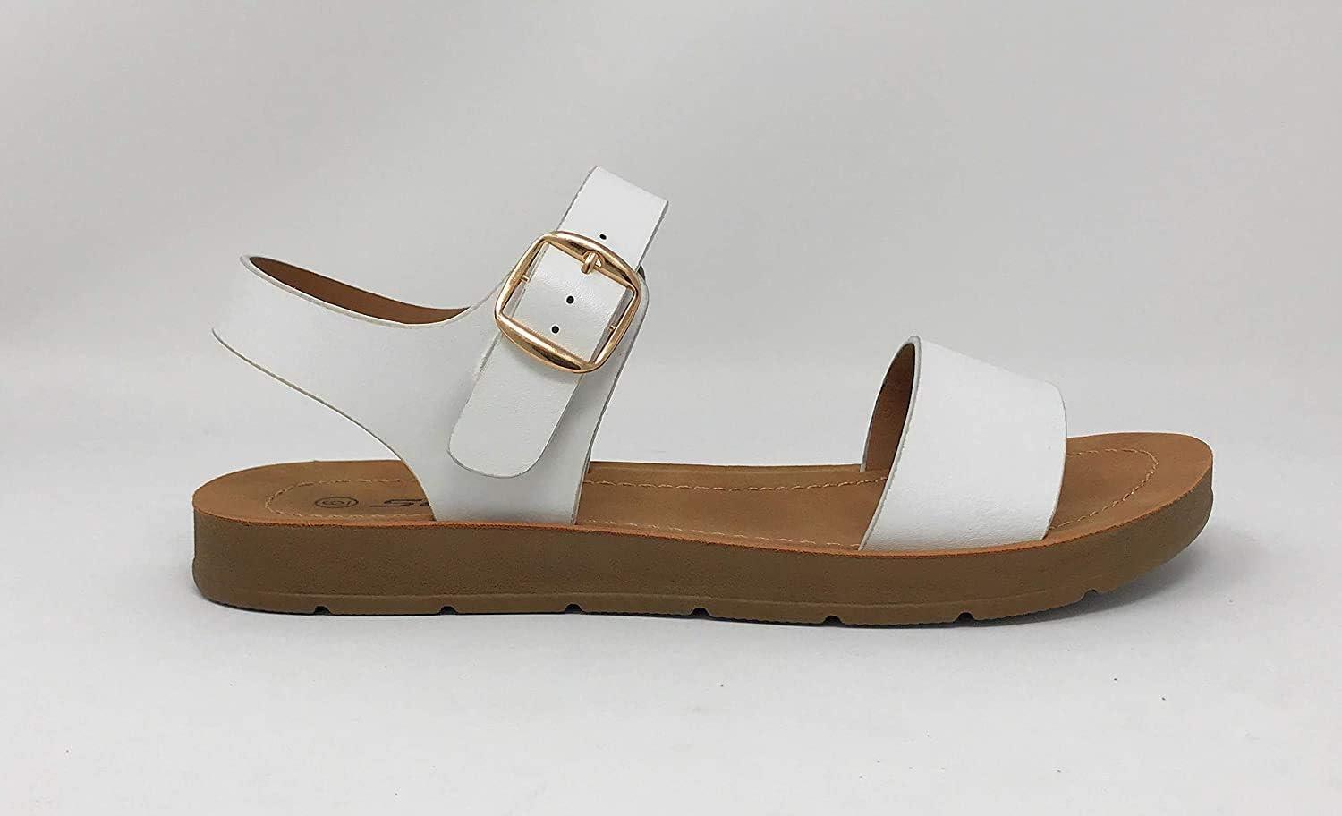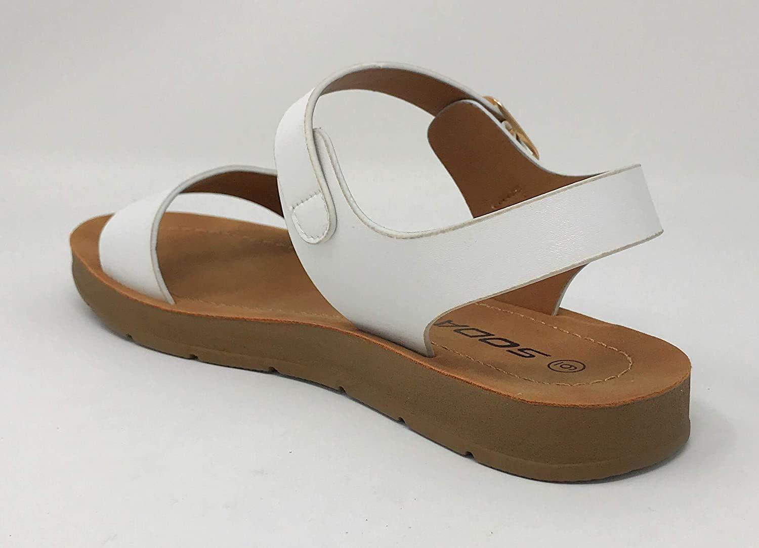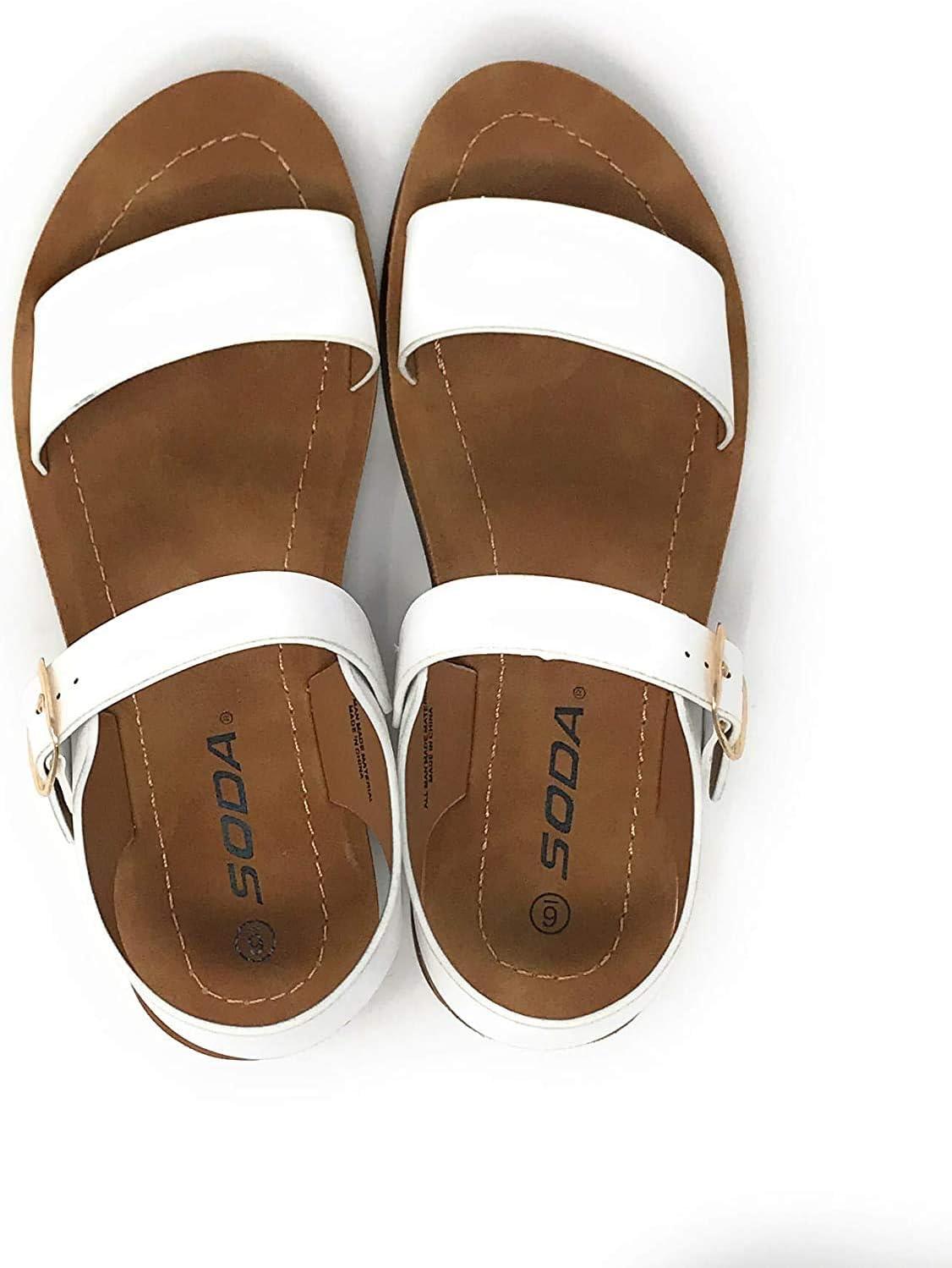 Soda PLENTY ~ Women’s Strappy Ankle Wrap Buckle Fashion Flat Sandals(White Jd)