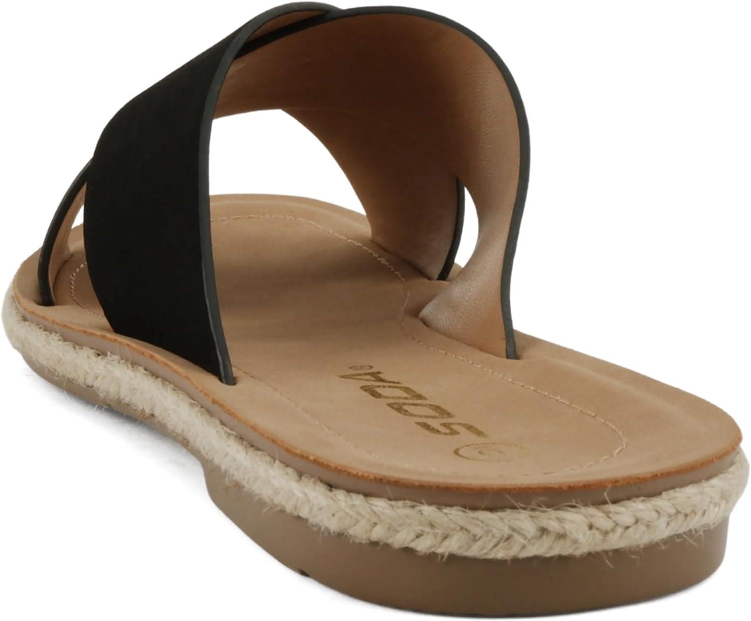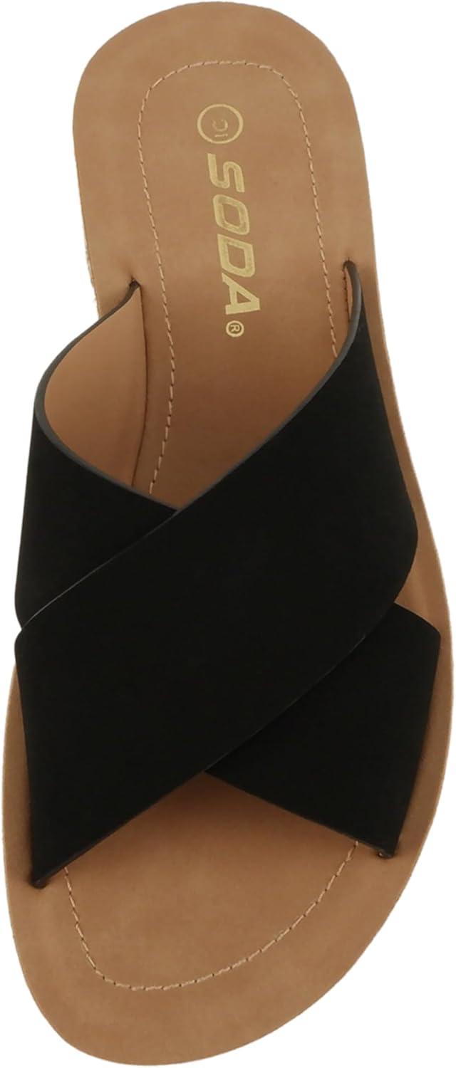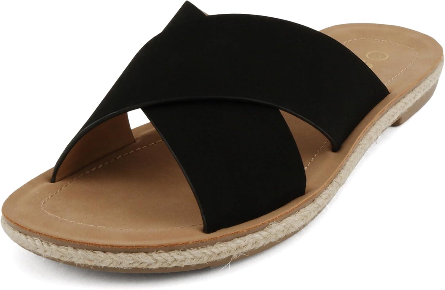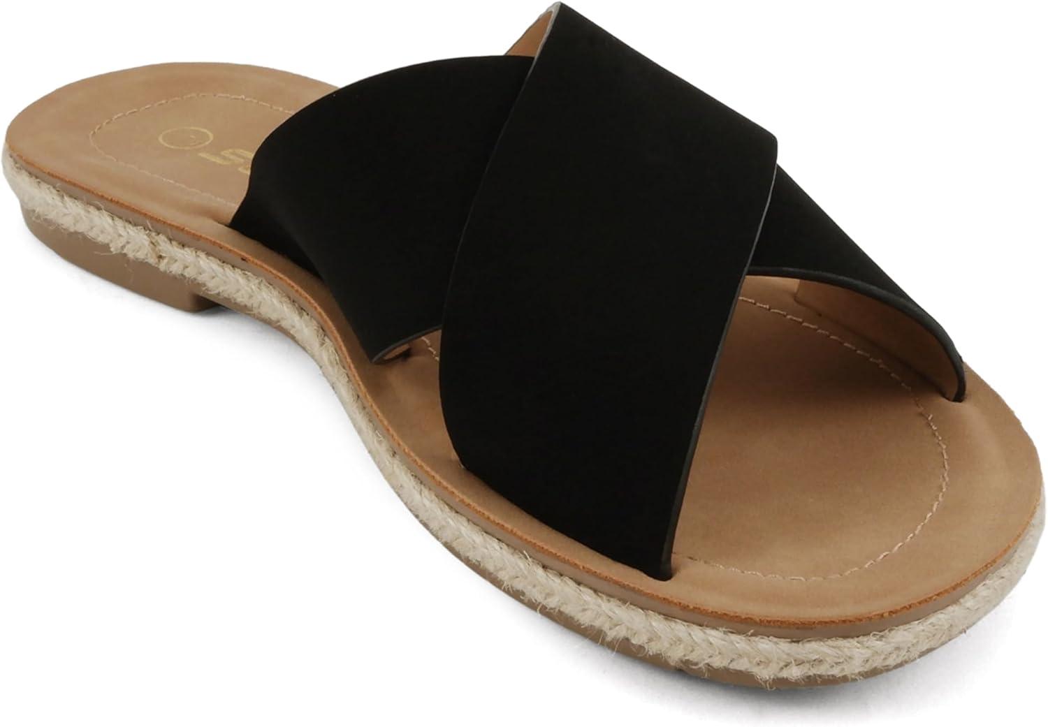 Soda Prism ~ Women Round Toe Crisscross Band Espadrille Slide Sandals(Black Nubuck)
