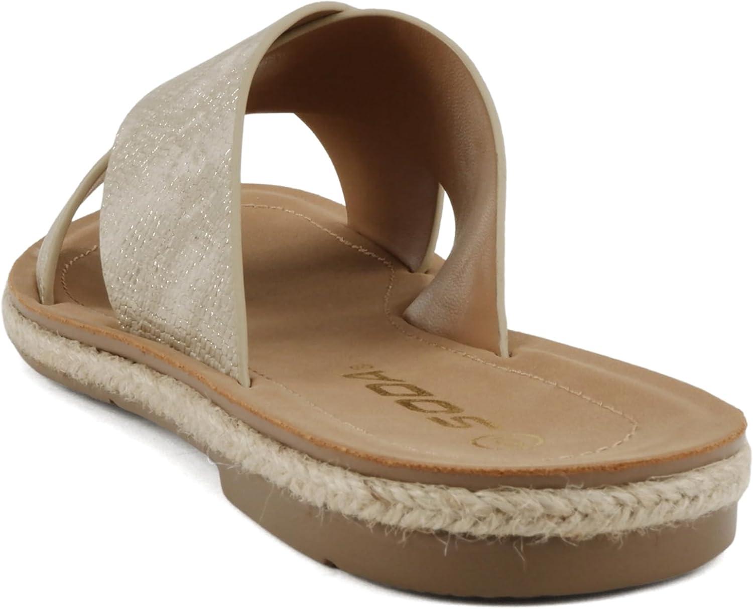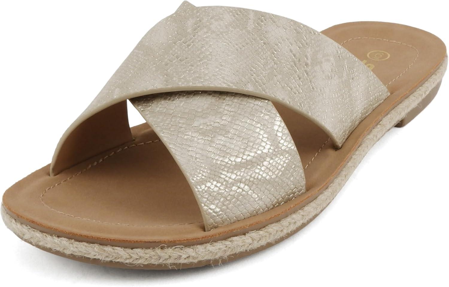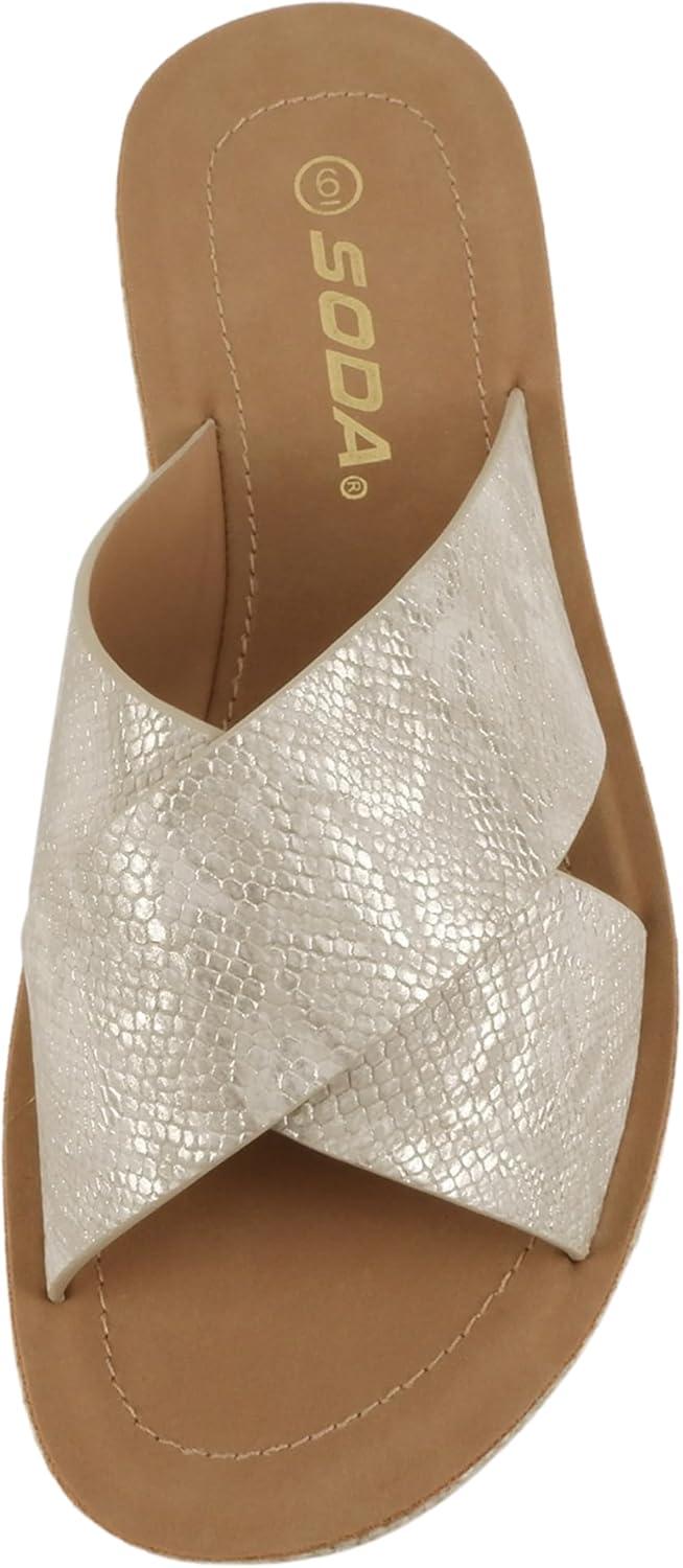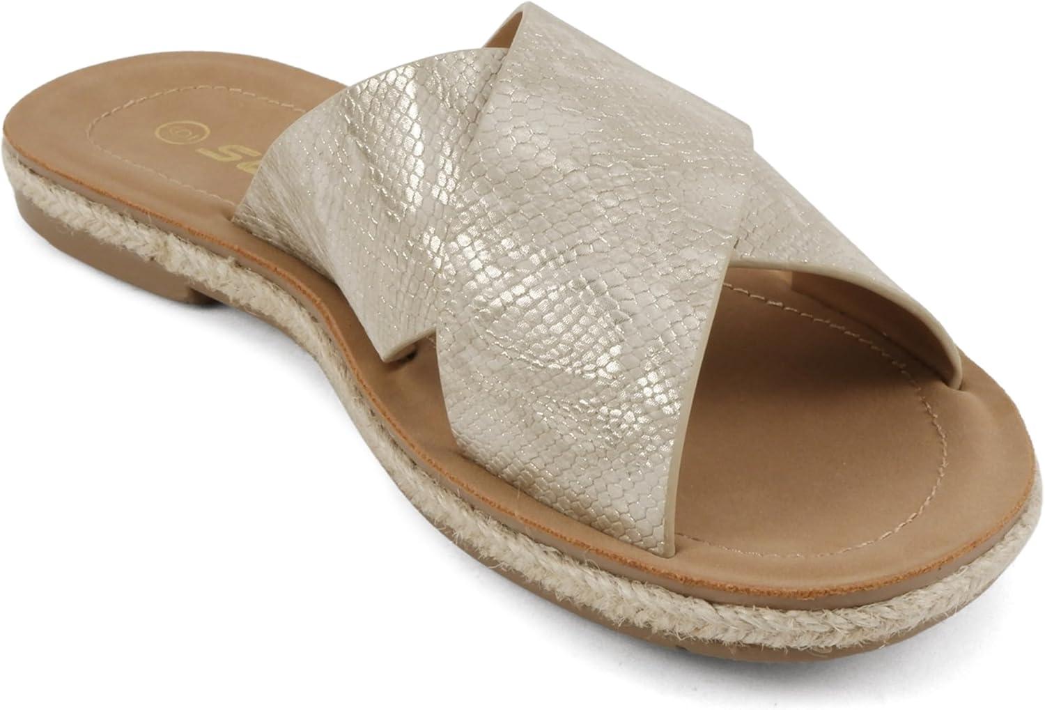 Soda Prism ~ Women Round Toe Crisscross Band Espadrille Slide Sandals(Gold Snake)