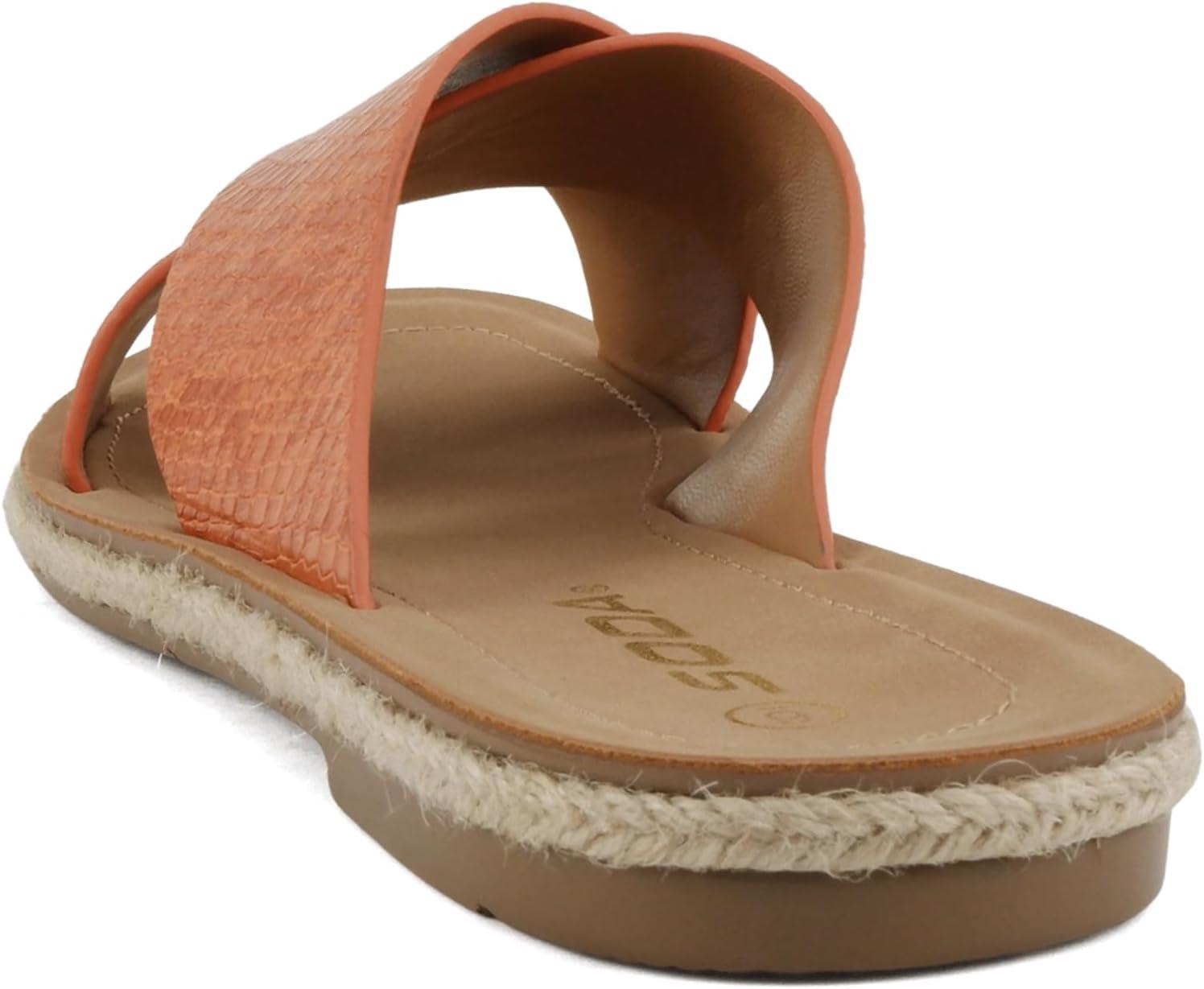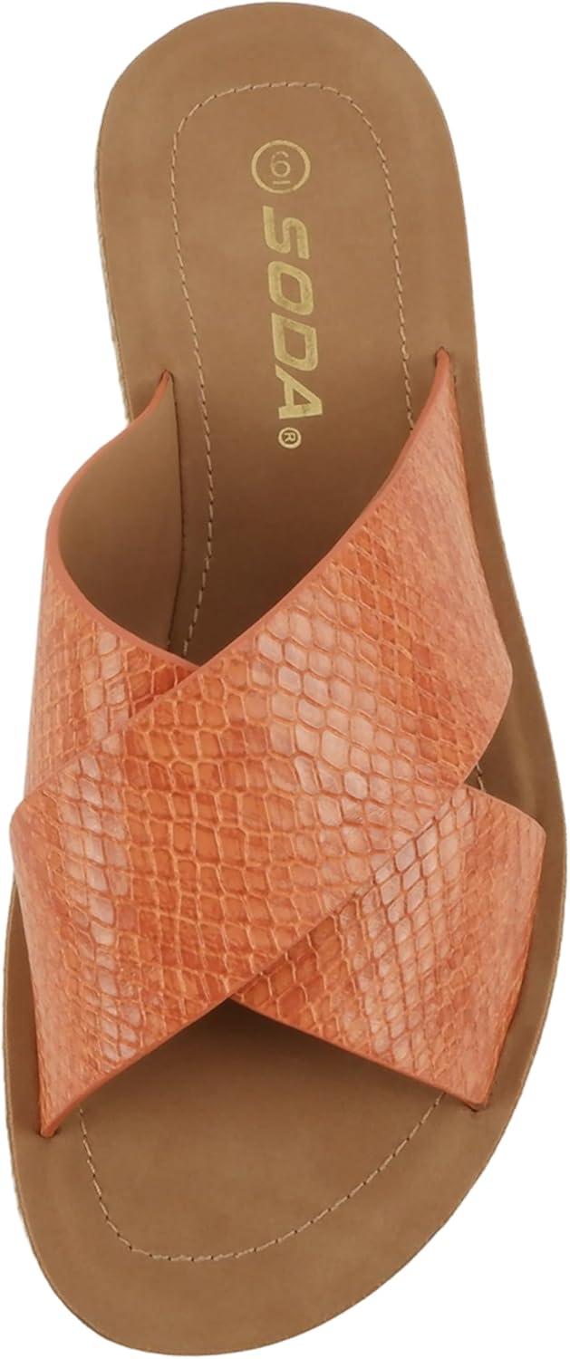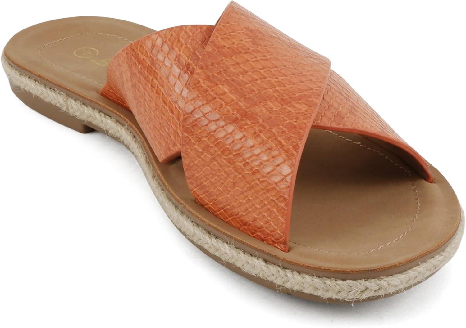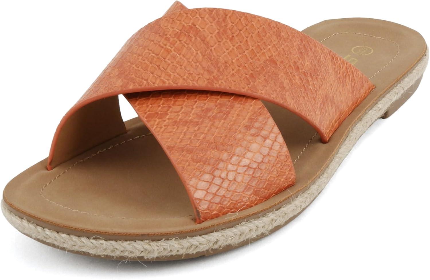 Soda Prism ~ Women Round Toe Crisscross Band Espadrille Slide Sandals(Orange Snake)