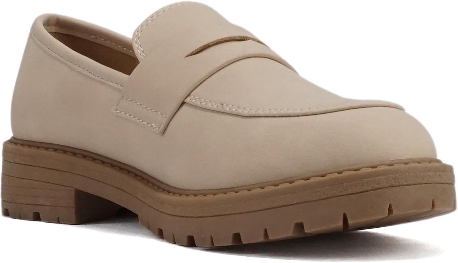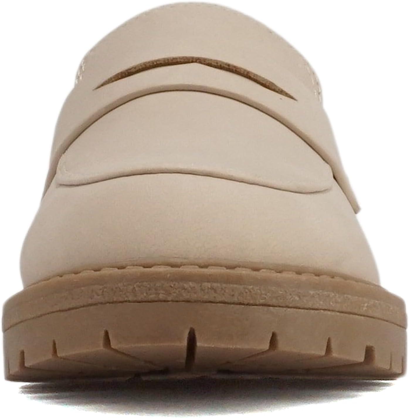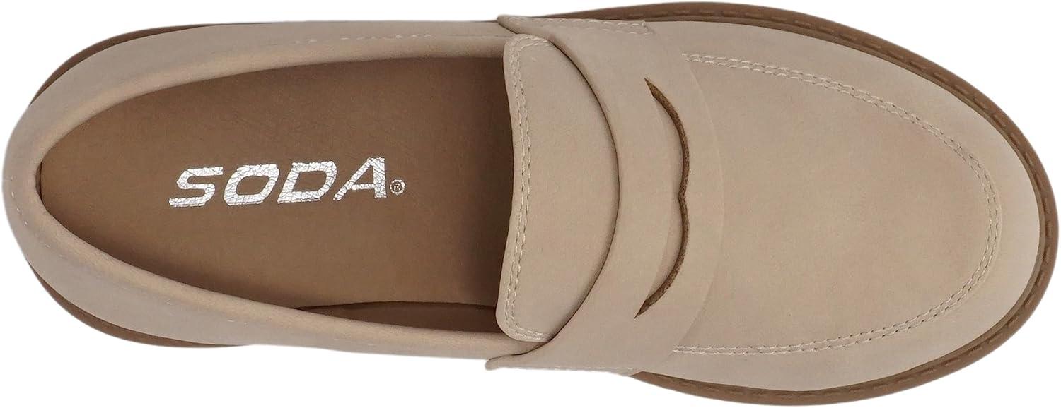 Soda “Raya-2” ~ Little Kids/Children/Girls Round Toe Stitch Detail Lug Sole Low Heel Penny Loafer Shoe(Light Blond Nubuck)