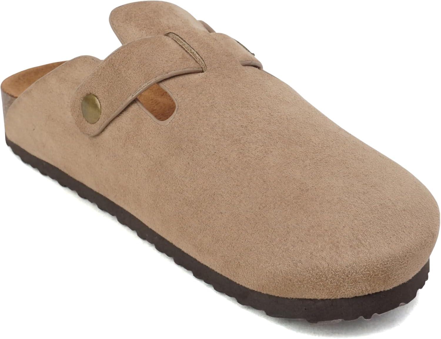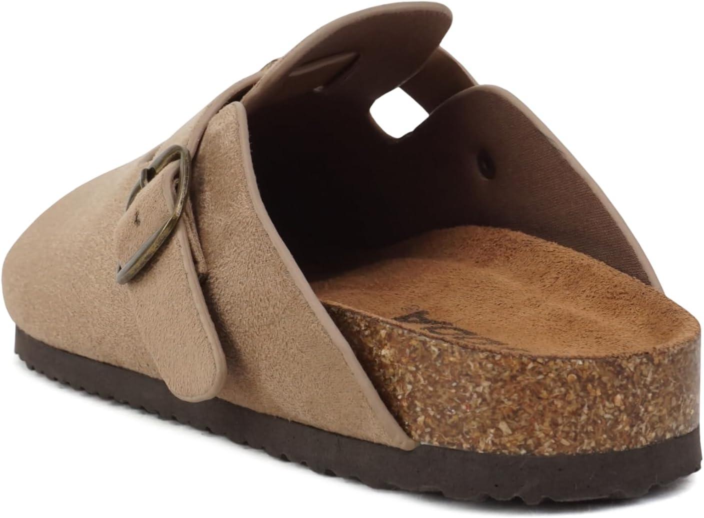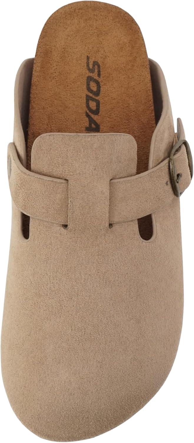 Soda Regis ~ Women Round Toe Buckle Strap Slip-On Flatform Clog(Light Taupe Imitation Suede)