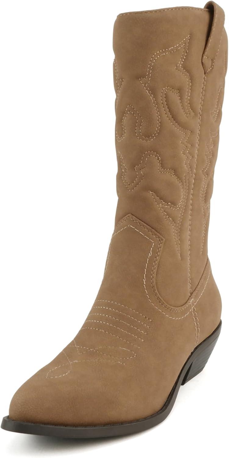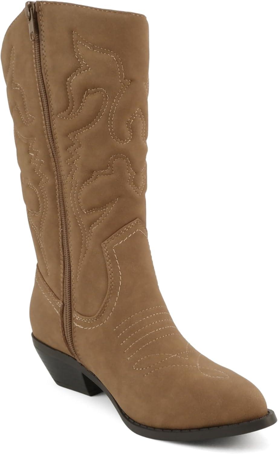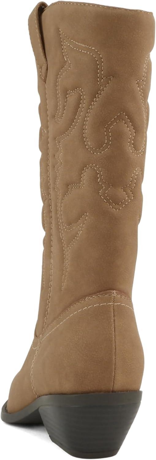 Soda Rider ~ Women Mid-Calf Western Cowboy Boots with Pointed Toe & Side Zipper(Dk Tan Nubuck)