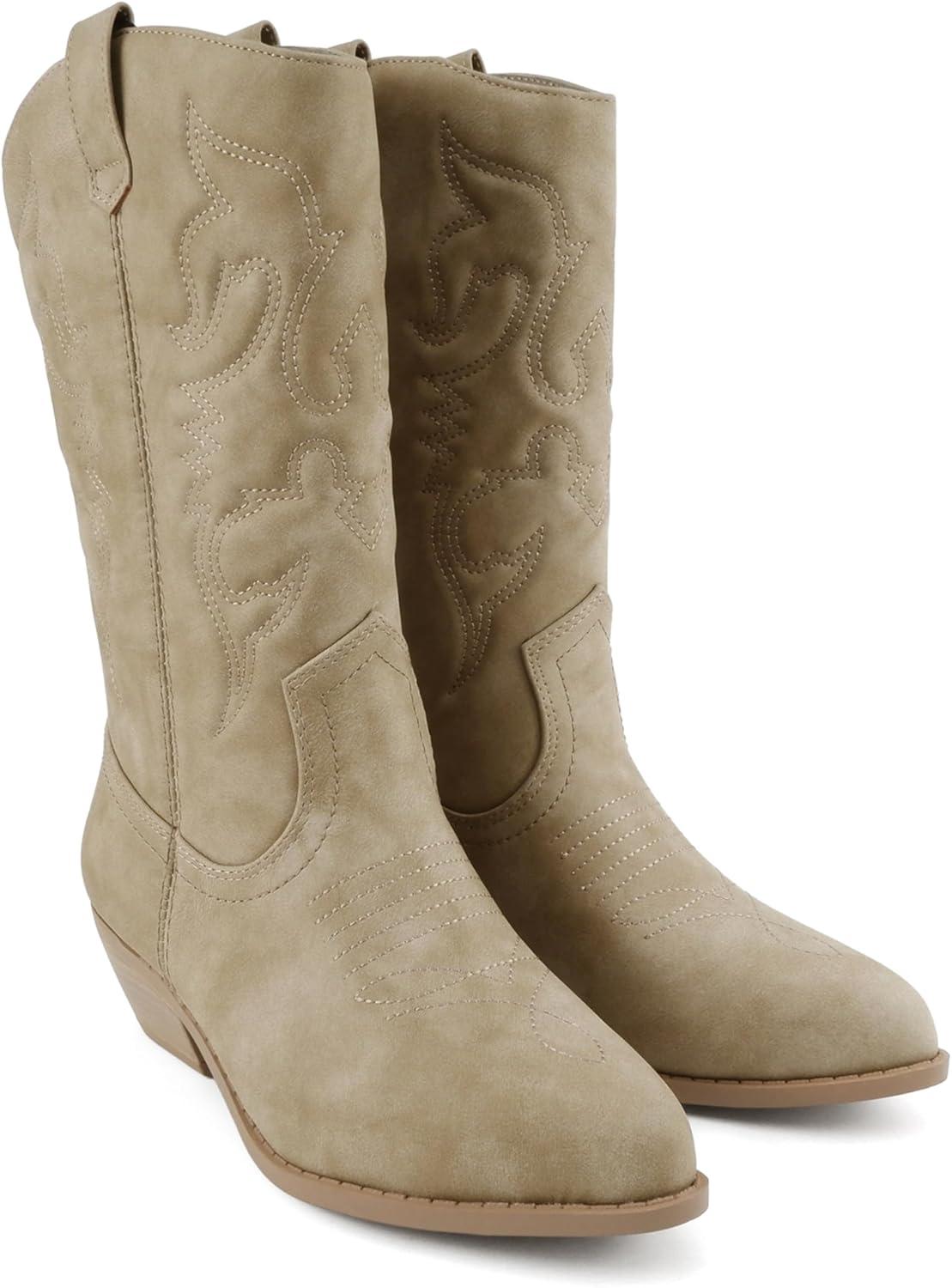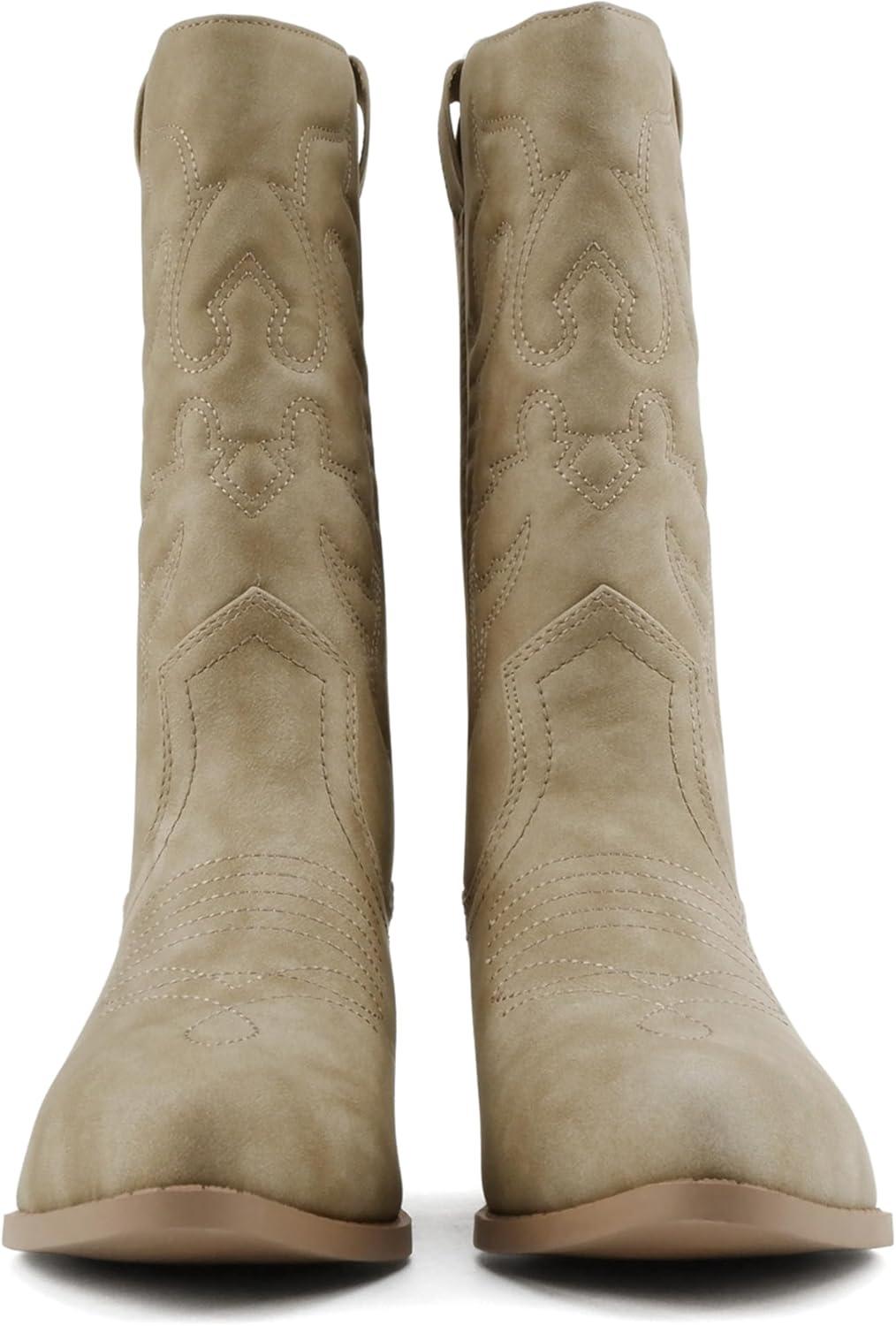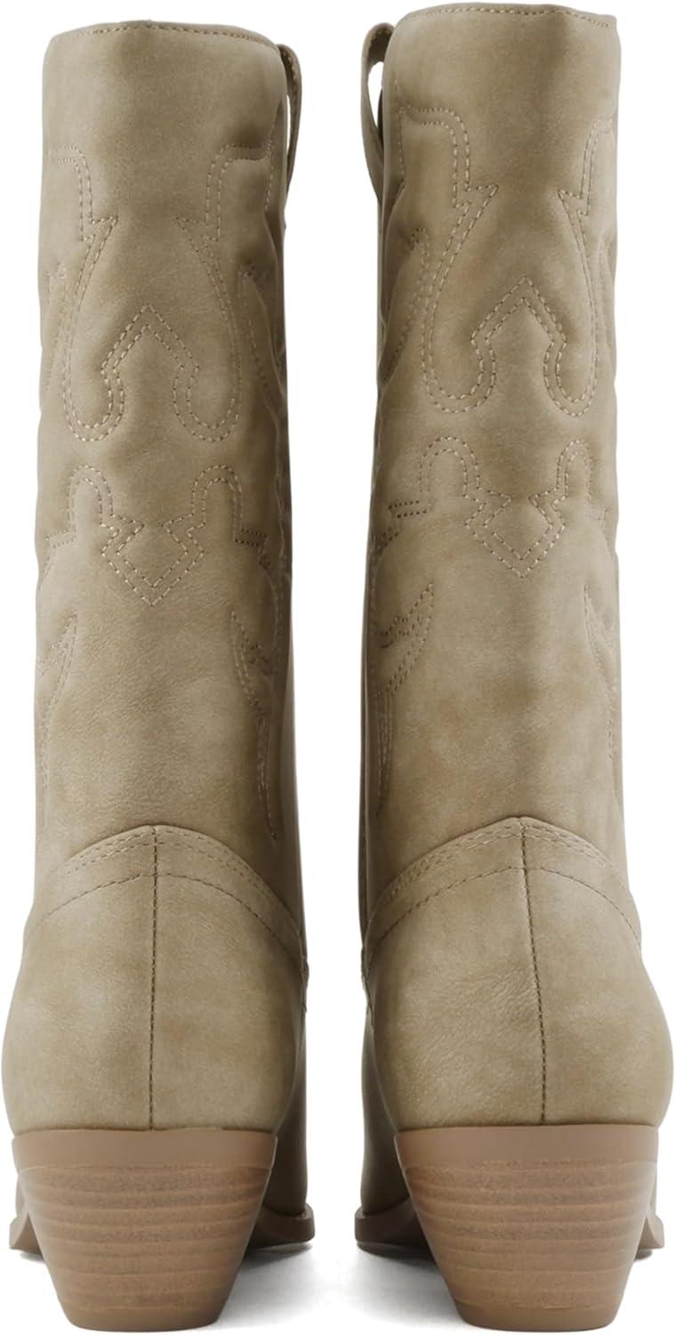 Soda “Rodeo” ~ Women’s Knee High Western Cowboy Boots with Stitched Detailing, Pointed Toe, and Low Block Heel(B-lt Taupe Nb)