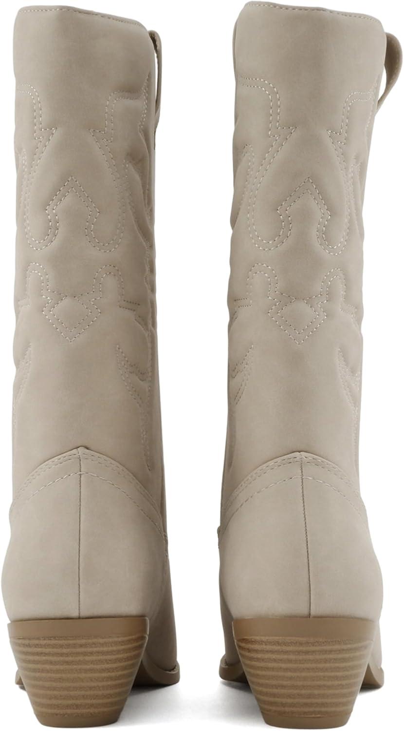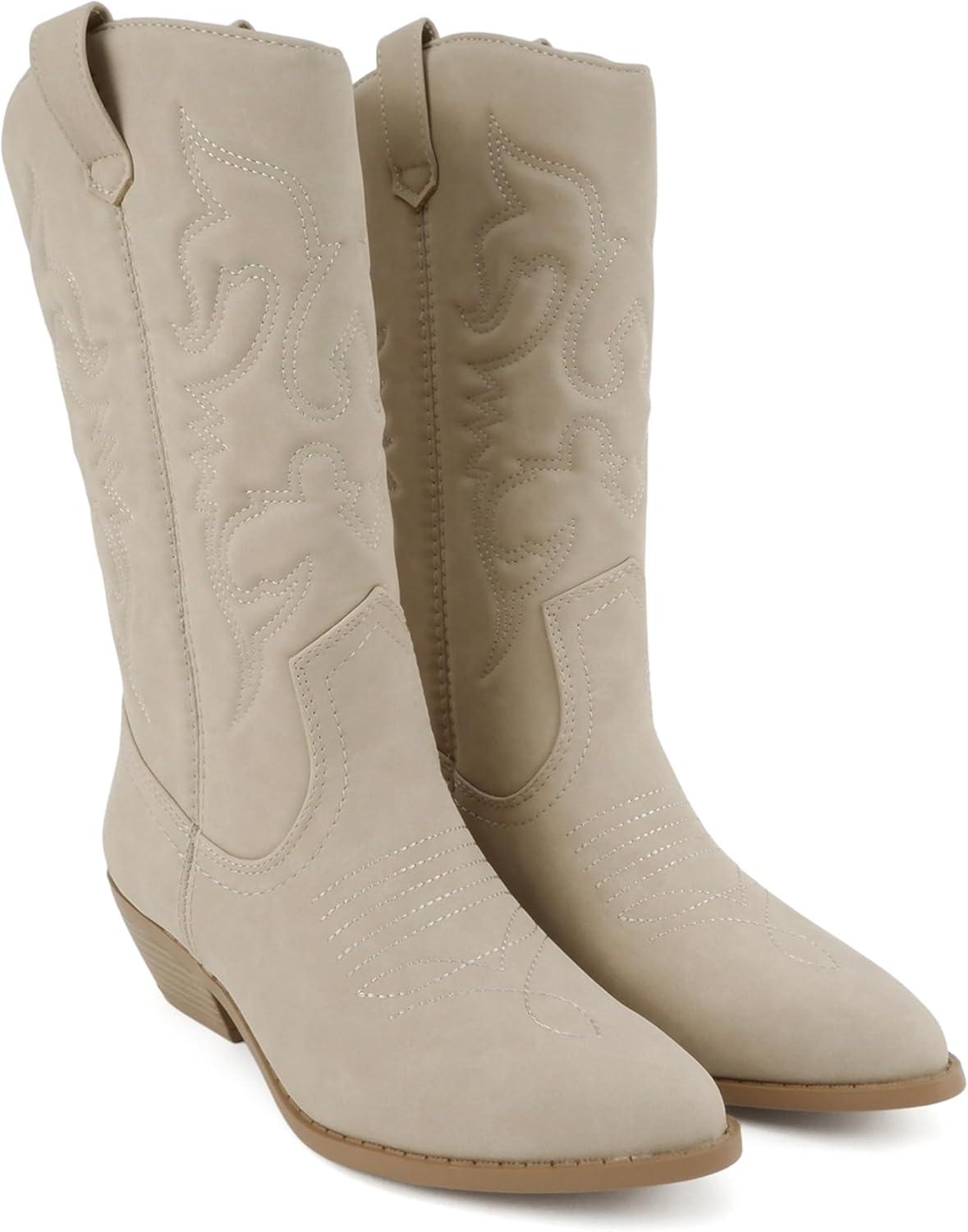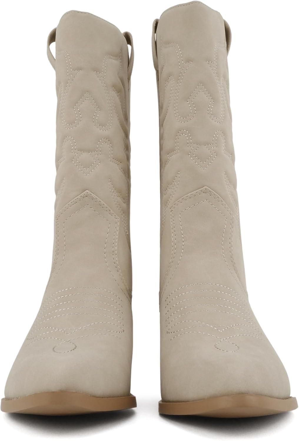 Soda “Rodeo” ~ Women’s Knee High Western Cowboy Boots with Stitched Detailing, Pointed Toe, and Low Block Heel(B-sand Nb)