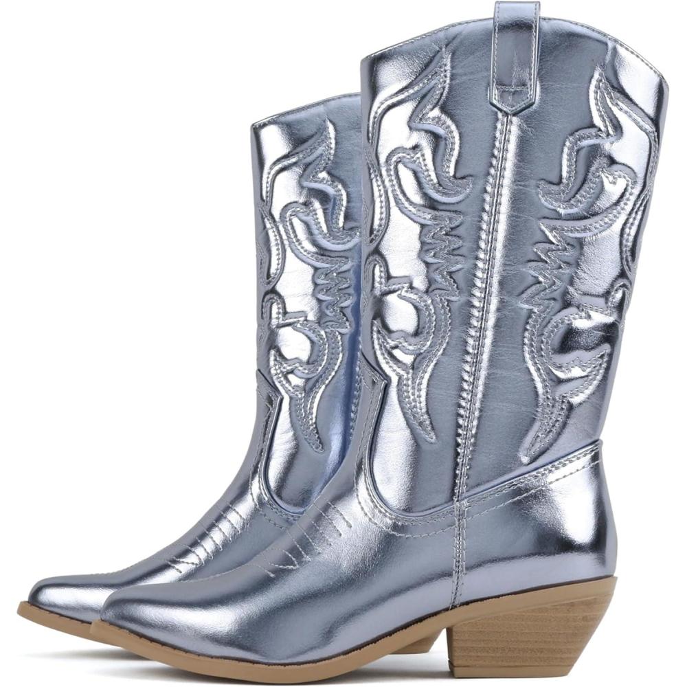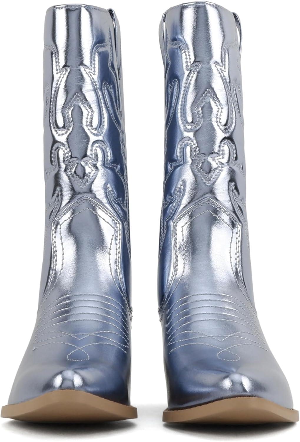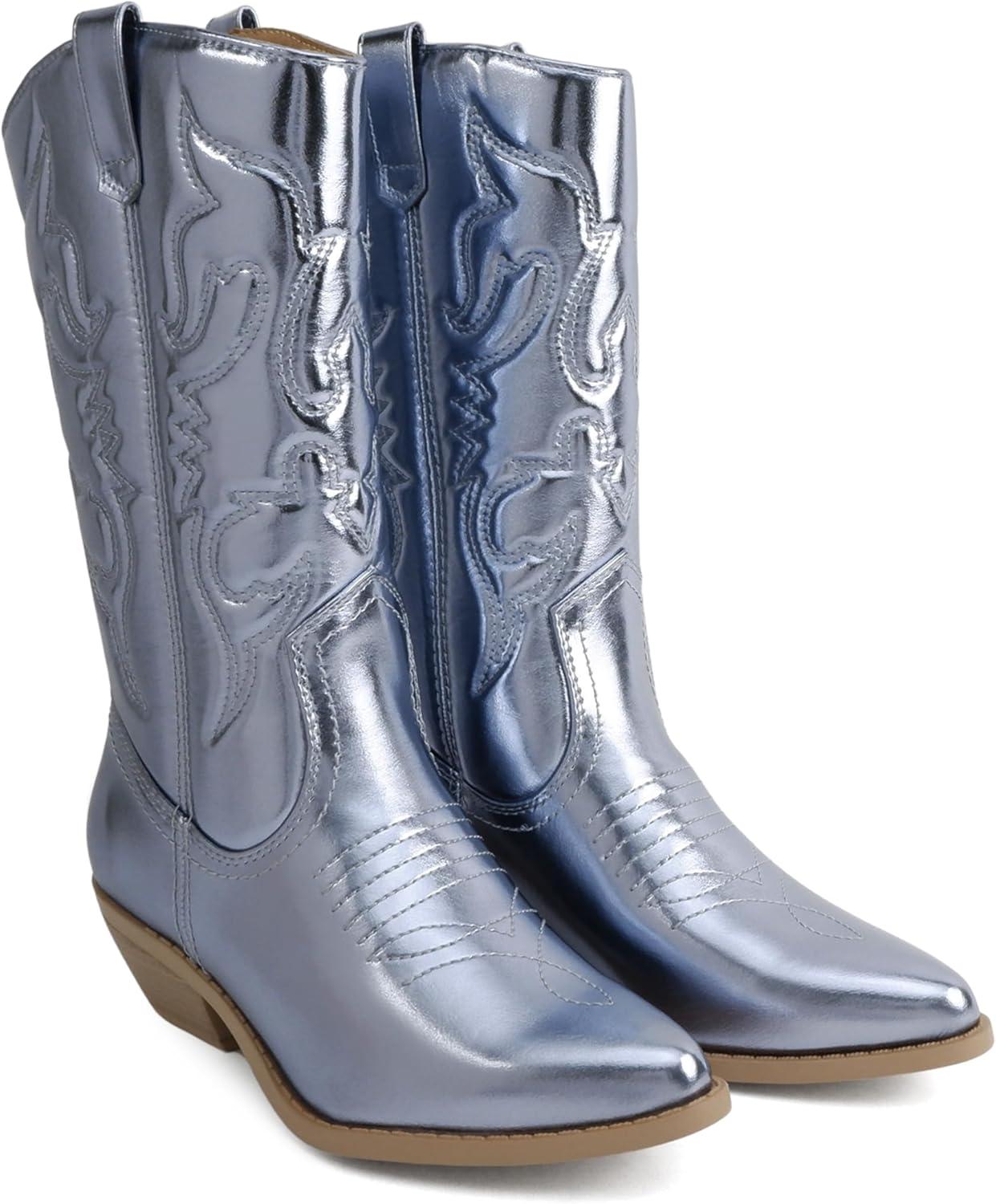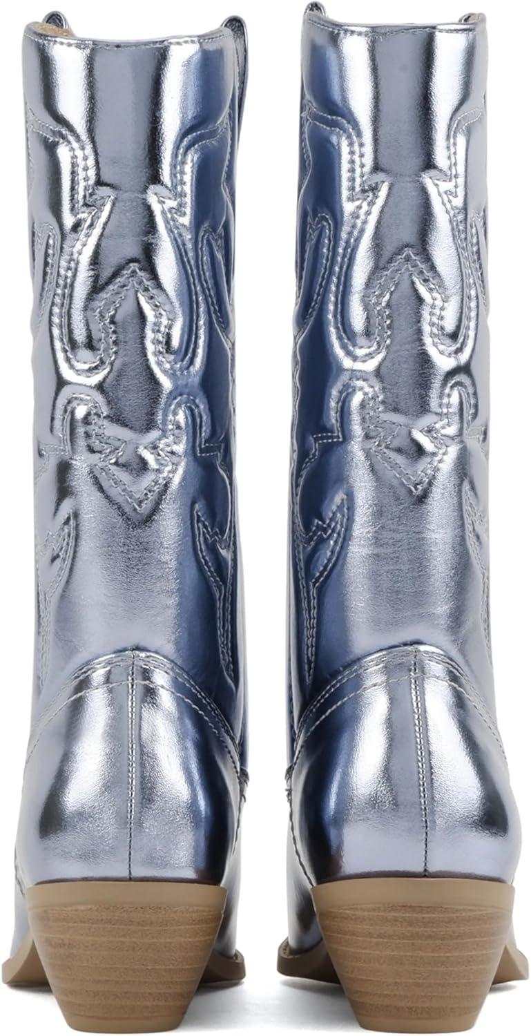 Soda “Rodeo” ~ Women’s Knee High Western Cowboy Boots with Stitched Detailing, Pointed Toe, and Low Block Heel(C-sky Blue Met)