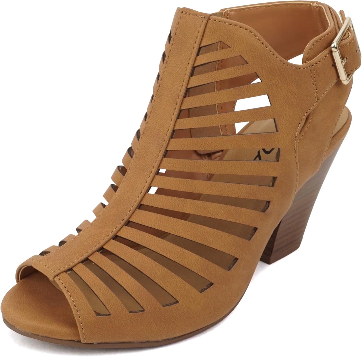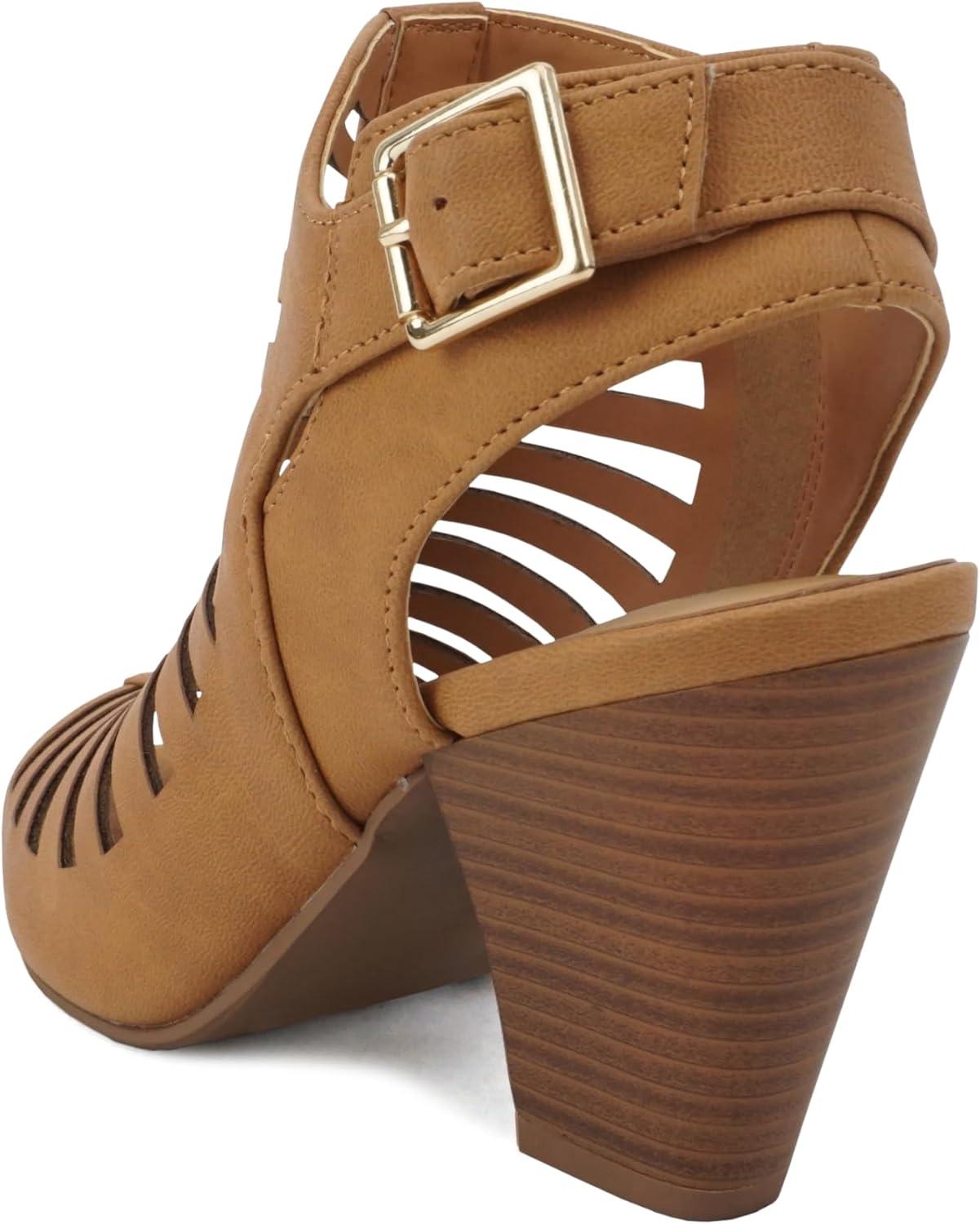 Soda Shaky ~ Women Open Toe High Cone Heel Gladiator Sandal with Adjustable Ankle Strap(Tan Nubuck)